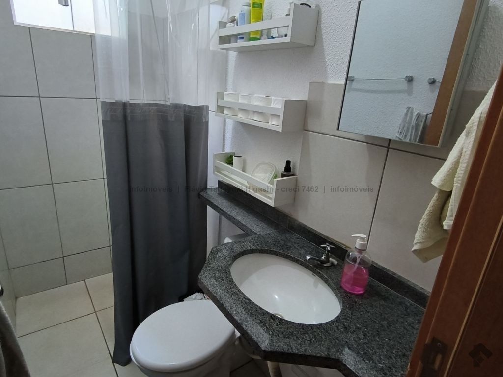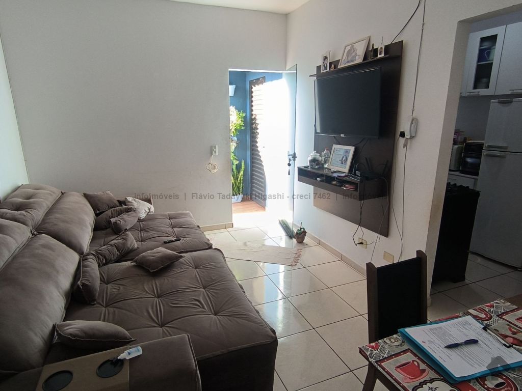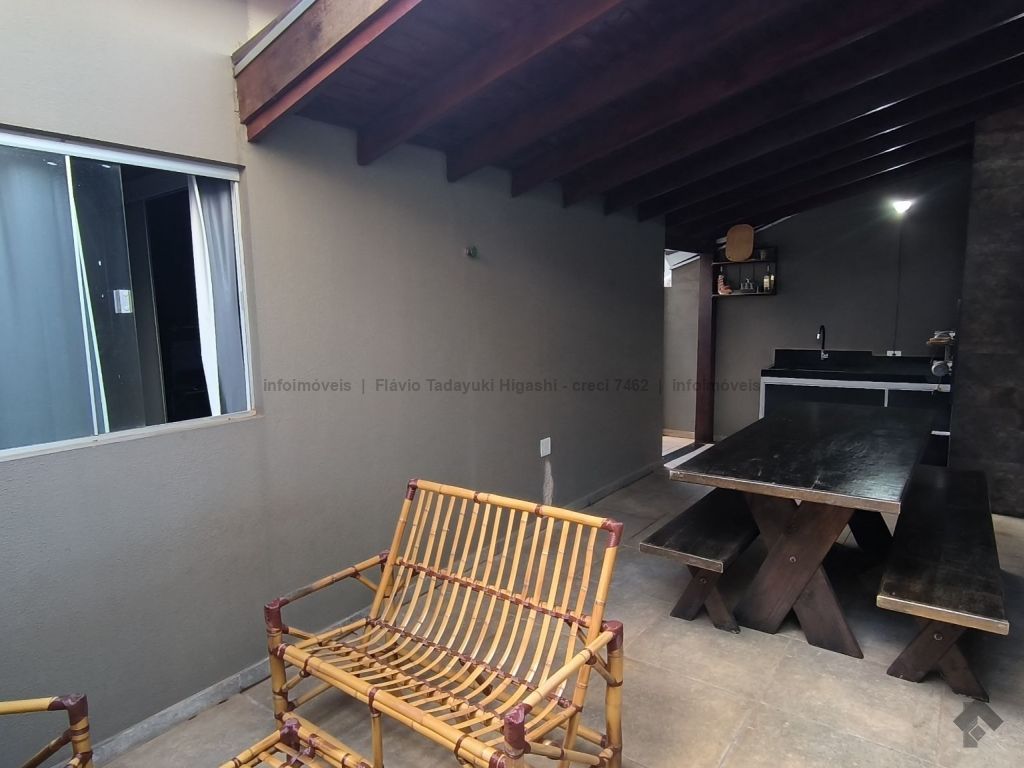 Oportunidade de casa em condomínio contendo uma suíte, 2 quartos, sala de dois ambientes, cozinha com planejados, banheiro social, corredor lateral, área gourmet e garagem descoberta para 3 carros.