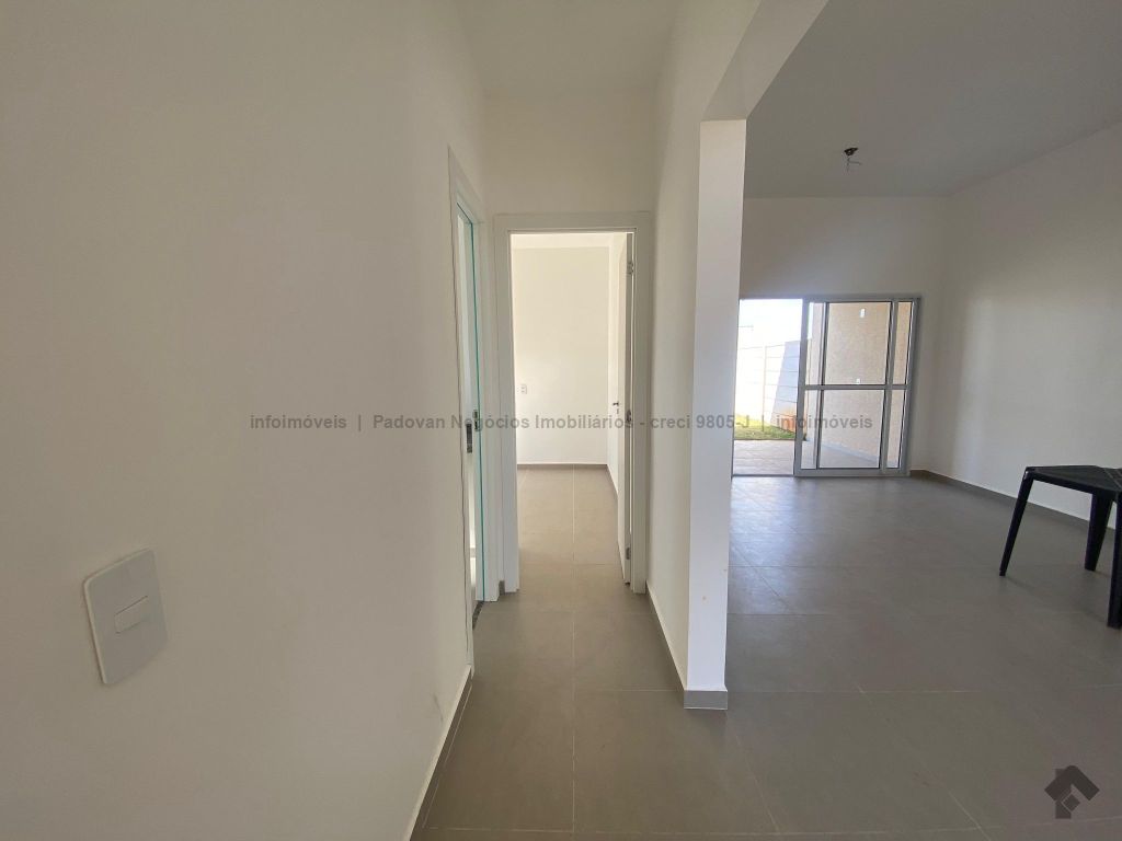 Casa térrea com 3 dormitórios, sendo 1 suíte, lavabo, sala ampla, cozinha, lavanderia, varanda e espaço livre. Condomínio completo com área verde, academia fechada e ao ar livre, salão de festas, quadra, quiosque, piscinas adulto e infantil, portaria.