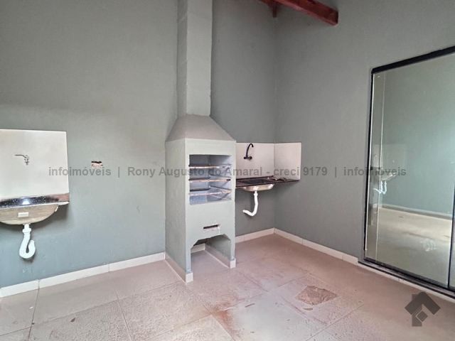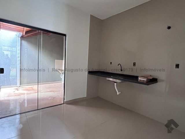 2 quartos, 1 sendo suíte, banheiro social, sala ampla, cozinha individual, área gourmet, área de serviço, garagem para até 2 carros. 58 m² construído, 108 m² área total.