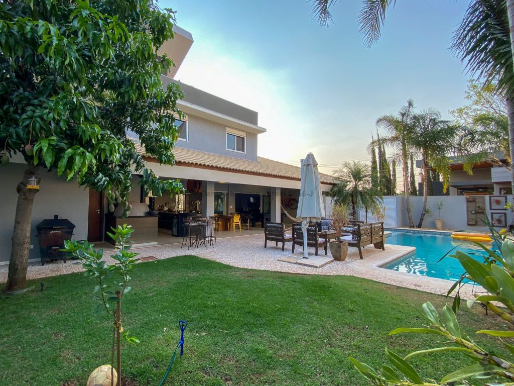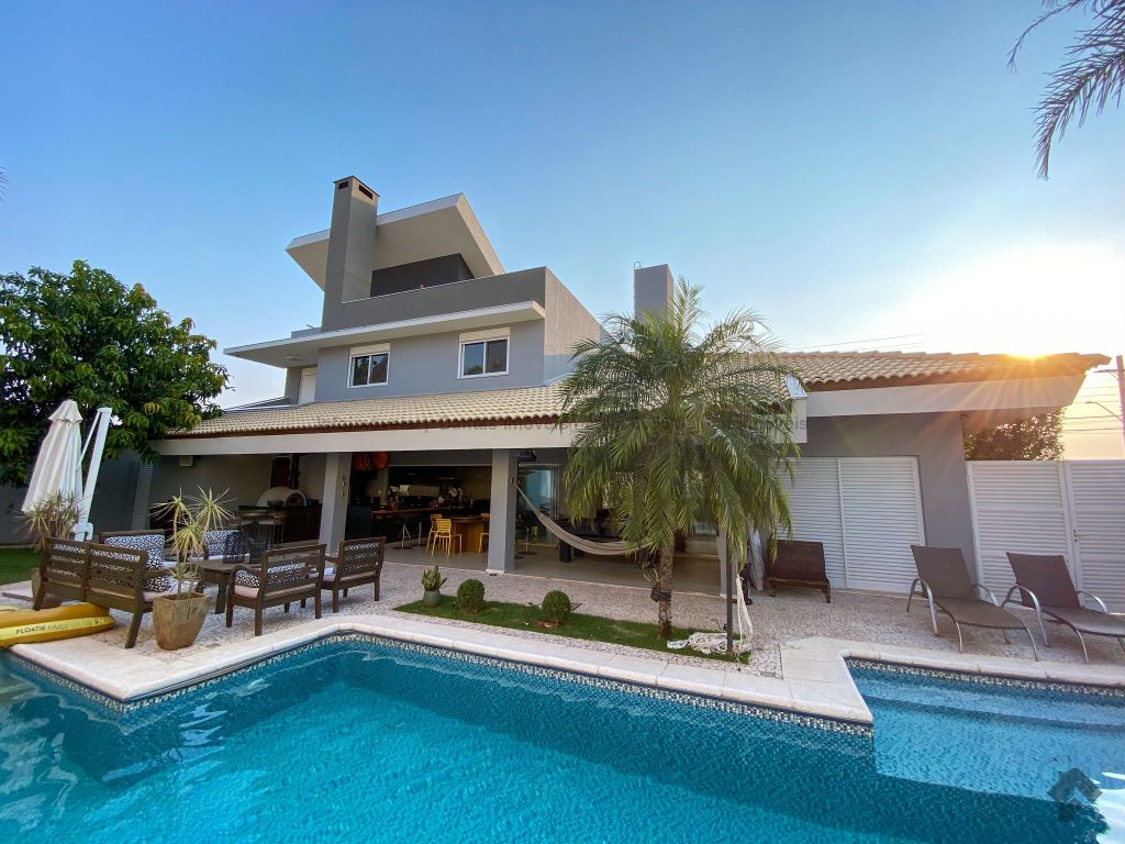 Lindíssima casa na melhor localização do condomínio, frente para o lago, perto da portaria. Dispõe de uma suíte máster com closet, super espaçoso, e mais dois apartamentos montados com armários e uma sala íntima com vista para o lago. Uma sala de TV, escritório, sala de estar e jantar, integração entre os ambientes, cozinha e espaço gourmet montado em armários. Área de lazer com piscina, lavabo, varanda do espaço gourmet super grande, possui canil e área de serviço.
