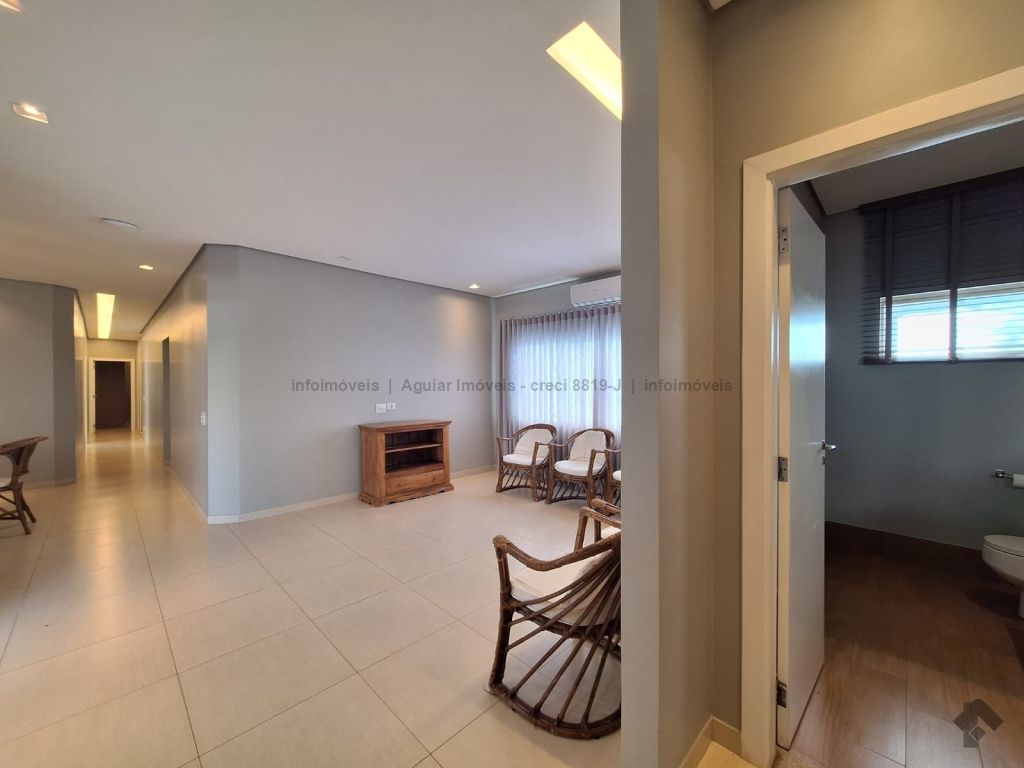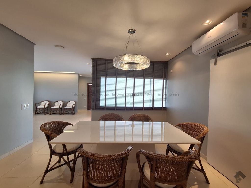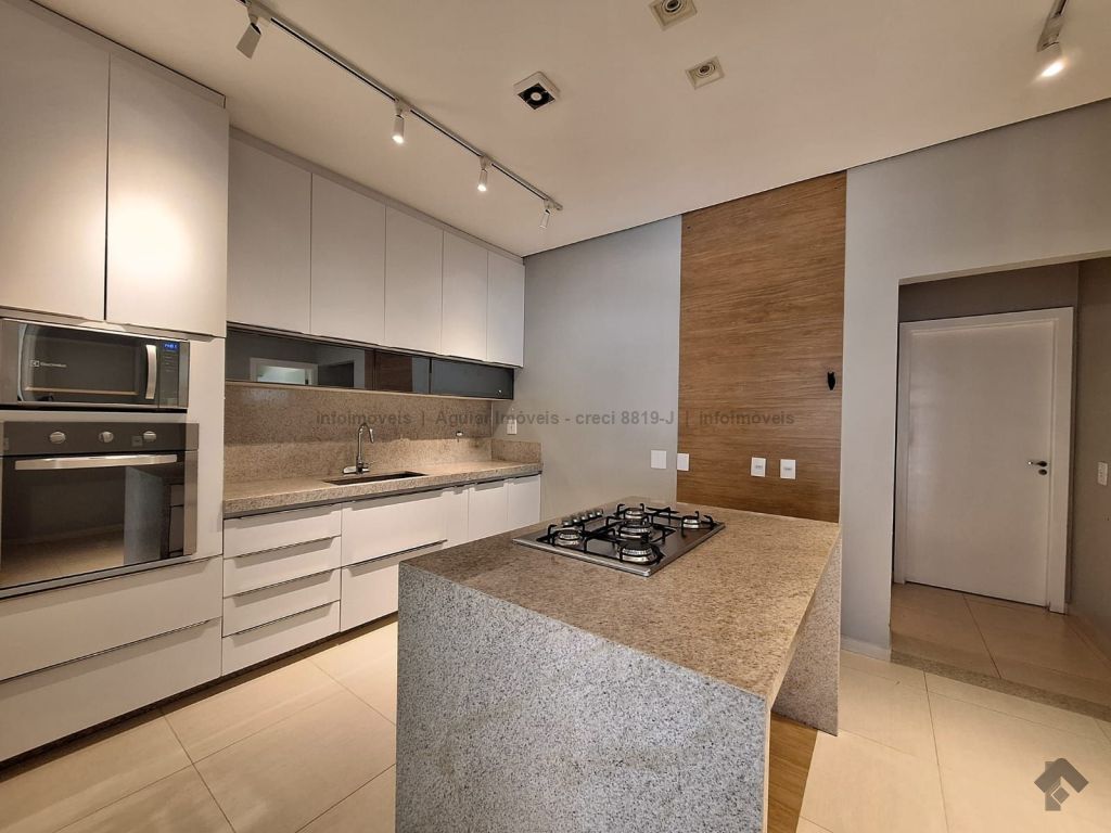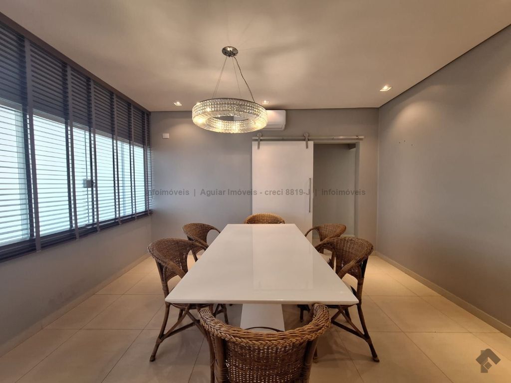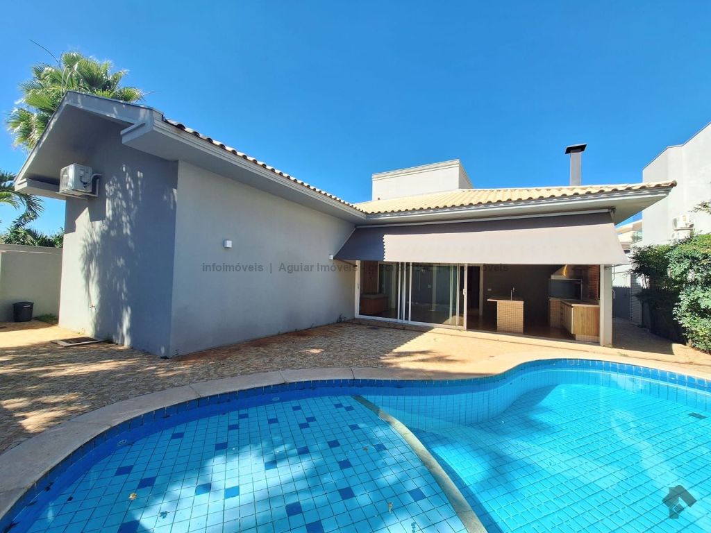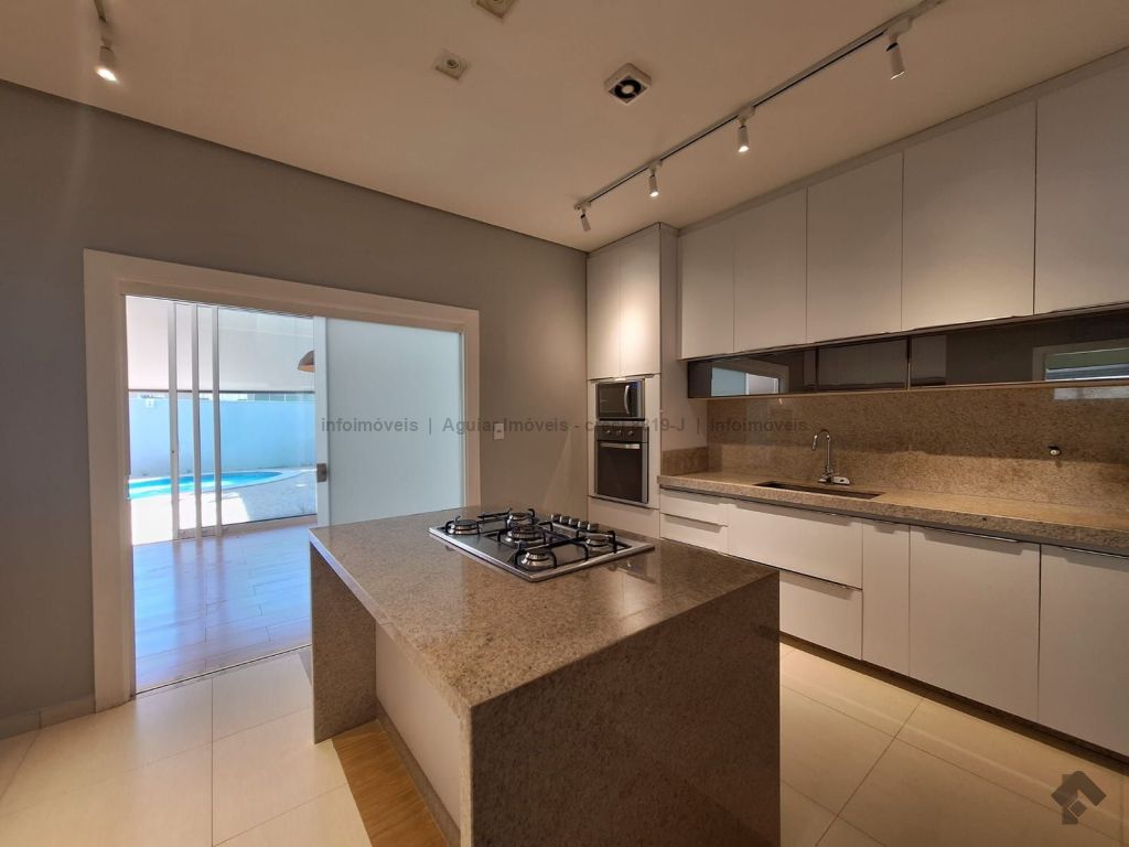 Sala de estar, lavabo, sala de jantar, cozinha com ilha, despensa, lavanderia com banheiro, três suítes com móveis planejados, espaço gourmet com bancada e churrasqueira, piscina grande e banheiro externo, quatro vagas de garagem, sendo duas cobertas e duas descobertas.