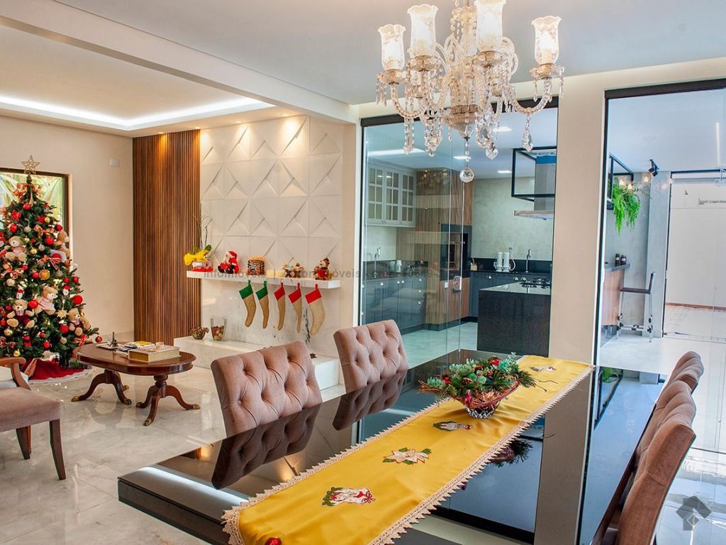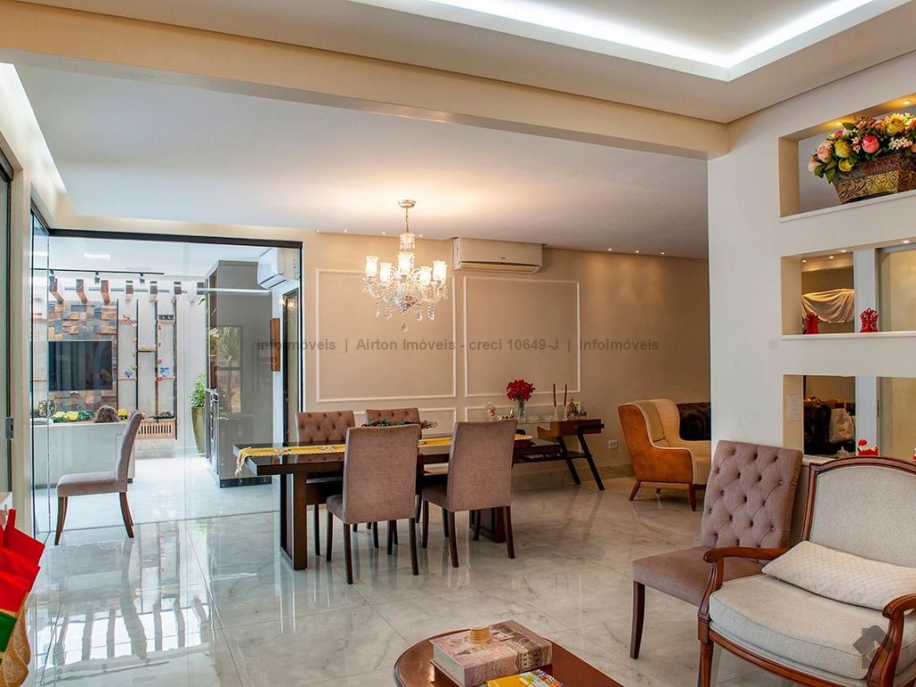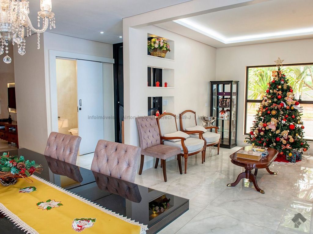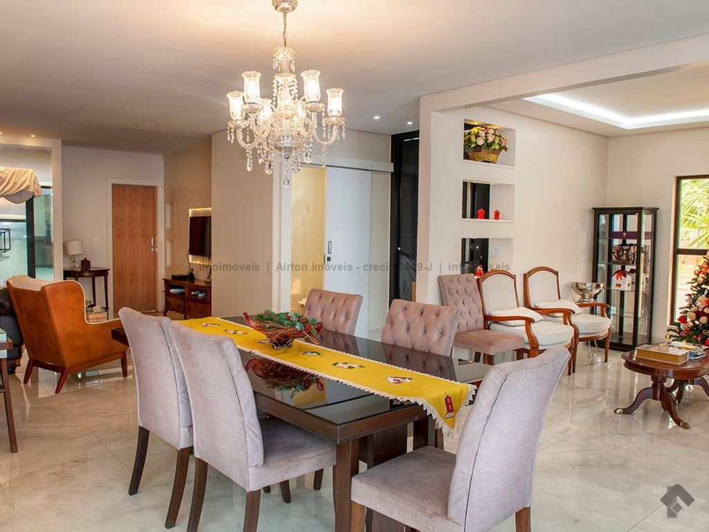 Sala 2 ambientes, cozinha planejada, 3 suítes com armários com closet, 1 wc social, aquecedor solar, lavabo, espaço gourmet com churrasqueira, área de serviço, piscina aquecida, jardim, lareira, varanda e 4 vagas de garagem. Condomínio completo com área de lazer com segurança 24 horas, piscina, lago, quadra de areia, salão de festas, campo de futebol, portaria, quiosque, wc de serviço e academia.