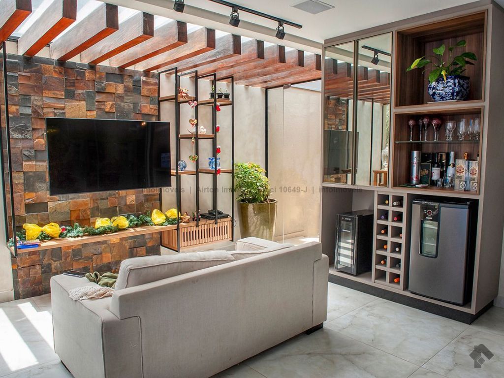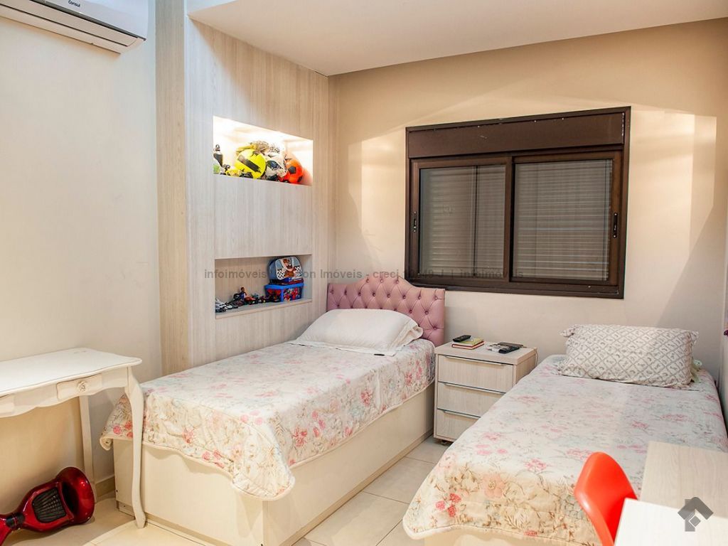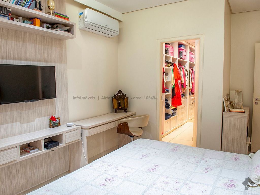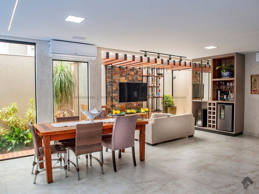 Sala 2 ambientes, cozinha planejada, 3 suítes com armários com closet, 1 wc social, aquecedor solar, lavabo, espaço gourmet com churrasqueira, área de serviço, piscina aquecida, jardim, lareira, varanda e 4 vagas de garagem. Condomínio completo com área de lazer com segurança 24 horas, piscina, lago, quadra de areia, salão de festas, campo de futebol, portaria, quiosque, wc de serviço e academia.