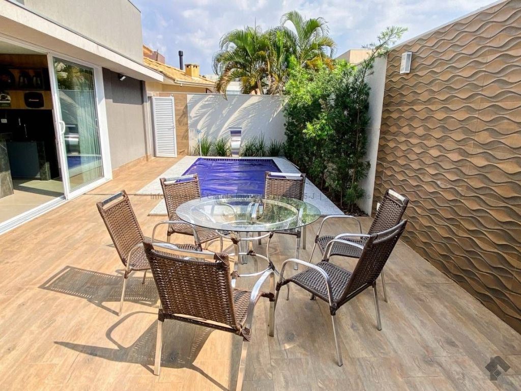 Casa térrea no Damha II com garagem para 2 veículos, sala de visita/TV, sala de jantar, lavabo, cozinha, área de serviço, depósito, varanda para 2 ambientes fechada com portas, churrasqueira com balcão, banheiro de lazer, piscina com prainha, cascata e aquecimento, 2 apartamentos, roupeiro, 1 suíte com closet e box externo. Projeto moderno, sofisticado, prático e com fino acabamento. Área de lazer com churrasqueira, jardim e piscina. Salas e varandas com pé-direito alto, com 4,50 m de altura. Rica em detalhes, armários planejados em toda a casa.