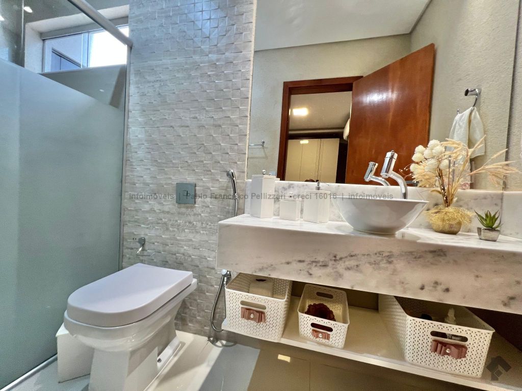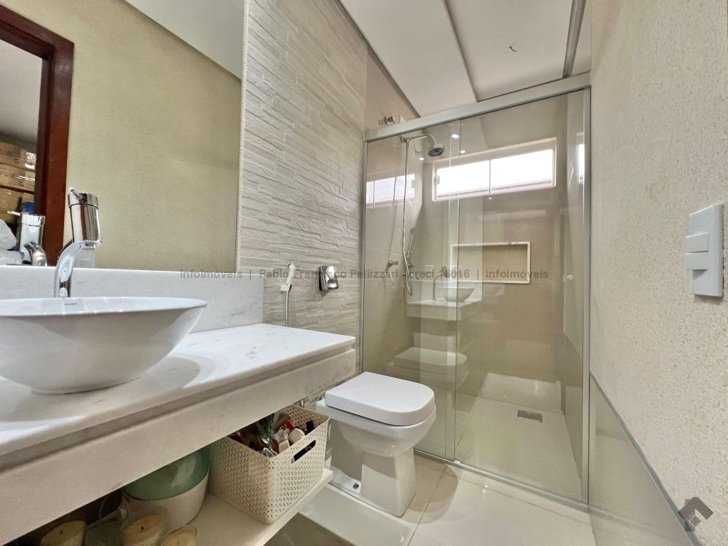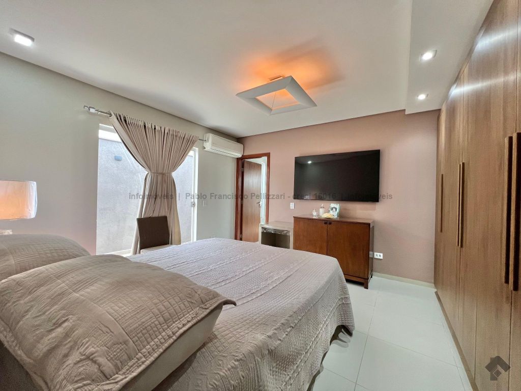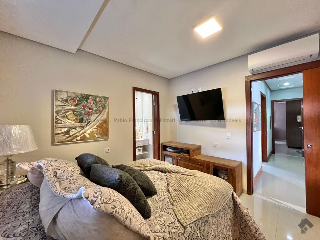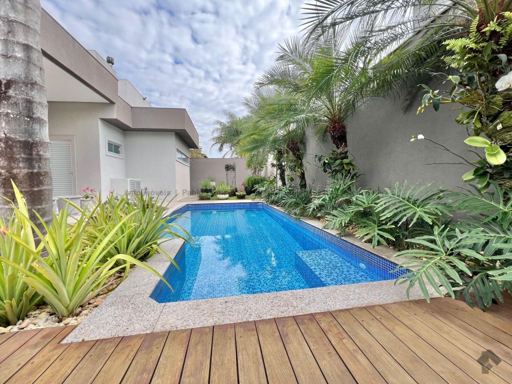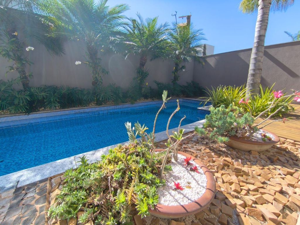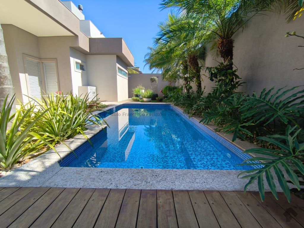 Excelente casa térrea rica em paisagismo e jardinagem. O imóvel conta com lavabo, escritório, sala 3 ambientes com pé direito duplo, 3 suítes sendo 1 master com closet e hidromassagem com armários, banheiro social, cozinha planejada integrada à área gourmet com churrasqueira e piscina. Casa bastante arejada e com amplo espaço de terreno, muito aconchegante. Aquecimento solar e energia fotovoltaica. O imóvel será entregue com móveis planejados novos na cozinha, em uma das suítes e na área de serviço.