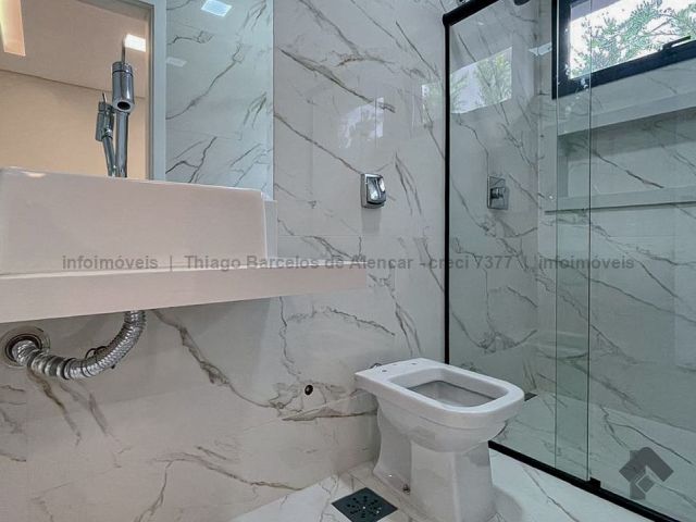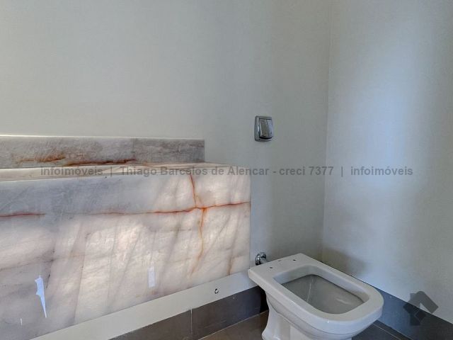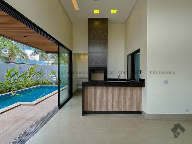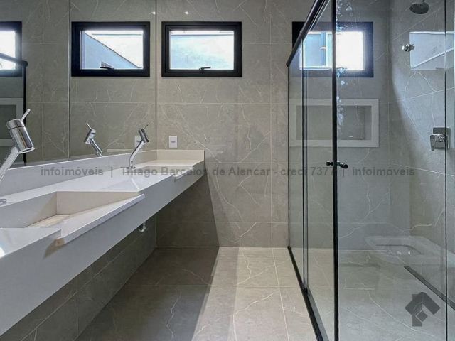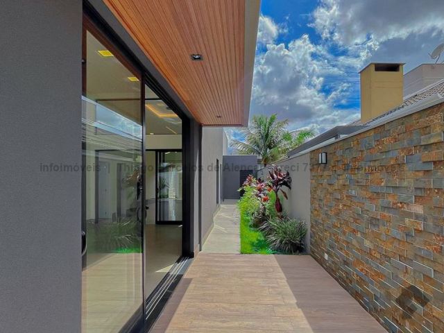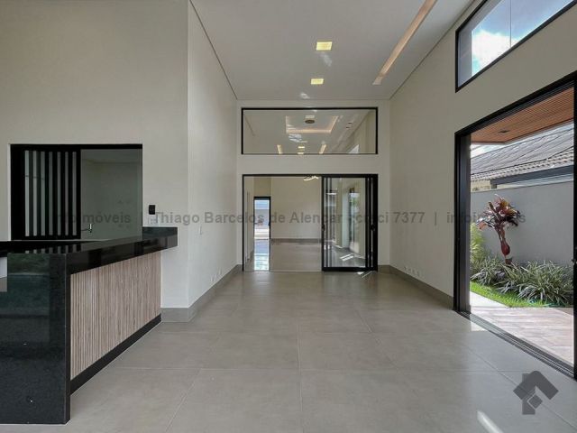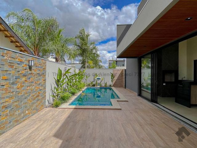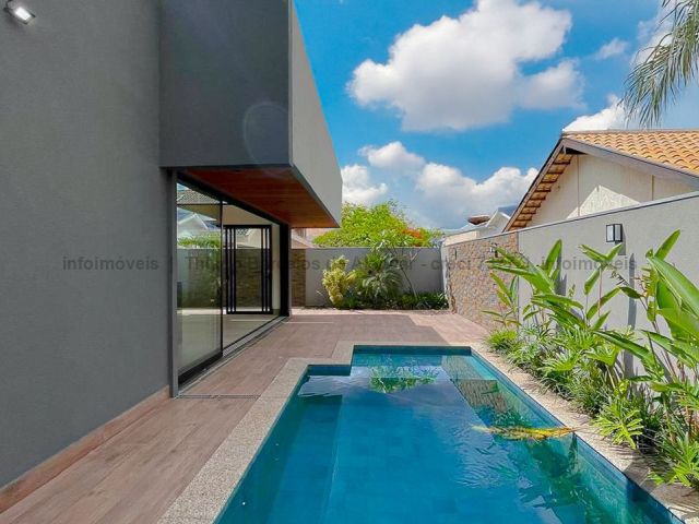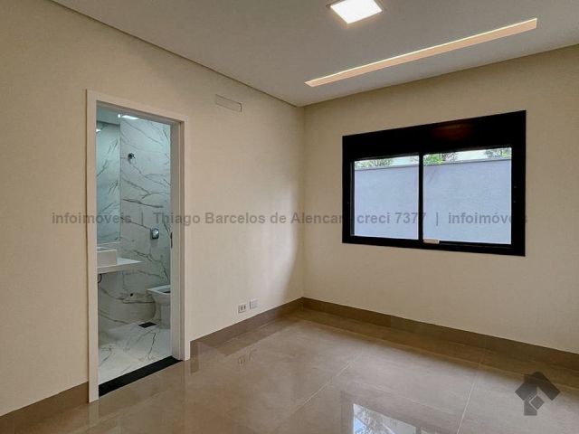 Projeto contemporâneo que une design minimalista e materiais de alta qualidade, criando ambientes elegantes e aconchegantes. Pé-direito de 4,50 m nas salas e no espaço gourmet, com grandes aberturas para luz natural e ventilação. Esquadrias pretas, porcelanato e detalhes em granito trazem modernidade. Paisagismo integrado à área de lazer com deck, piscina com cascata e espaço para relaxar. Gesso trabalhado com rasgos, sancas e molduras, além de persianas automatizadas, garantem requinte e praticidade. Ideal para quem busca estilo e funcionalidade.