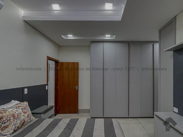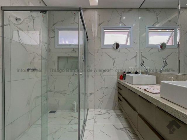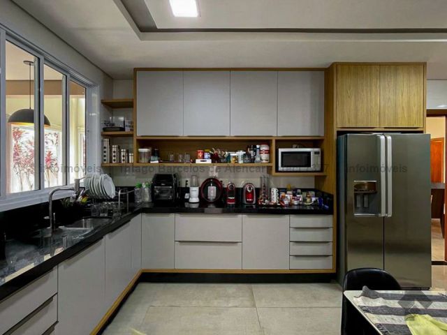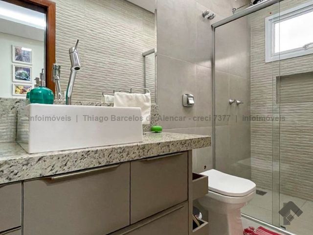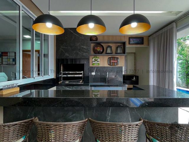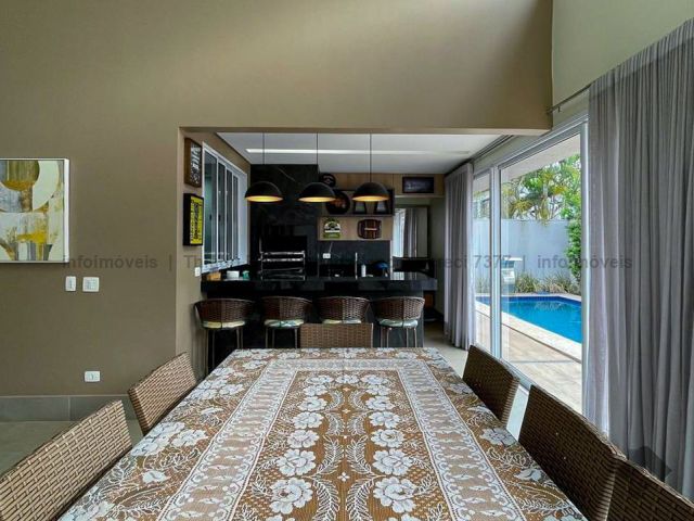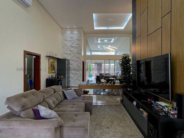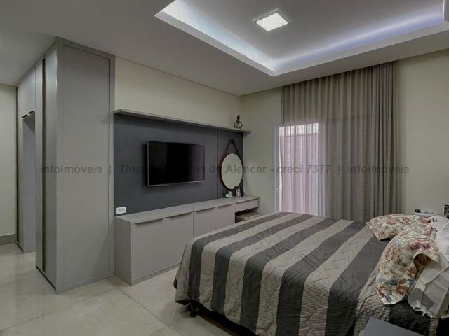 Casa térrea moderna, prática e com acabamento impecável. Pé-direito de 4,50 m nas salas e varandas, proporcionando amplitude e conforto. Área de lazer completa com piscina aquecida, prainha, cascata, jardim e área gourmet com churrasqueira e balcão. Armários planejados em todos os ambientes, suíte com closet e box externo, além de dois apartamentos que garantem privacidade. Revestimentos em porcelanato, esquadrias em alumínio branco e detalhes em granito e gesso elevam o padrão de sofisticação. Um lar perfeito para unir estilo, bem-estar e funcionalidade.