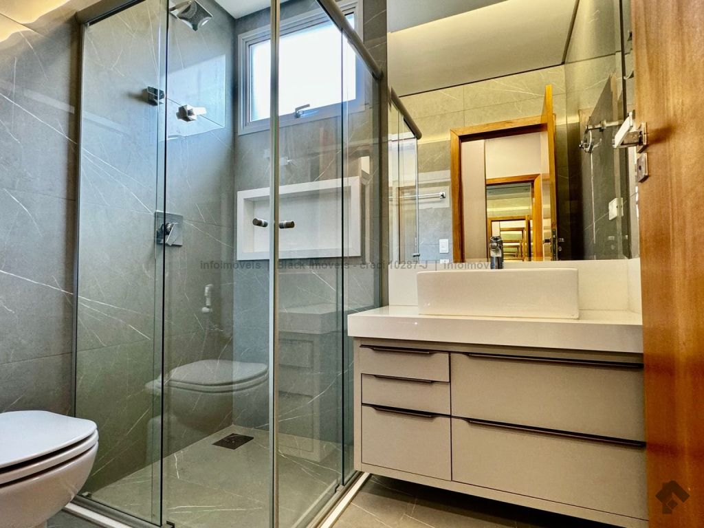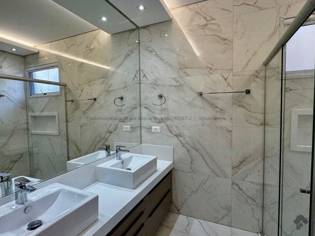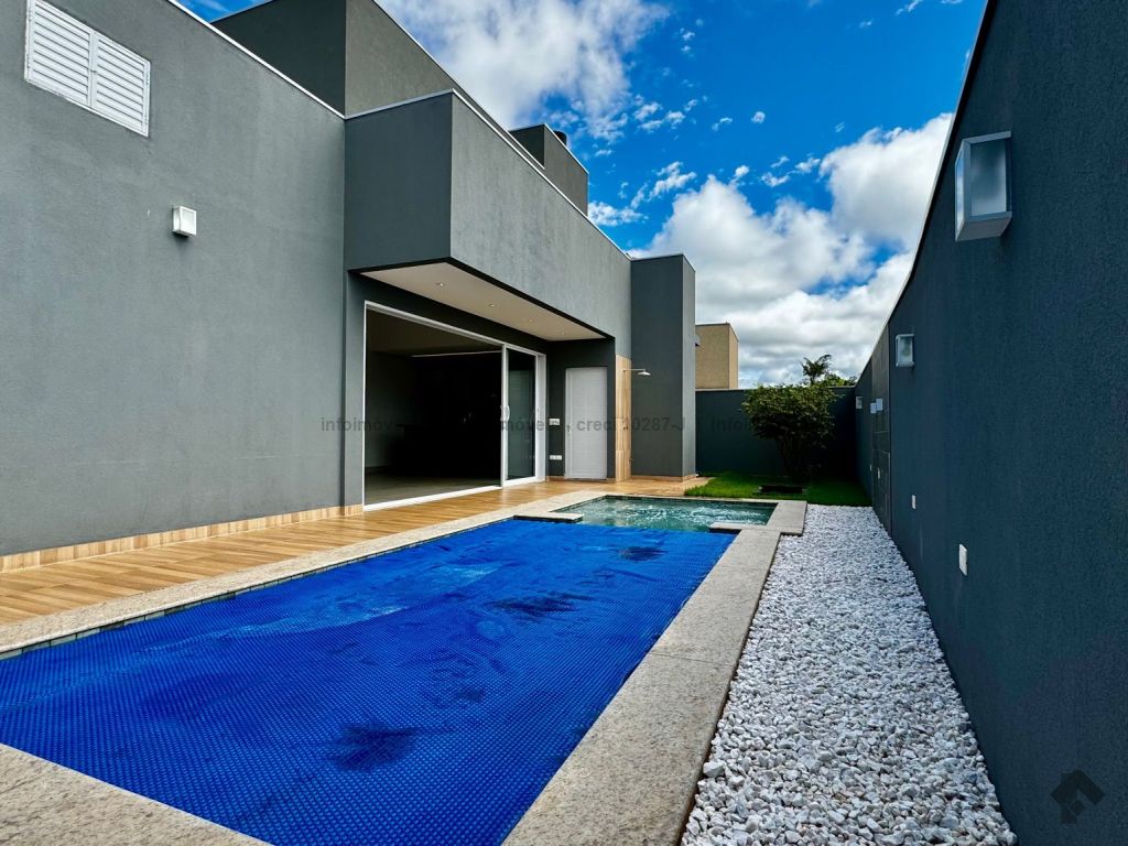 Casa térrea, Damha III, 412 m² total. Três suítes, todas com closet, sala com dois ambientes, home office, lavabo, cozinha com planejados, lavanderia, varanda gourmet, piscina aquecida com hidromassagem, banheiro social. Casa com energia fotovoltaica, boiler, janelas automatizadas, cooktop, coifa e marcenarias.