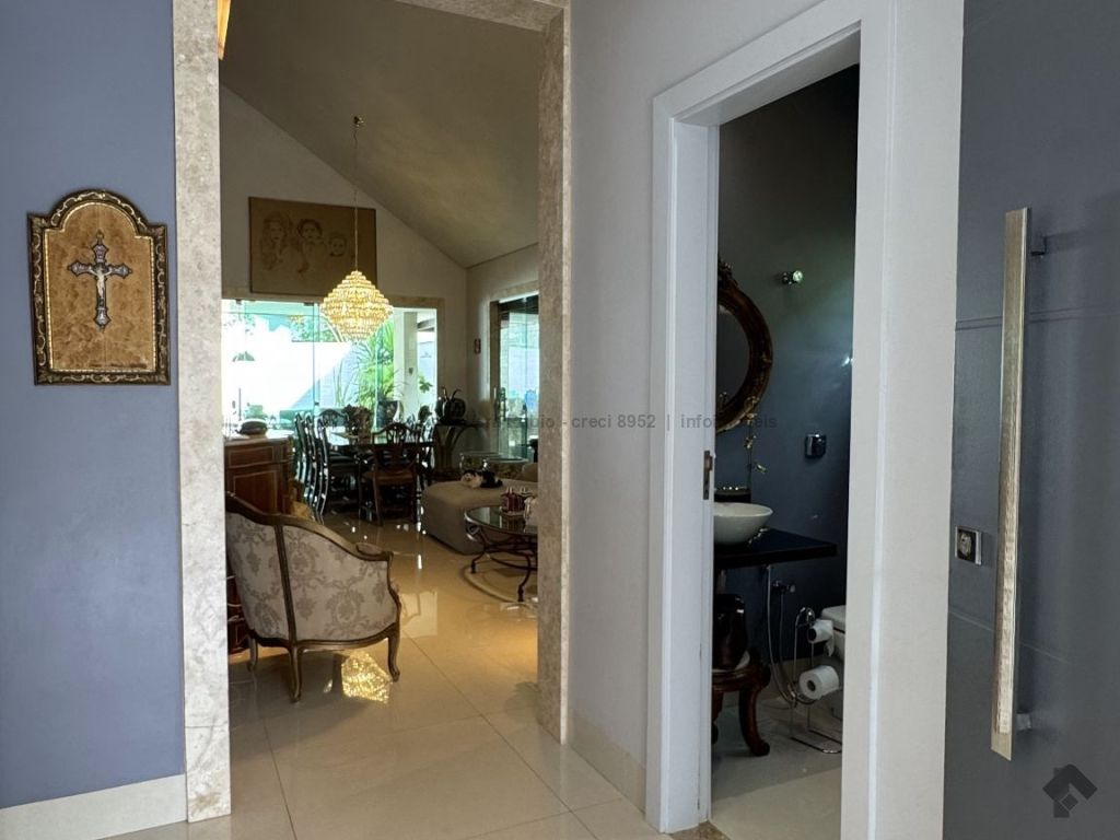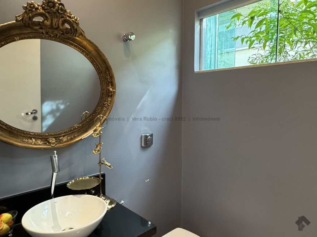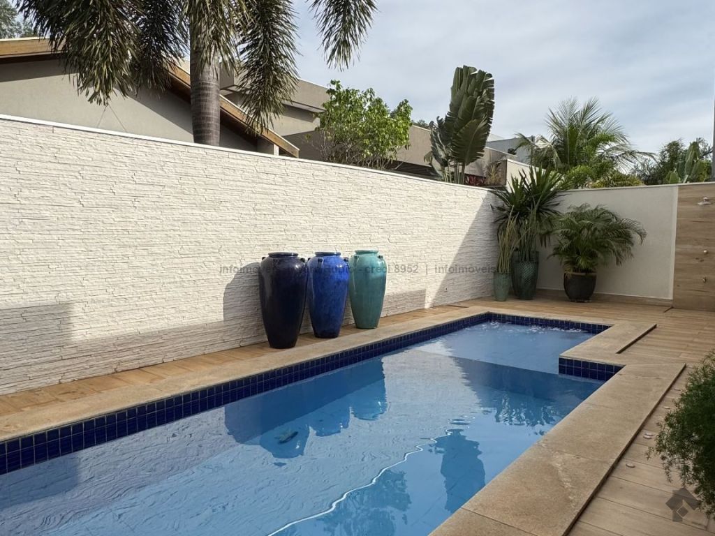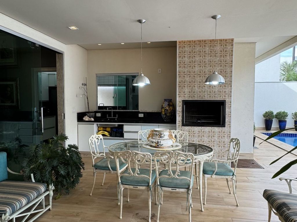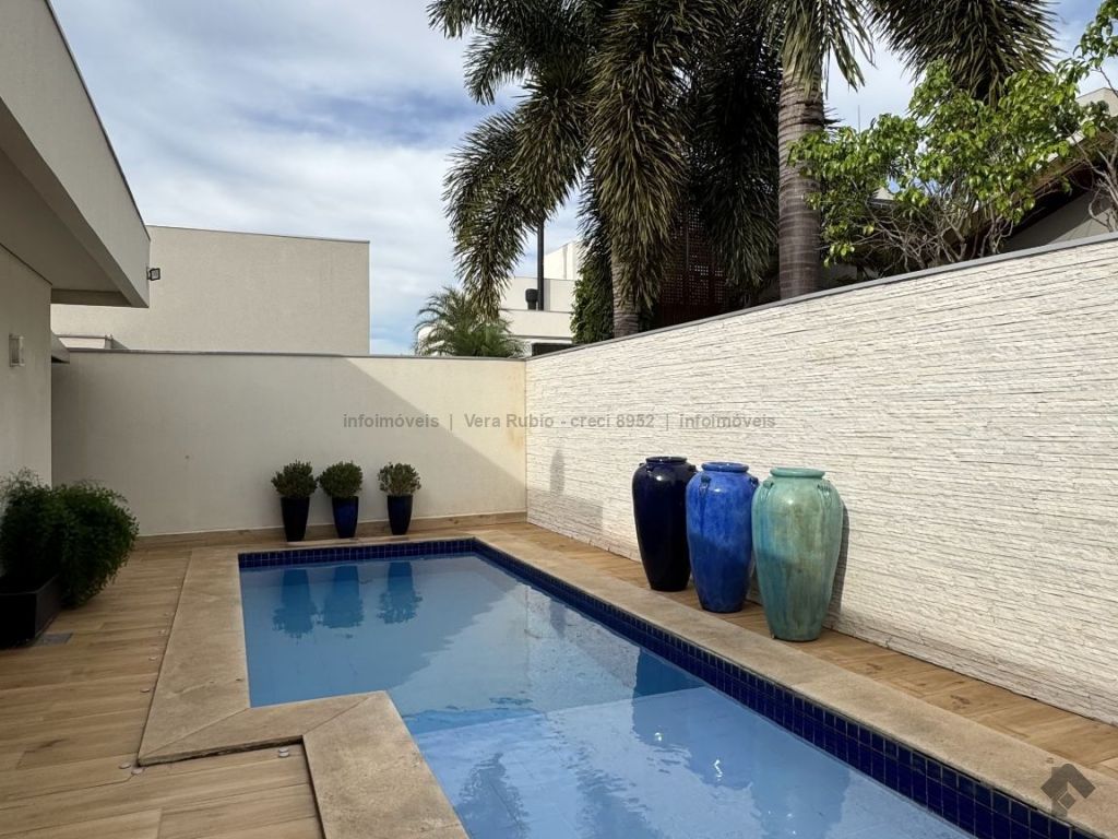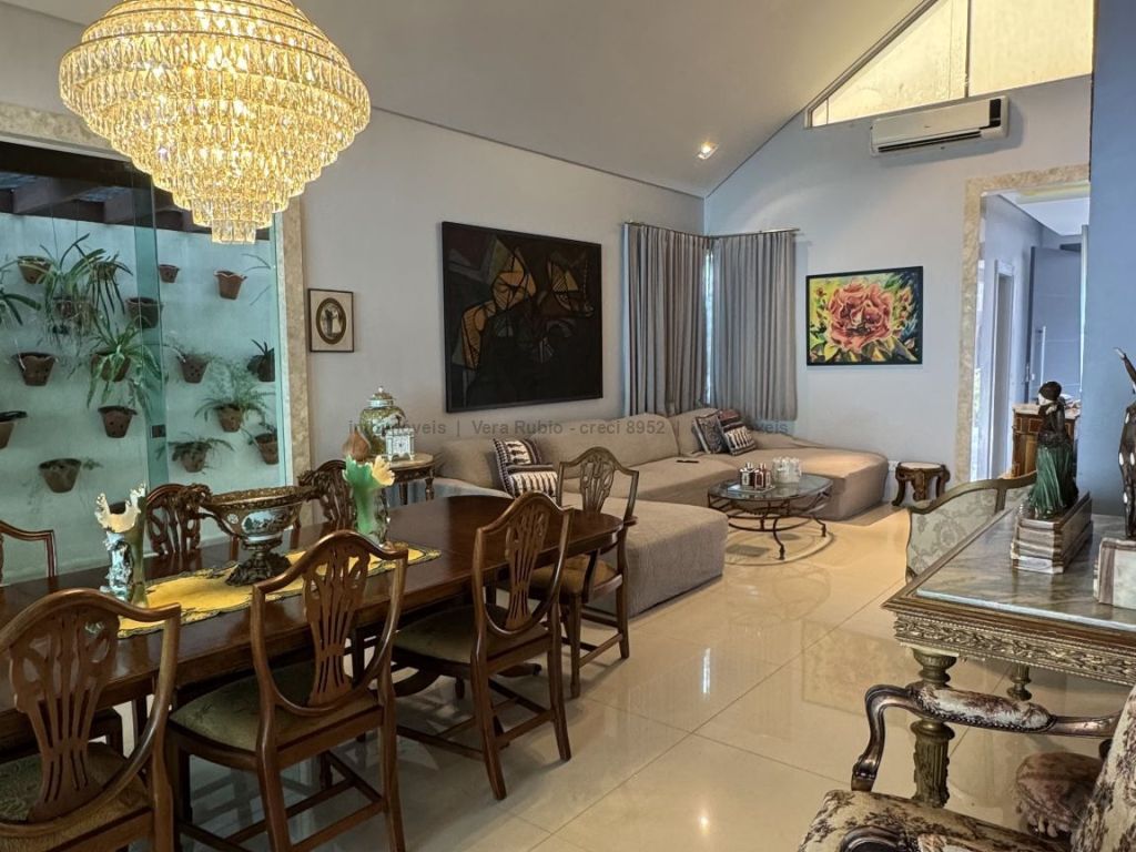 As salas de estar, TV e jantar são integradas em um belo ambiente com altíssimo teto inclinado. Ao lado da sala de jantar, há um jardim de inverno com pergolado em madeira e, ao fundo, portas de blindex separam o ambiente do espaço gourmet, integrando visualmente todos os ambientes sociais. Uma cozinha contemporânea com acesso para a área de serviço e para a sala de jantar, uma deliciosa piscina aquecida e tratada com ozônio, um banheiro para a piscina e área gourmet. Uma aconchegante suíte master com closet e banheira de hidromassagem, mais uma suíte e um quarto/escritório. Há corredor em volta de toda a casa, com acessos diferenciados para as duas suítes. A sala possui ar condicionado, os ares condicionados das suítes são quente e frio, a casa ainda conta com energia fotovoltaica.