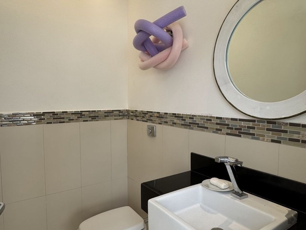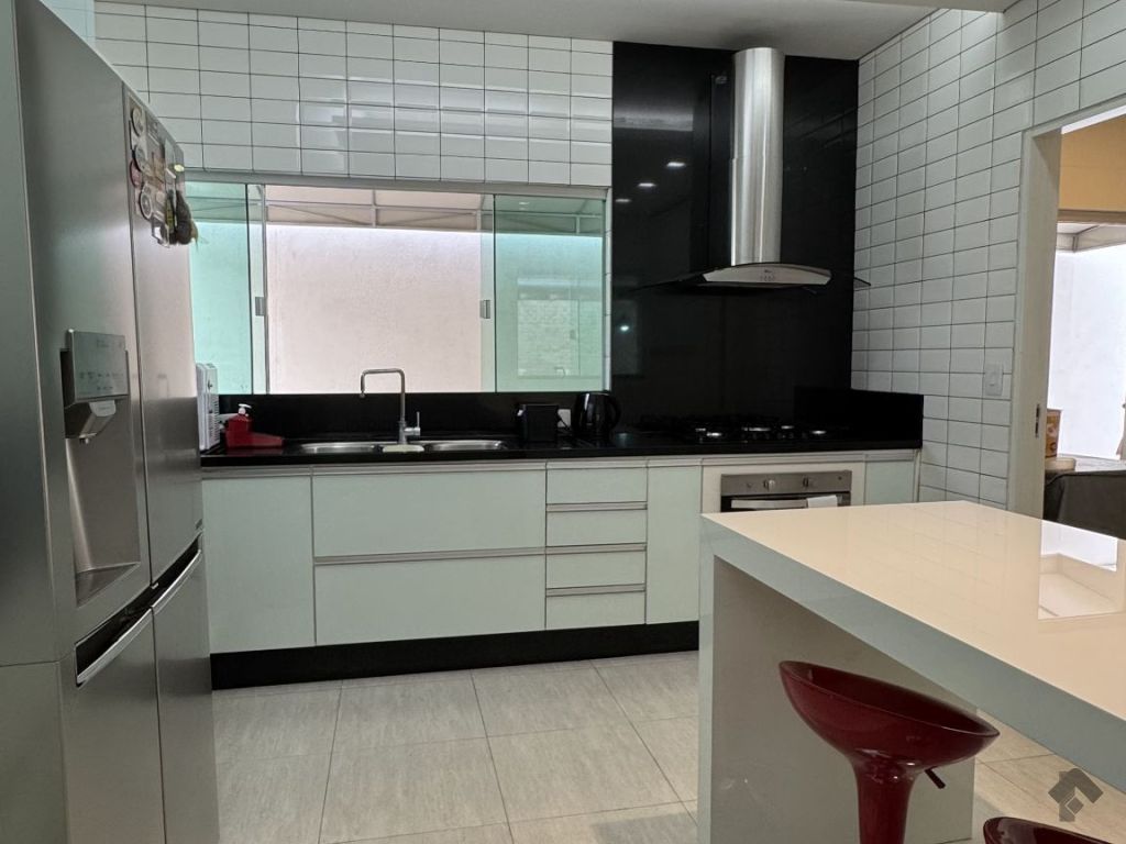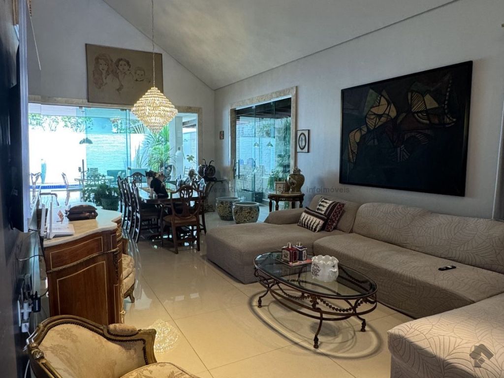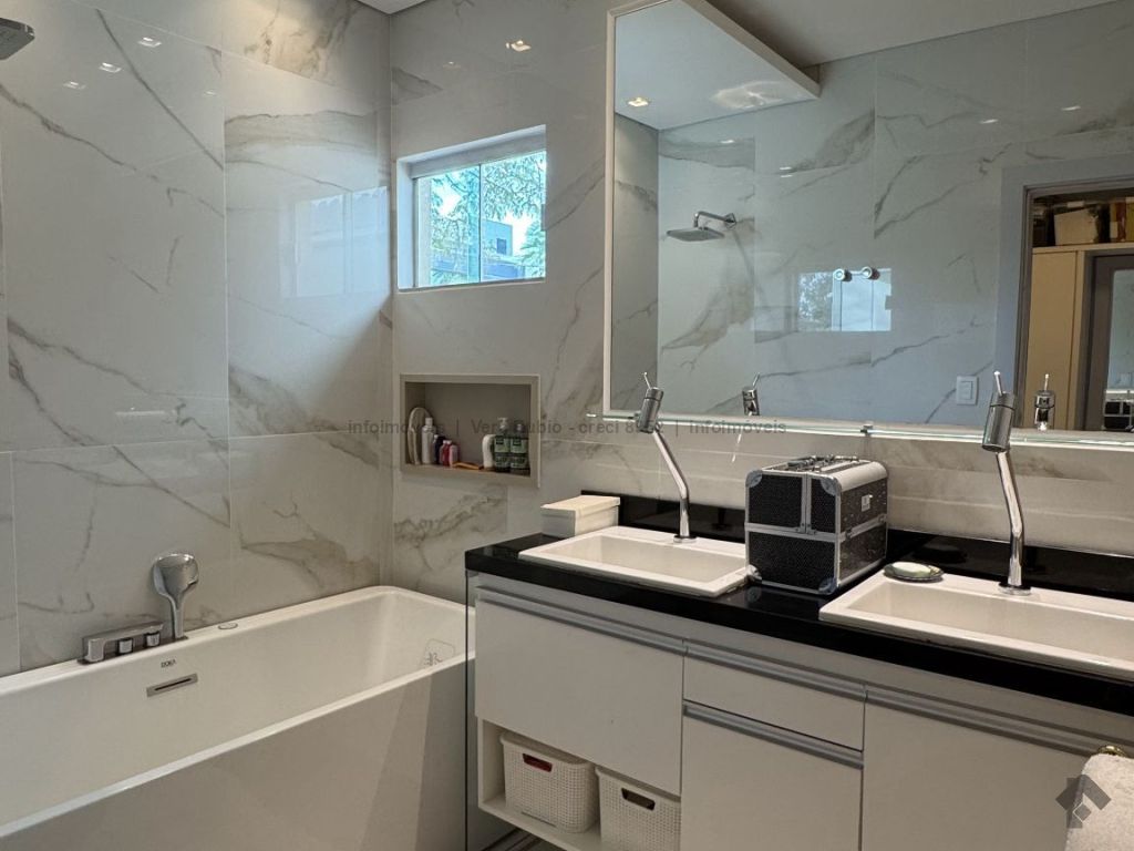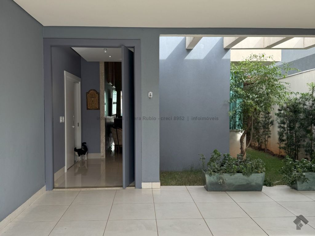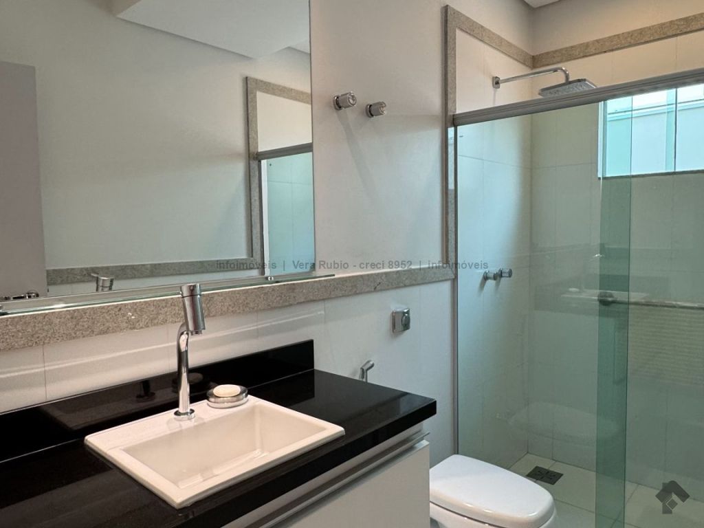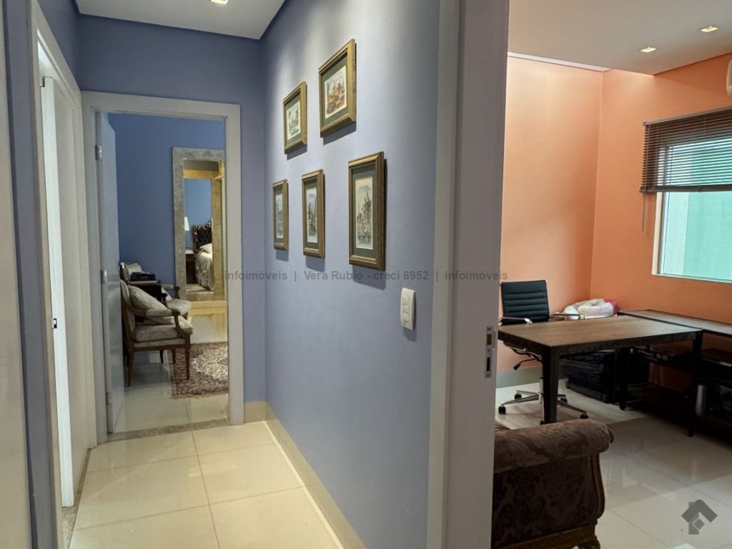 As salas de estar, TV e jantar são integradas em um belo ambiente com altíssimo teto inclinado. Ao lado da sala de jantar, há um jardim de inverno com pergolado em madeira e, ao fundo, portas de blindex separam o ambiente do espaço gourmet, integrando visualmente todos os ambientes sociais. Uma cozinha contemporânea com acesso para a área de serviço e para a sala de jantar, uma deliciosa piscina aquecida e tratada com ozônio, um banheiro para a piscina e área gourmet. Uma aconchegante suíte master com closet e banheira de hidromassagem, mais uma suíte e um quarto/escritório. Há corredor em volta de toda a casa, com acessos diferenciados para as duas suítes. A sala possui ar condicionado, os ares condicionados das suítes são quente e frio, a casa ainda conta com energia fotovoltaica.