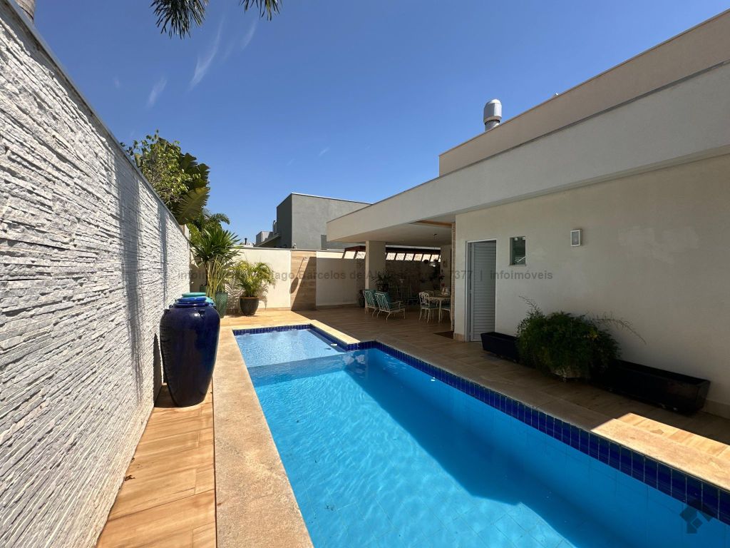 Casa térrea no Damha III com ótimo custo-benefício. São 2 suítes, sendo 1 máster com closet e banheira de hidromassagem, além de 1 quarto/escritório. Living para dois ambientes com pé-direito alto, lavabo, cozinha planejada com forno, fogão e coifa, área de serviço com armários. Ambientes climatizados com ar-condicionado e cortinas. Área gourmet integrada ao jardim, equipada com churrasqueira e banheiro de apoio. Piscina aquecida com hidromassagem, paisagismo, jardim de inverno e irrigação automatizada. Diferenciais: sistema de energia fotovoltaica, acabamento refinado em porcelanato e bancadas em granito São Gabriel. Garagem para até 4 carros.