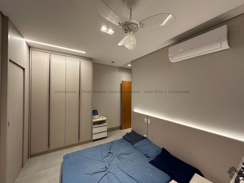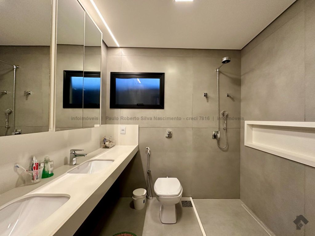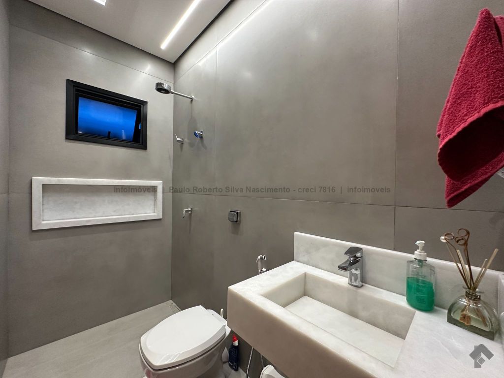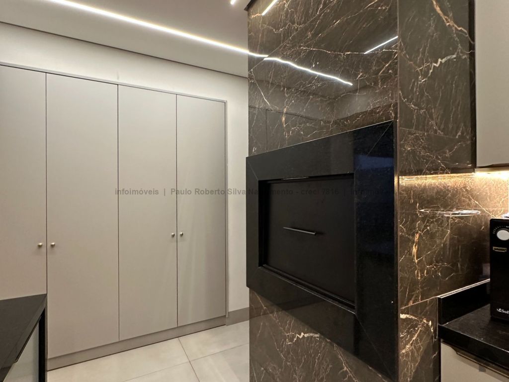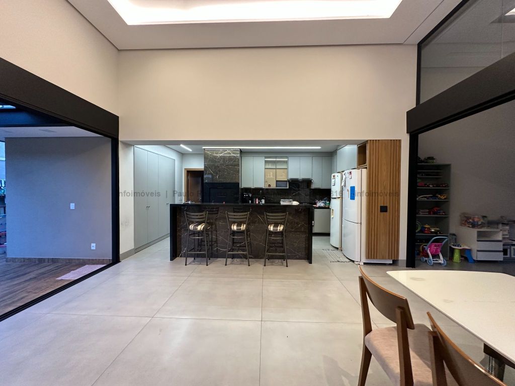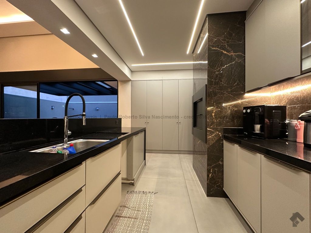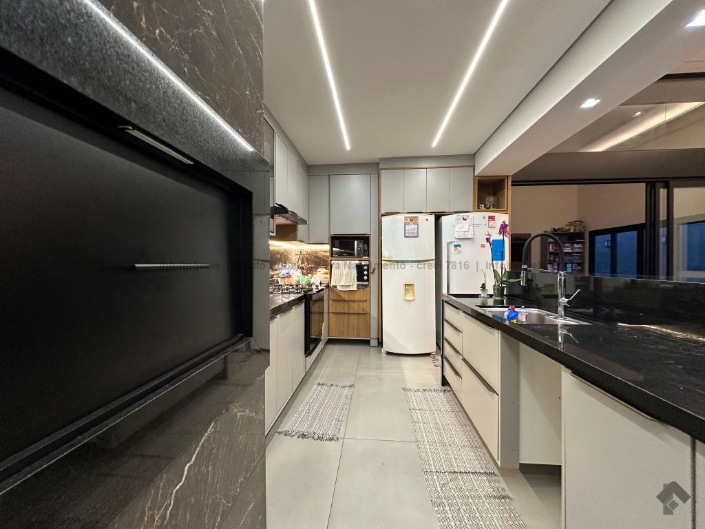 Conta com três suítes, escritório com banheiro que pode ser revertido em suíte de apoio, cozinha gourmet integrada, sala ampla, despensa, área de serviço e quintal.