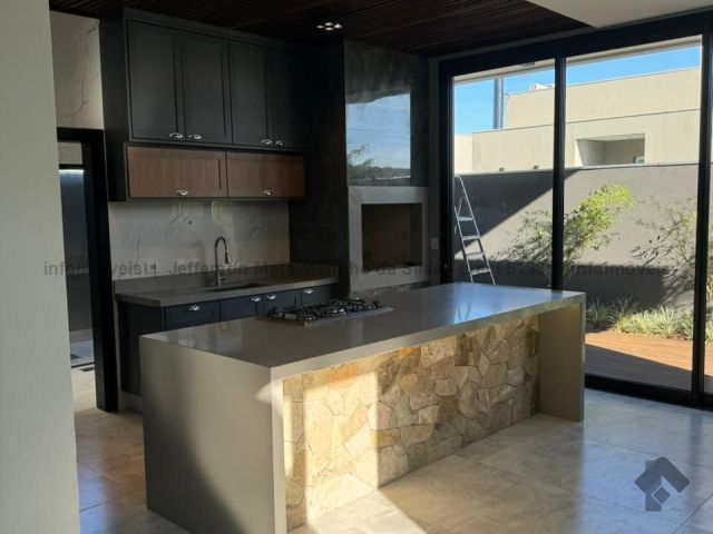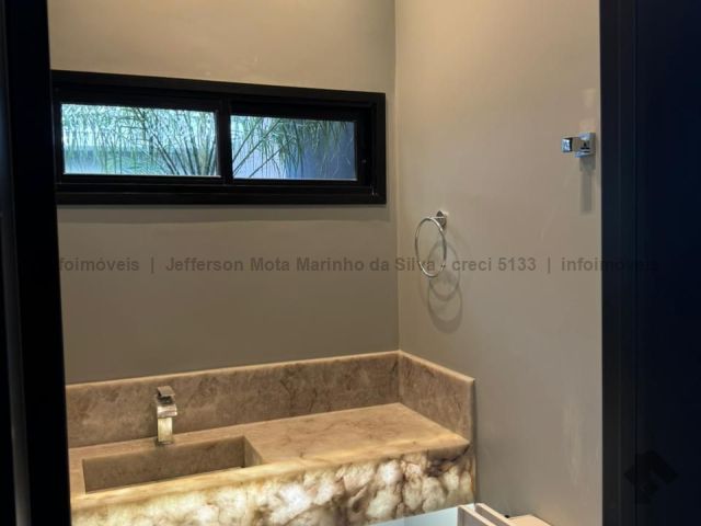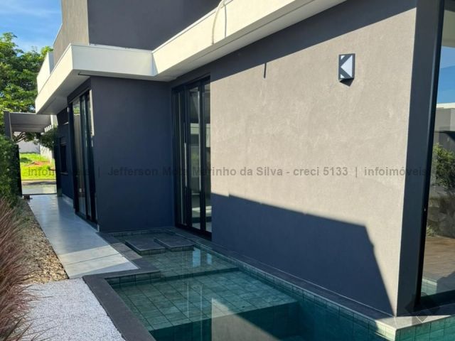 Casa de 3 suítes, cozinha, churrasqueira privativa, WC social, área de serviço e garagem para 4 carros. Laje e gesso acartonado rebaixado em LED, porcelanato retificado, rodapés embutidos, paisagismo e irrigação automatizada nos jardins, portas com pintura em laca preta, piscina aquecida com hidromassagem e cascata, esquadrias de alumínio automatizadas, asfalto e esgoto, água quente de alta pressão. Pinturas externas toda em granelli e cristal, móveis planejados, banheiros completos com chuveiros e box de alto padrão, pré-instalações de ar condicionado ripados em madeira Itauba.