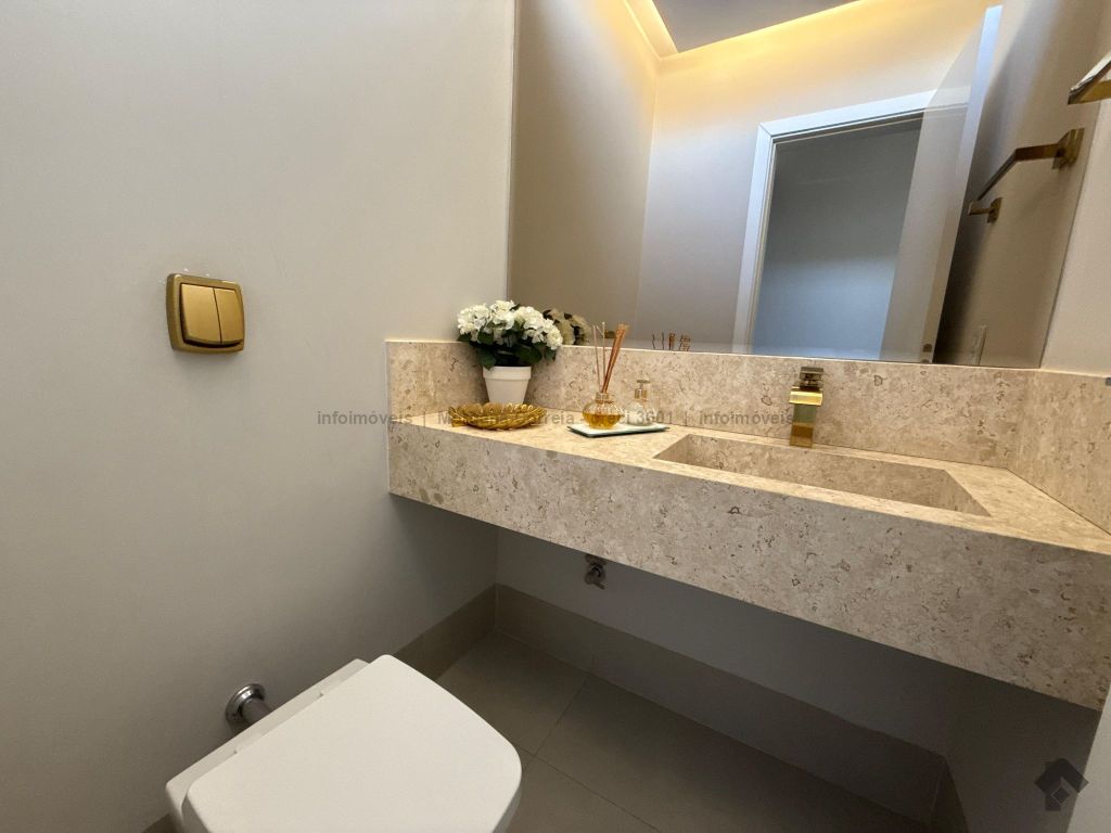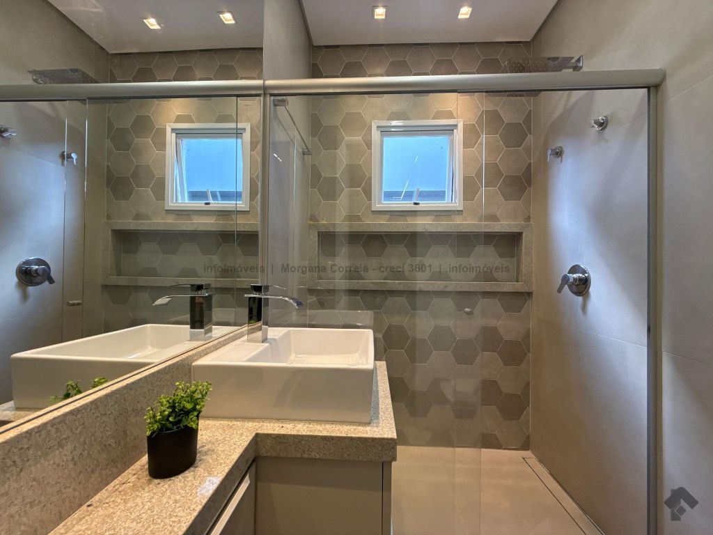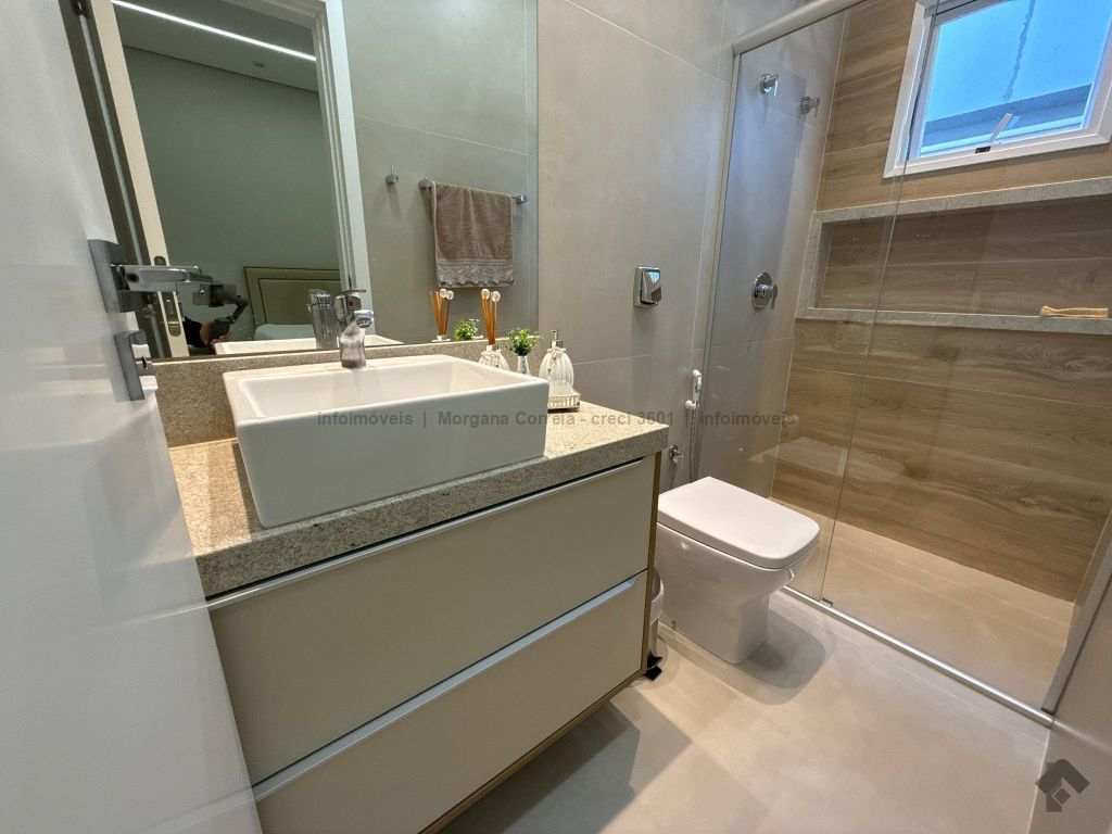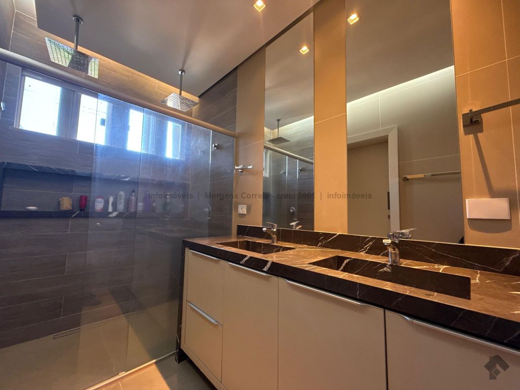 Janelas com persianas embutidas, espaço gourmet climatizado, piscina aquecida com prainha e iluminação em LED, sistema de aquecimento de água e energia fotovoltaica.