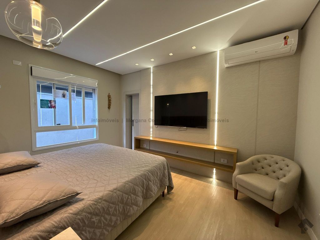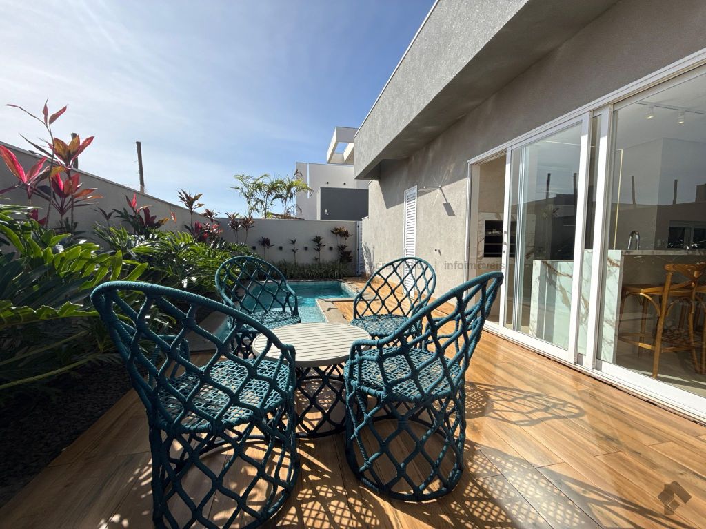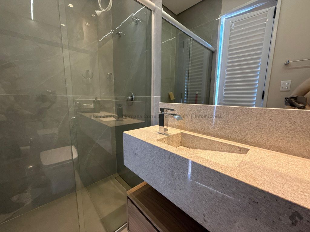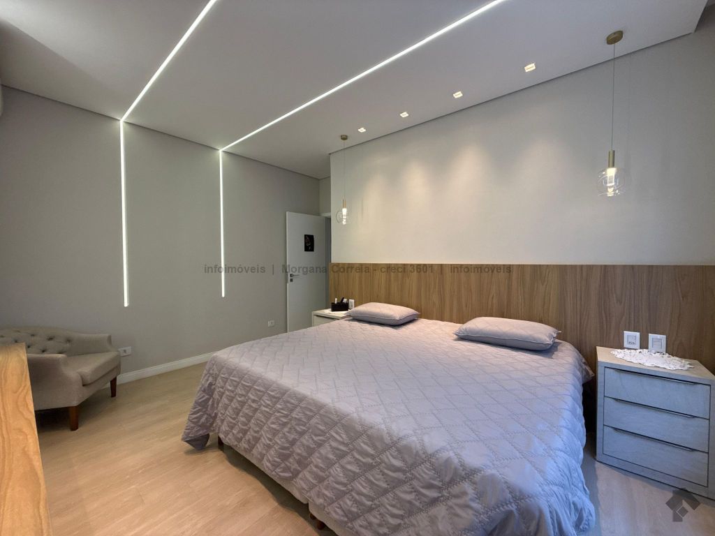 Janelas com persianas embutidas, espaço gourmet climatizado, piscina aquecida com prainha e iluminação em LED, sistema de aquecimento de água e energia fotovoltaica.