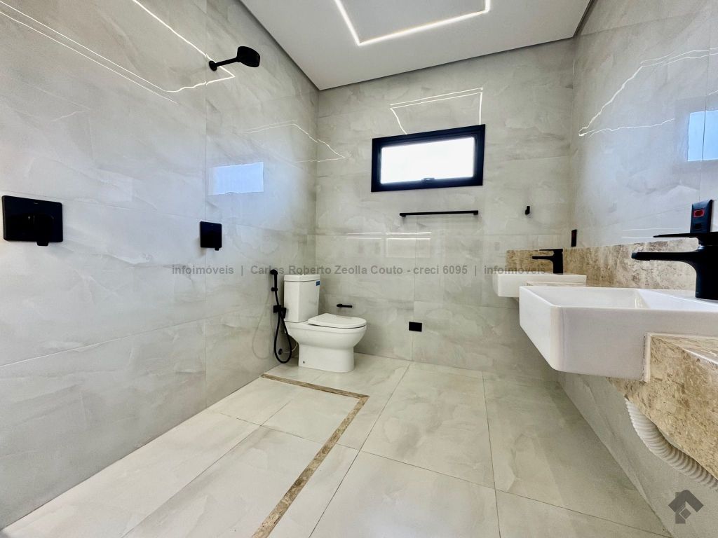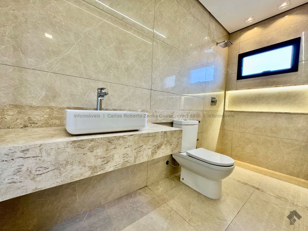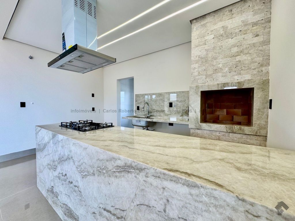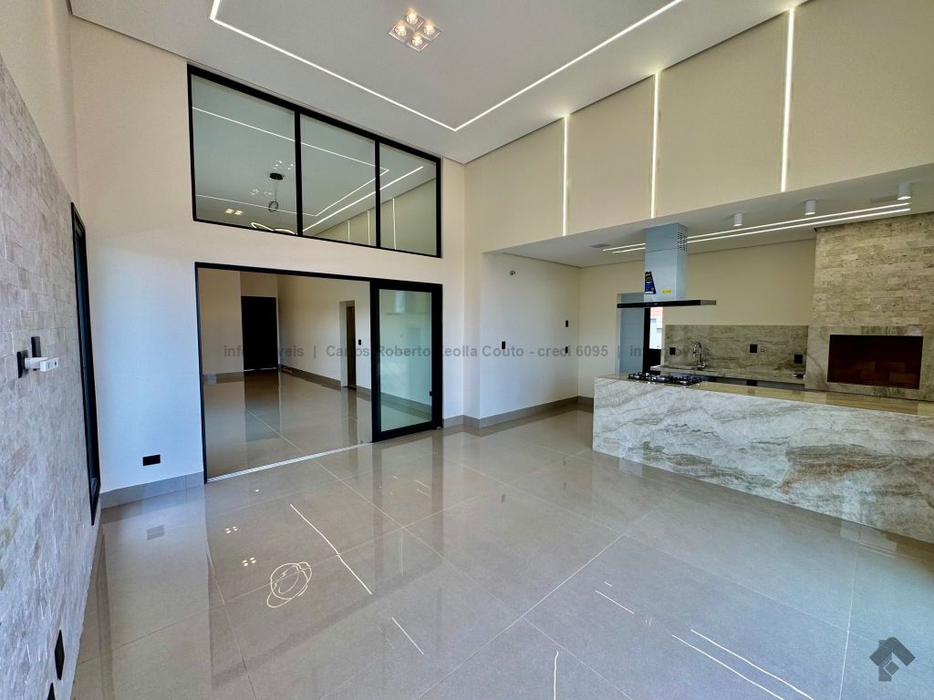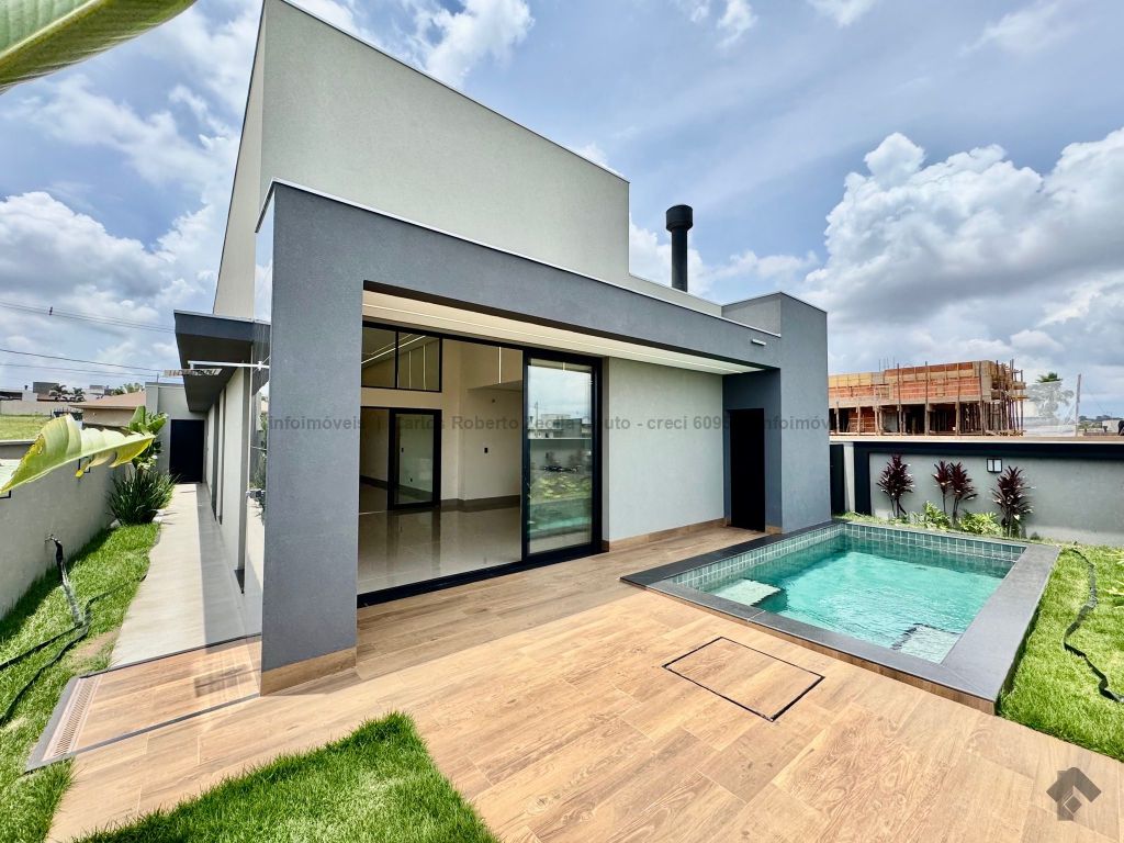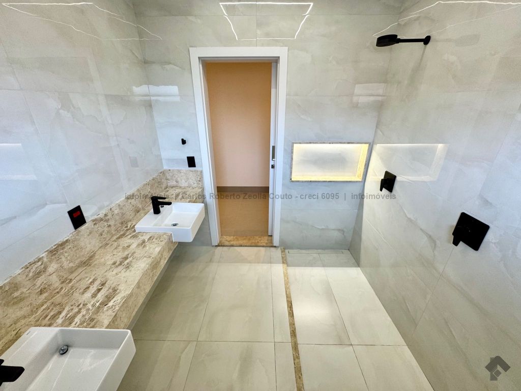 Sala com pé direito duplo e acabamento de alto padrão. Conta com piscina aquecida, hidromassagem e sistema de energia fotovoltaica já instalado, proporcionando maior eficiência energética. São três suítes amplas, todas com janelas automatizadas e excelente posição solar nascente. O living é integrado e espaçoso, com ambientes de sala de TV, estar e jantar. A área gourmet é ideal para receber amigos e família, oferecendo conforto e sofisticação. Toda a casa está equipada com automação Alexa, permitindo controle inteligente do ar condicionado, iluminação e sistema de som nos principais ambientes: sala, área gourmet, piscina e garagem.