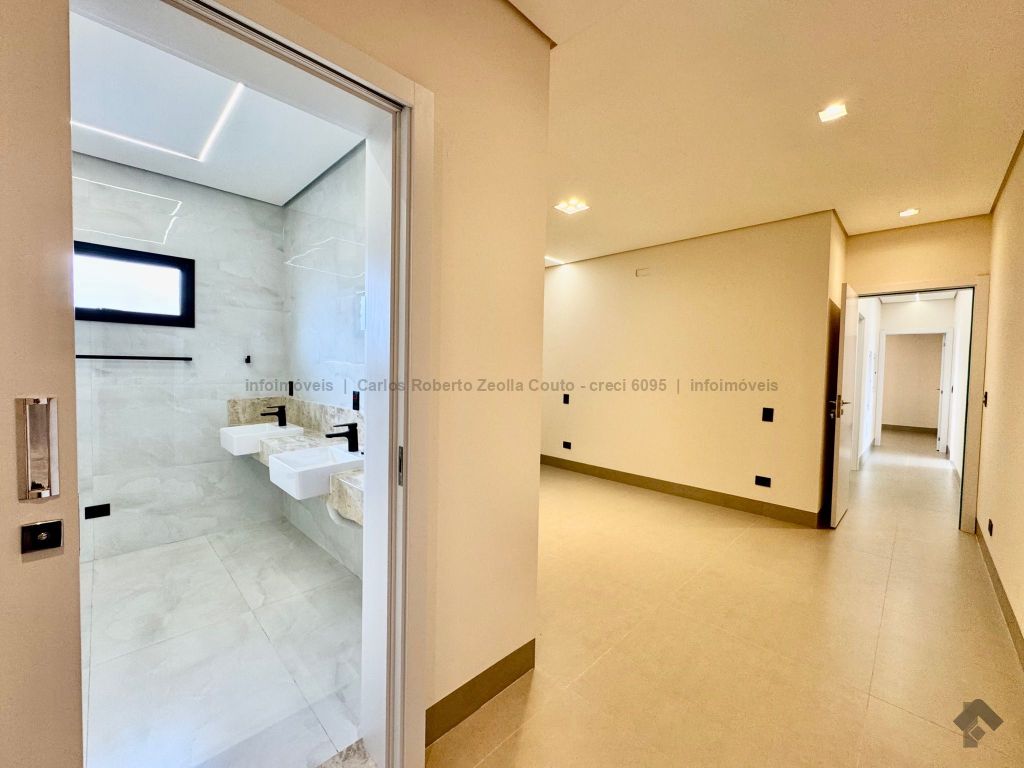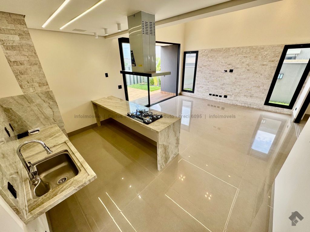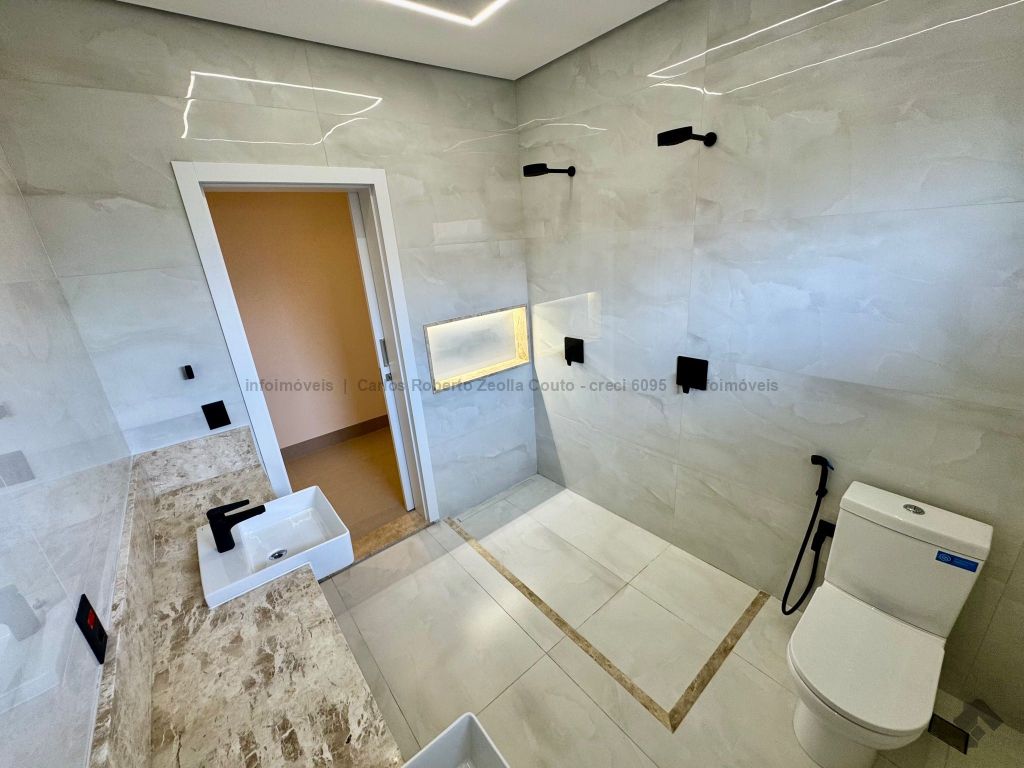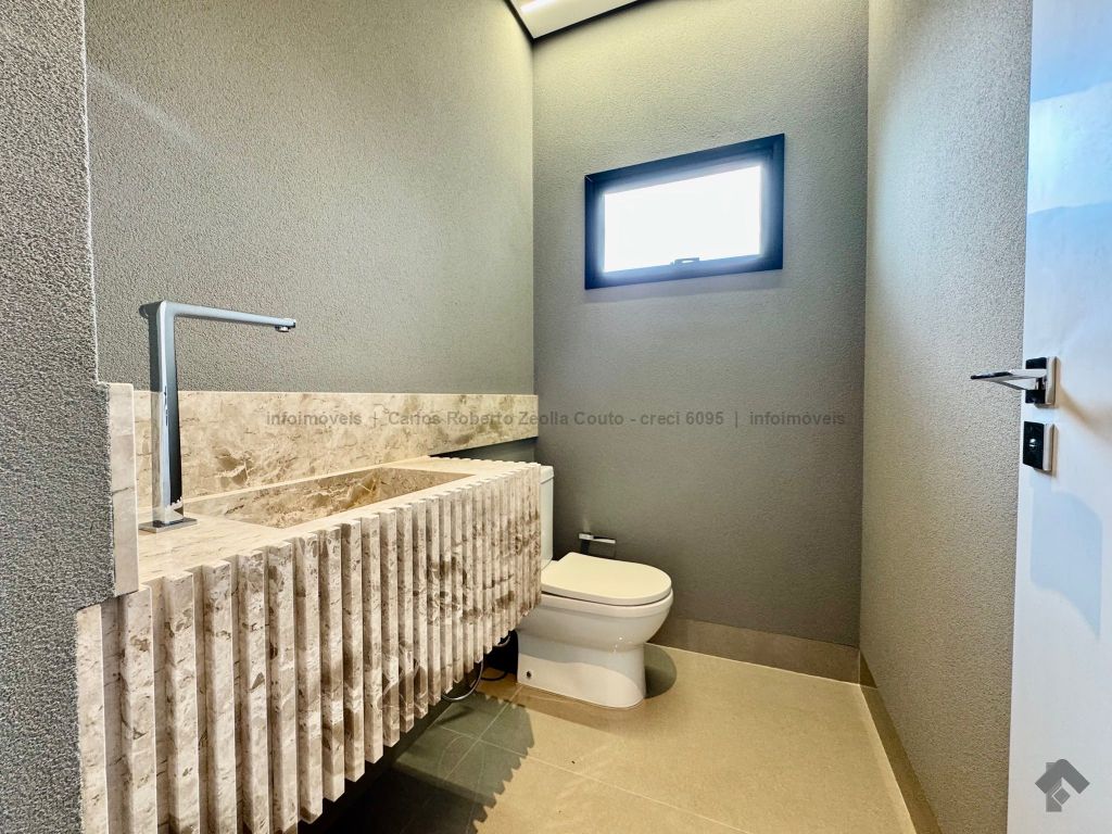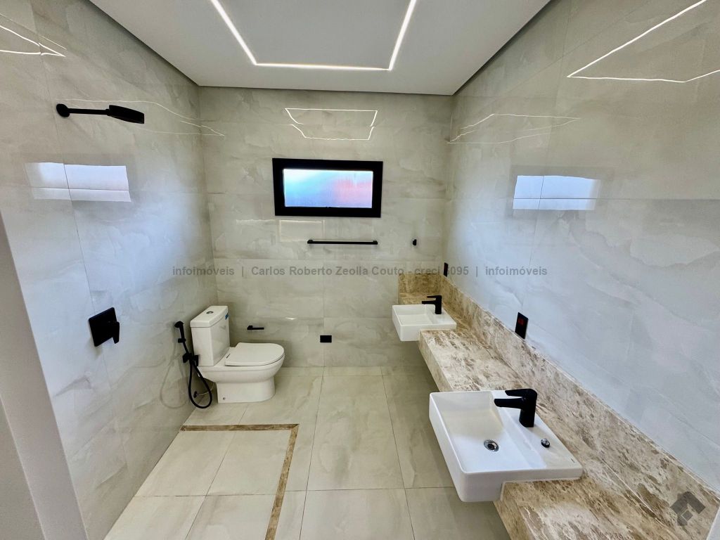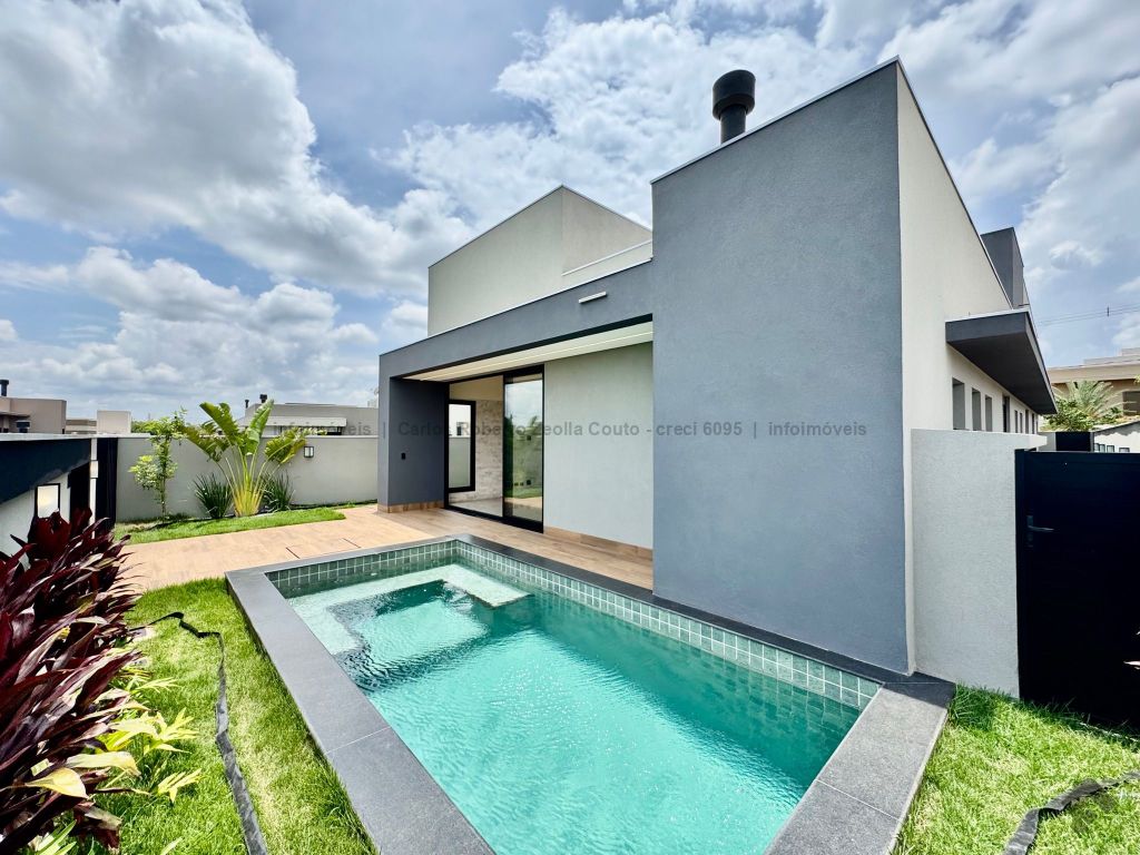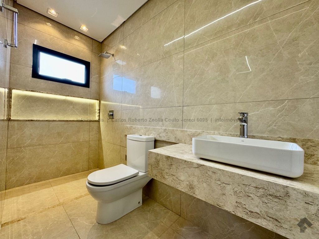 Sala com pé direito duplo e acabamento de alto padrão. Conta com piscina aquecida, hidromassagem e sistema de energia fotovoltaica já instalado, proporcionando maior eficiência energética. São três suítes amplas, todas com janelas automatizadas e excelente posição solar nascente. O living é integrado e espaçoso, com ambientes de sala de TV, estar e jantar. A área gourmet é ideal para receber amigos e família, oferecendo conforto e sofisticação. Toda a casa está equipada com automação Alexa, permitindo controle inteligente do ar condicionado, iluminação e sistema de som nos principais ambientes: sala, área gourmet, piscina e garagem.