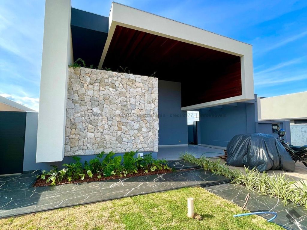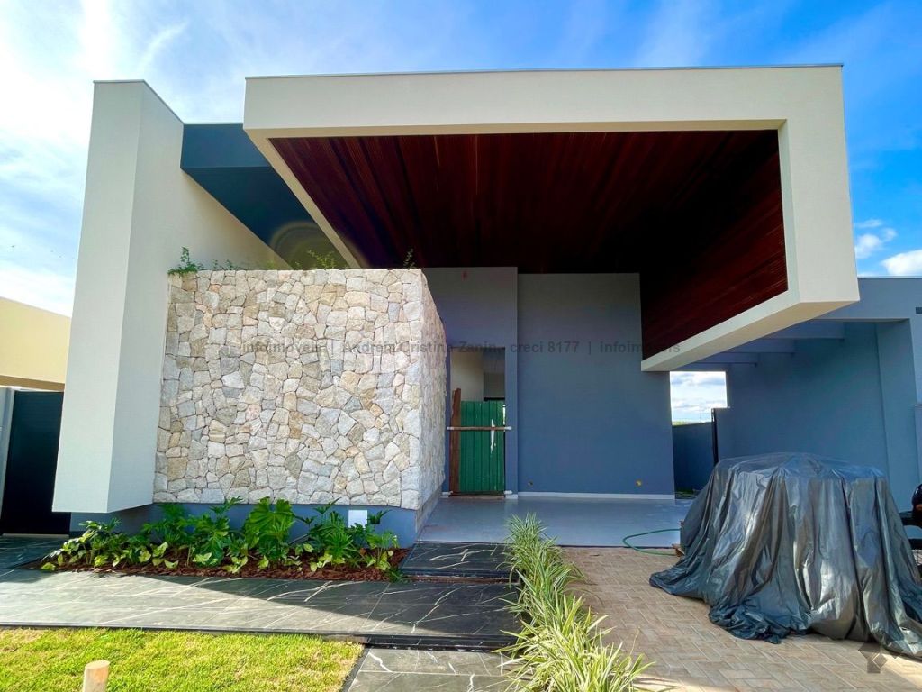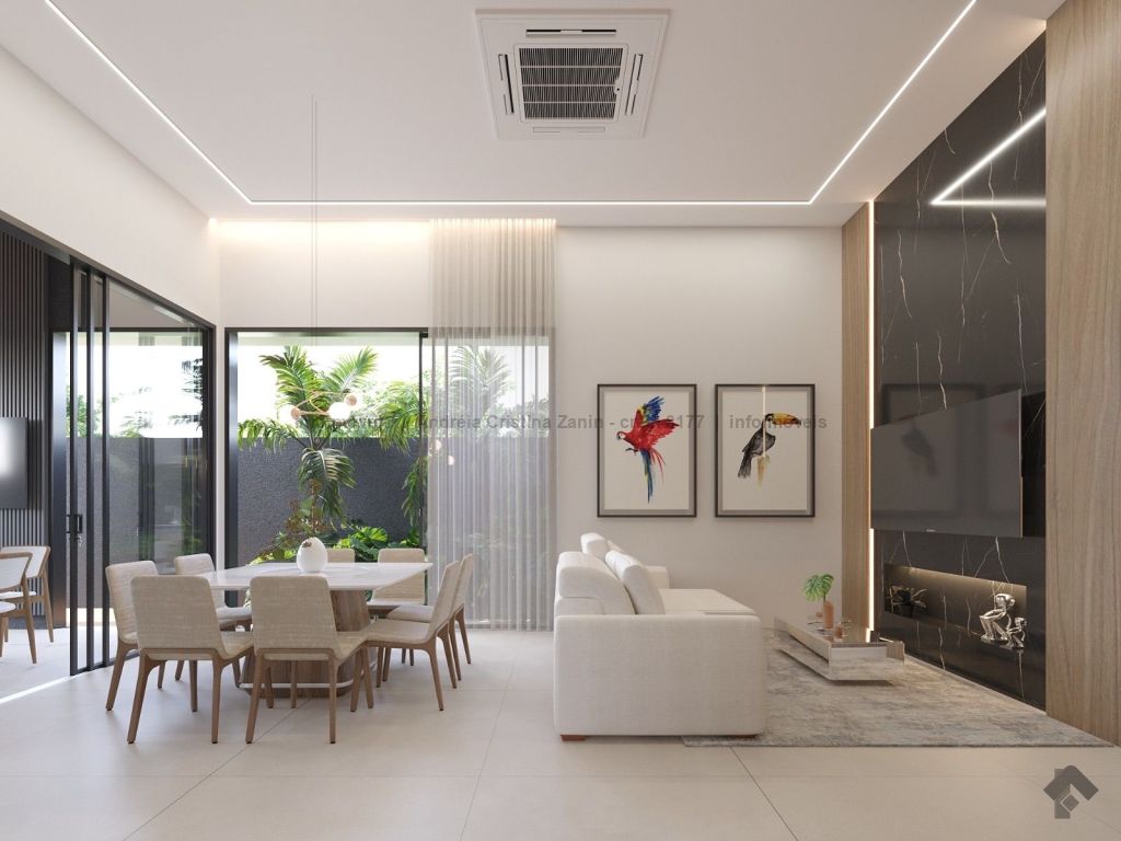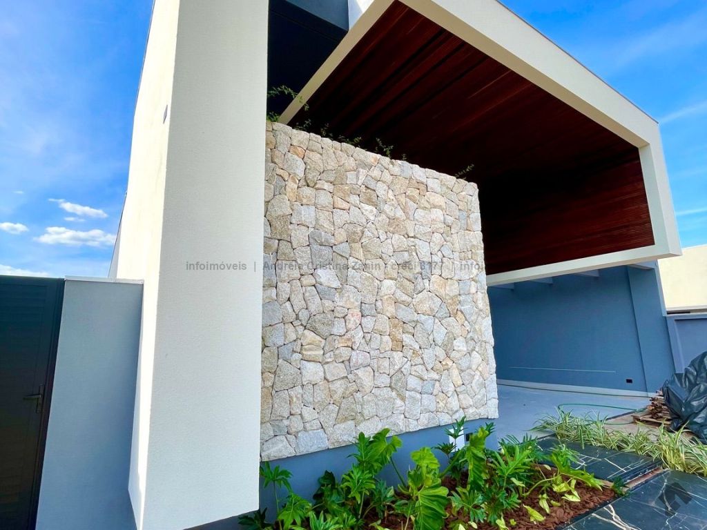 Moderna casa térrea com 3 suítes e lazer completo. Casa incrível, com acabamento de alto padrão e projeto moderno. São 3 suítes amplas, sala com 2 ambientes e pé-direito duplo, trazendo amplitude e iluminação natural. A sala e o espaço gourmet contam com ar-condicionado tipo cassete, garantindo conforto térmico em todos os momentos. Destaques do imóvel: lavabo elegante, espaço gourmet separado, perfeito para receber amigos, piscina aquecida com cascata e hidromassagem, ambientes integrados e bem planejados, projeto moderno e funcional. Um imóvel que une sofisticação, conforto e lazer em um só lugar.