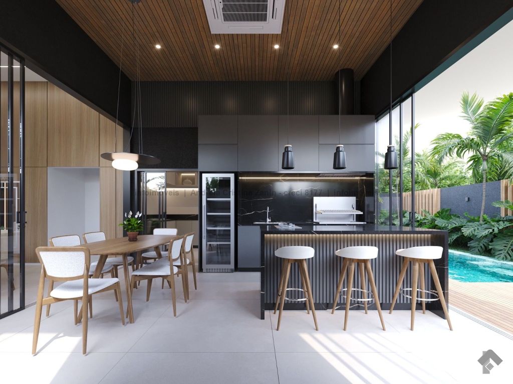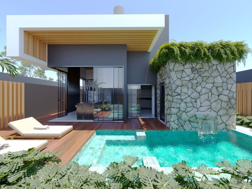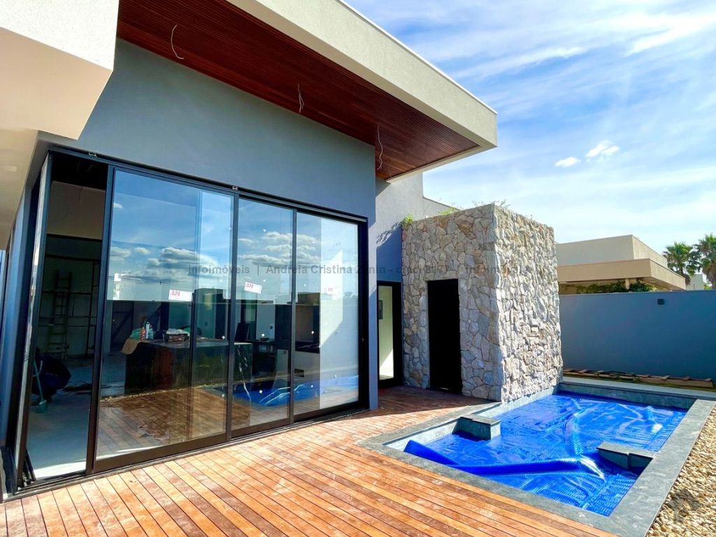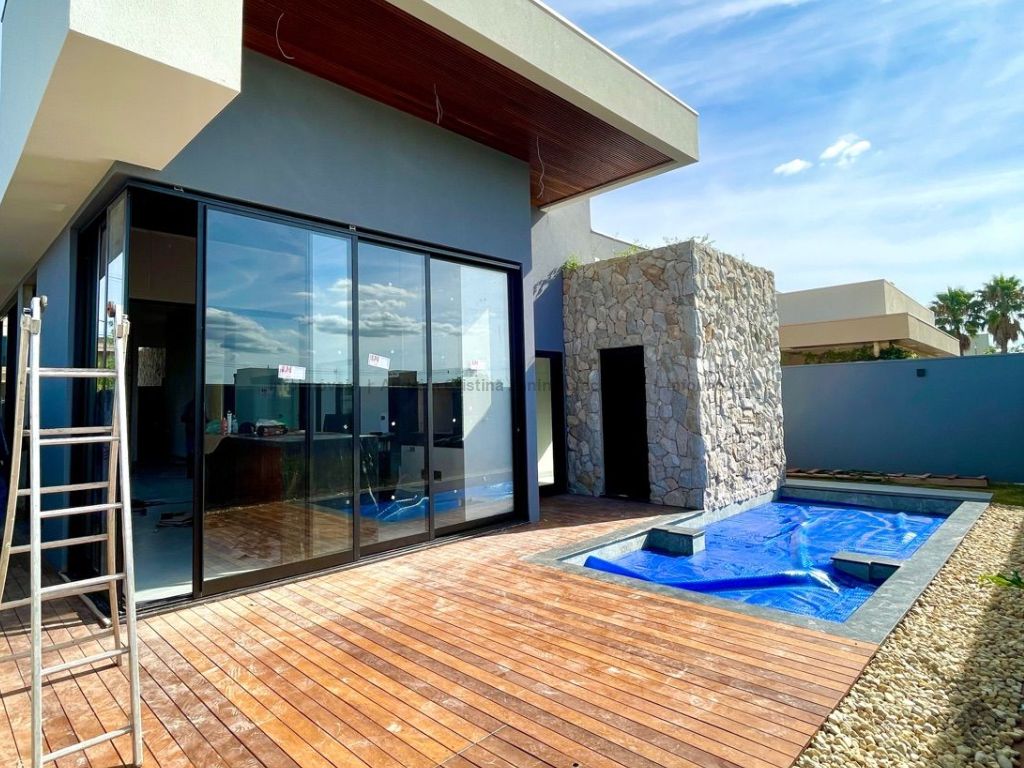 Moderna casa térrea com 3 suítes e lazer completo. Casa incrível, com acabamento de alto padrão e projeto moderno. São 3 suítes amplas, sala com 2 ambientes e pé-direito duplo, trazendo amplitude e iluminação natural. A sala e o espaço gourmet contam com ar-condicionado tipo cassete, garantindo conforto térmico em todos os momentos. Destaques do imóvel: lavabo elegante, espaço gourmet separado, perfeito para receber amigos, piscina aquecida com cascata e hidromassagem, ambientes integrados e bem planejados, projeto moderno e funcional. Um imóvel que une sofisticação, conforto e lazer em um só lugar.