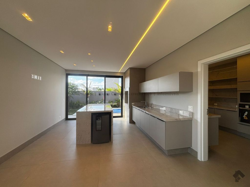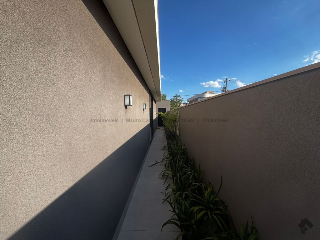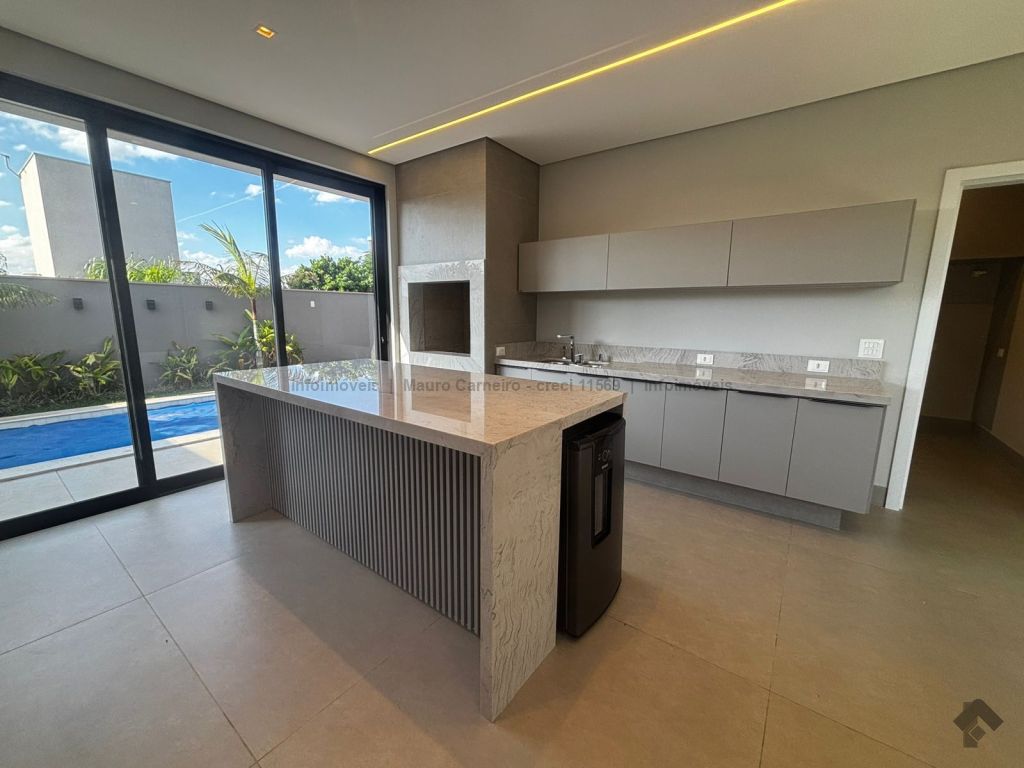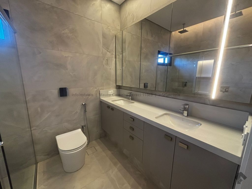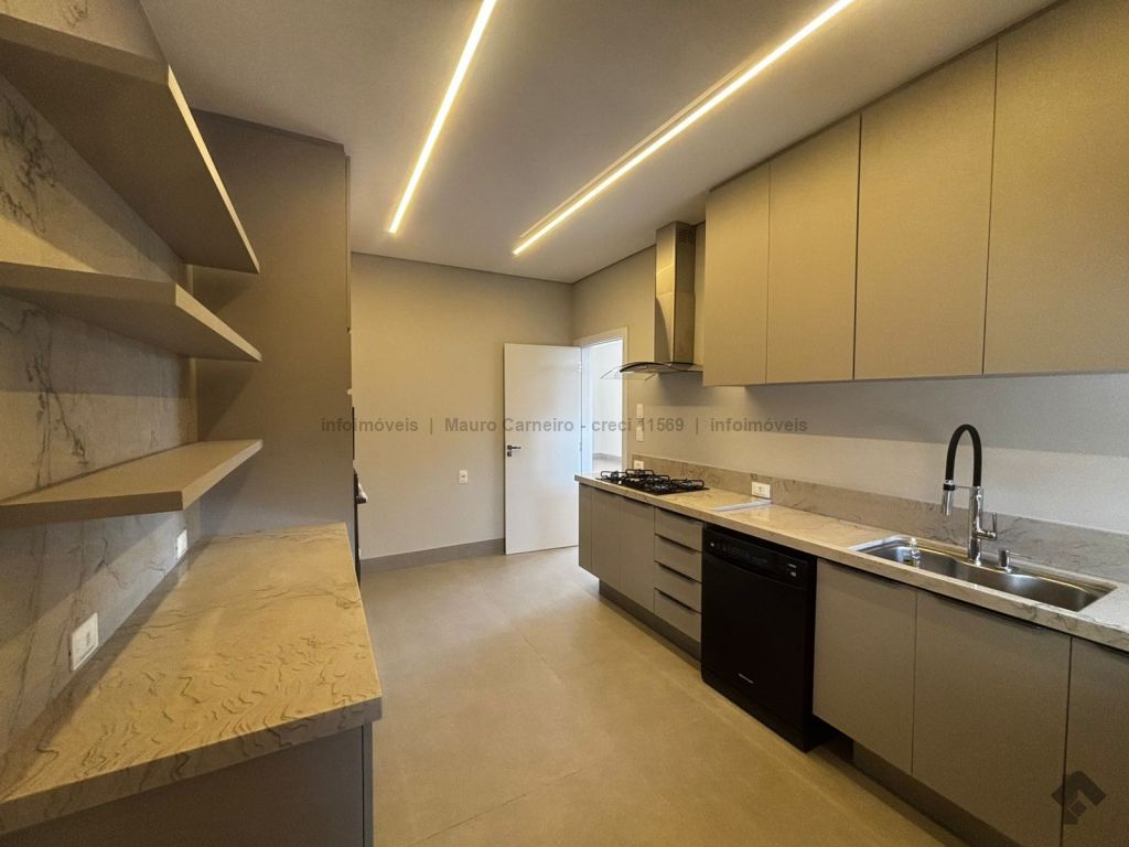 Com fachada moderna e um projeto arquitetônico que privilegia a iluminação natural, com uma sala ampla para dois ambientes, com pé-direito duplo, lavabo e escritório, e cozinha individualizada equipada, com bancada em quartzo Mont Blanc, móveis planejados e eletrodomésticos embutidos, incluindo coifa, cooktop, forno, micro-ondas e lava-louças, despensa e lavanderia funcional. O espaço gourmet é completo em armários e com cervejeira. A piscina aquecida, com hidromassagem, iluminação em LED e revestimento em pedra natural Aquamarine. Na área íntima, são três suítes, todas com ar-condicionado, armários planejados e persianas automatizadas blackout.