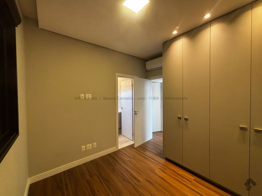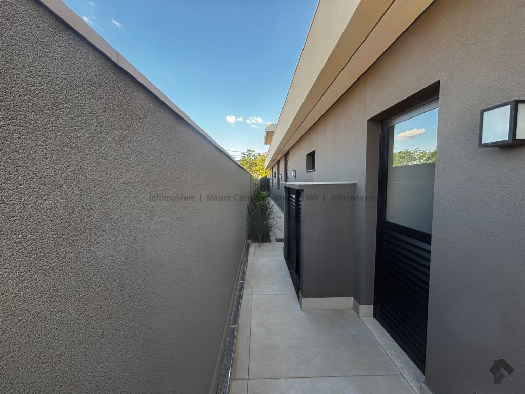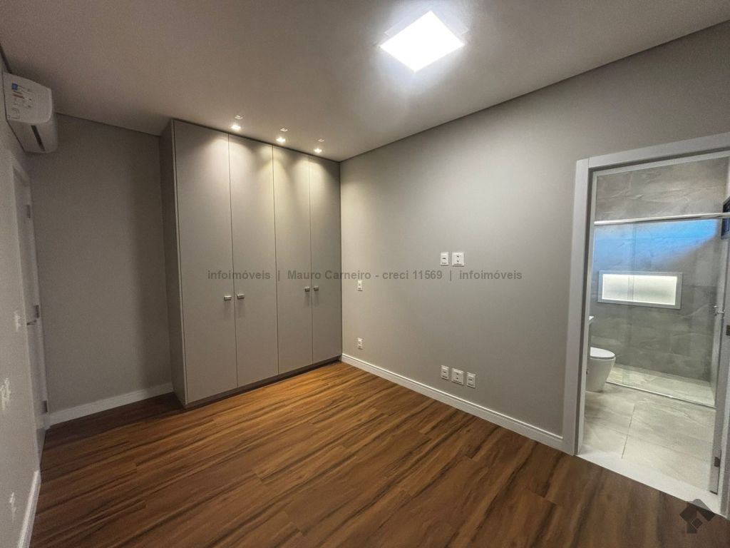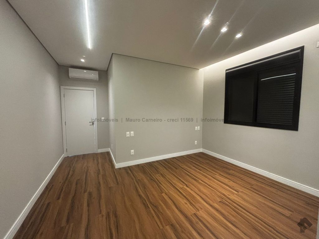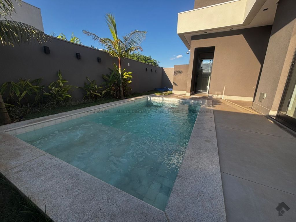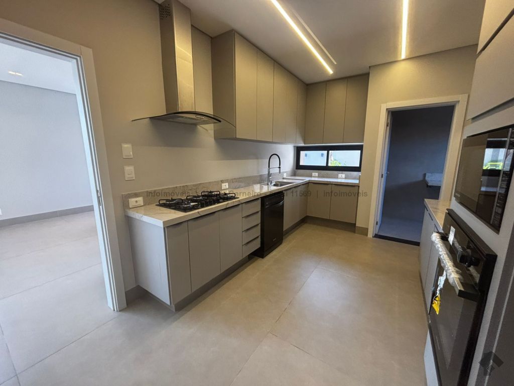 Com fachada moderna e um projeto arquitetônico que privilegia a iluminação natural, com uma sala ampla para dois ambientes, com pé-direito duplo, lavabo e escritório, e cozinha individualizada equipada, com bancada em quartzo Mont Blanc, móveis planejados e eletrodomésticos embutidos, incluindo coifa, cooktop, forno, micro-ondas e lava-louças, despensa e lavanderia funcional. O espaço gourmet é completo em armários e com cervejeira. A piscina aquecida, com hidromassagem, iluminação em LED e revestimento em pedra natural Aquamarine. Na área íntima, são três suítes, todas com ar-condicionado, armários planejados e persianas automatizadas blackout.