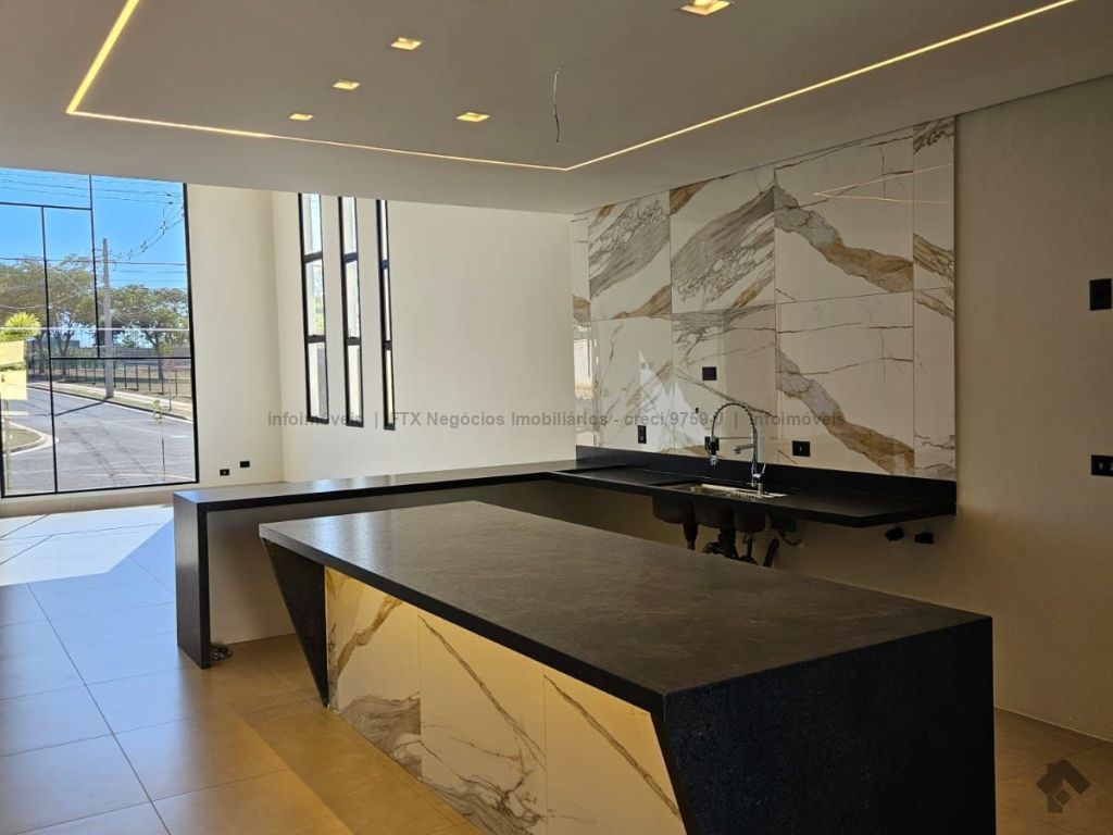 Casa térrea nova no condomínio Alphaville IV ( próximo da entrada e em frente à área de lazer). Com 03 suítes, sendo uma com closet, sala de estar ampla com pé direito duplo integrado com cozinha, varanda gourmet, lavabo externo, piscina, área de serviço e despensa. Projeto arquitetônico diferenciado. Fachada moderna e imponente. Condomínio com segurança rígida, portaria 24h e estrutura de lazer completa.