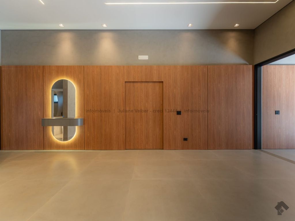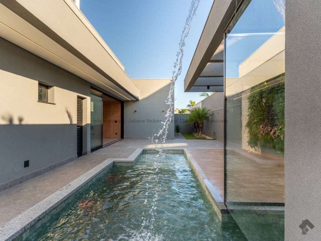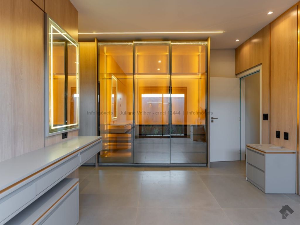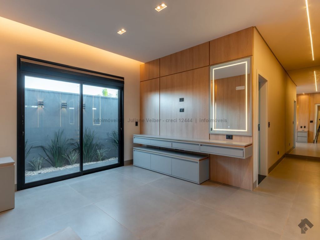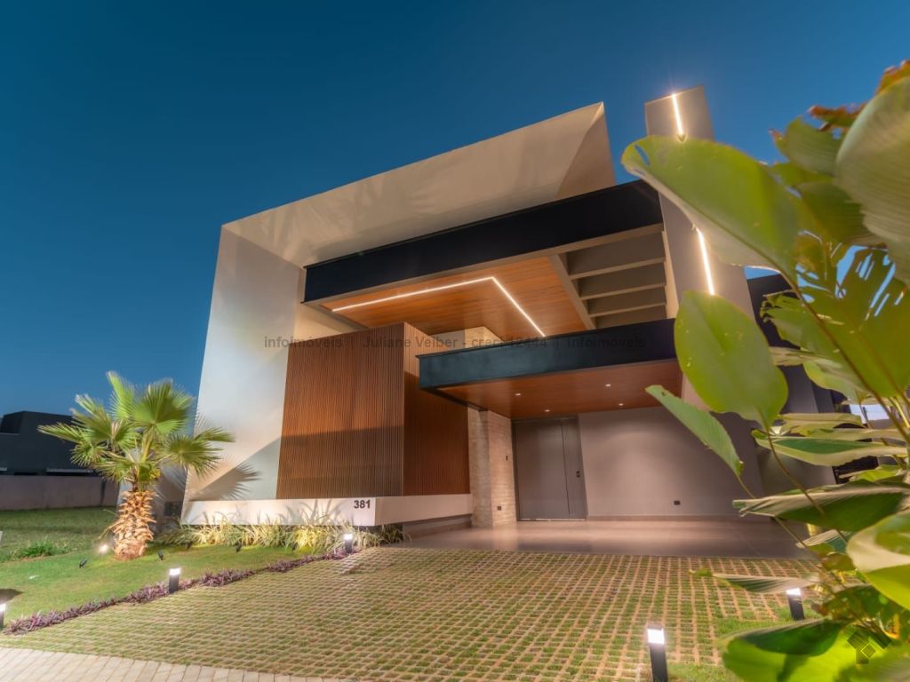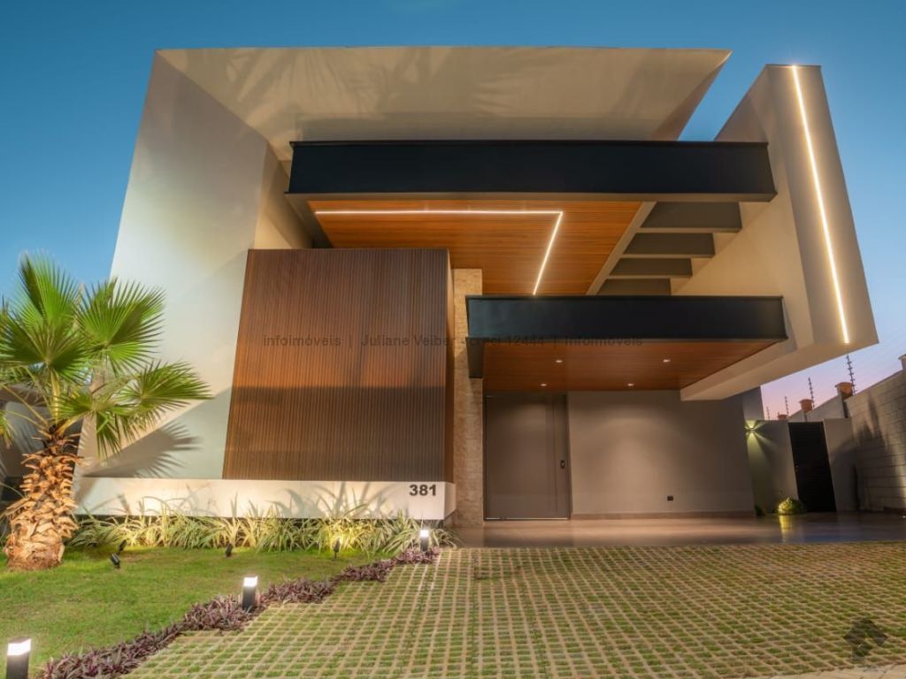 04 quartos, sendo 01 suíte master com varanda, camarim e banheiro com banheira e cuba dupla, espaço para roupeiro no corredor da área íntima, sauna, piscina aquecida com hidromassagem e iluminação em LED, gourmet completo com churrasqueira com giragrill e cervejeira, cozinha independente e com eletrodomésticos, despensa, lavabo, banheiro externo, 02 depósitos, garagem para 04 carros, sendo 02 cobertos, energia fotovoltaica de 1.000 kWh, móveis planejados, lavanderia com área de varal privativo, paisagismo completo, jardim vertical com irrigação automatizada.