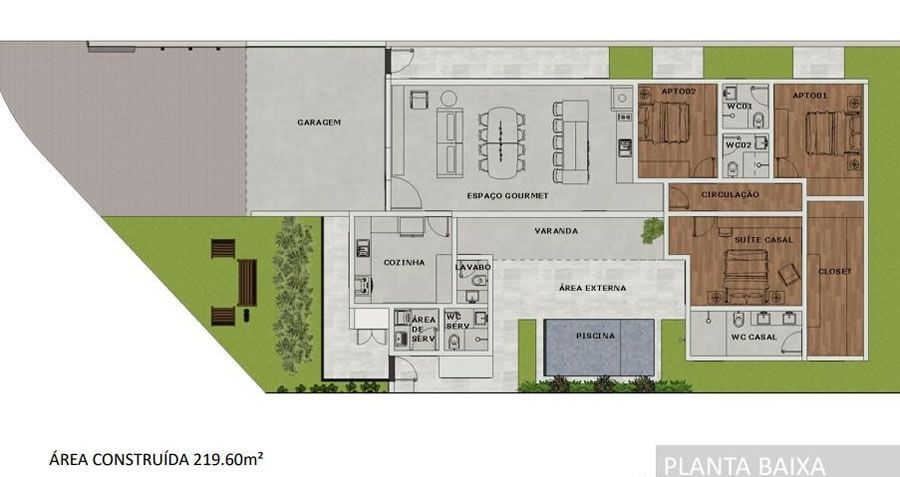 Esta magnífica casa conta com 447 m² de área total e 219 m² de área construída. O imóvel oferece ambientes amplos, elegantes e funcionais, garantindo conforto para toda a família. Ao entrar, você encontra uma espaçosa sala de estar integrada, proporcionando um ambiente sofisticado e aconchegante. A cozinha moderna é planejada para facilitar o dia a dia, conectando-se harmoniosamente ao espaço gourmet, perfeito para momentos especiais com amigos e familiares. A área íntima conta com uma suíte espaçosa e dois apartamentos, todos bem iluminados e projetados para oferecer privacidade e tranquilidade. Do lado de fora, uma área de lazer com piscina, ideal para os dias de descanso e lazer.