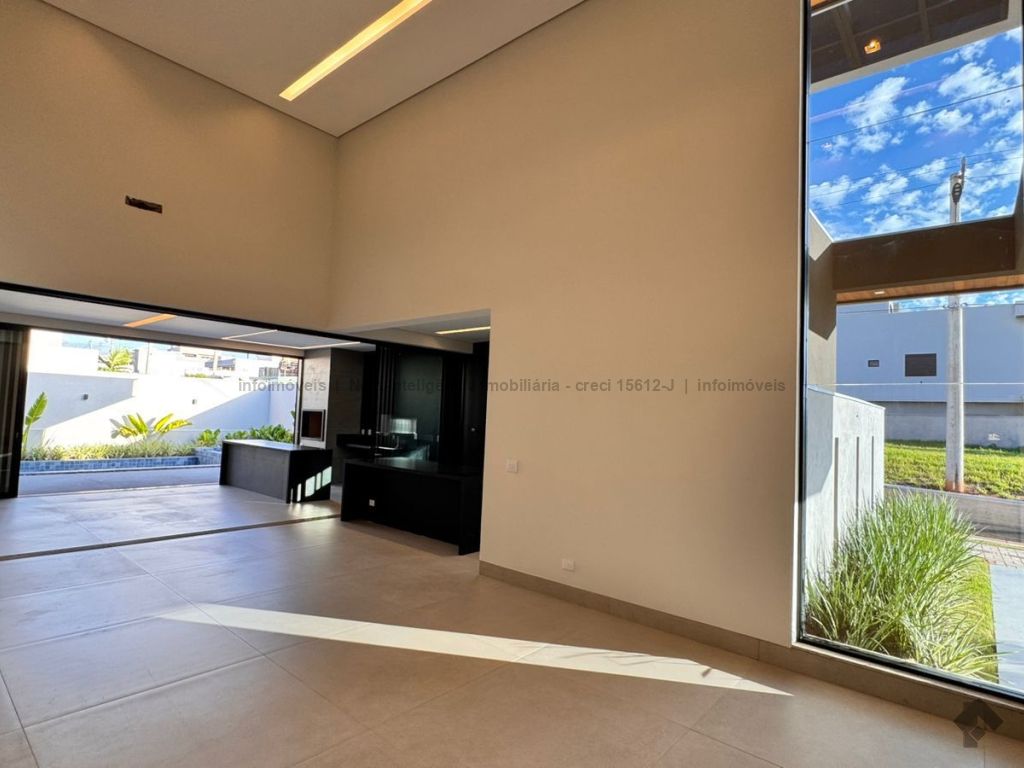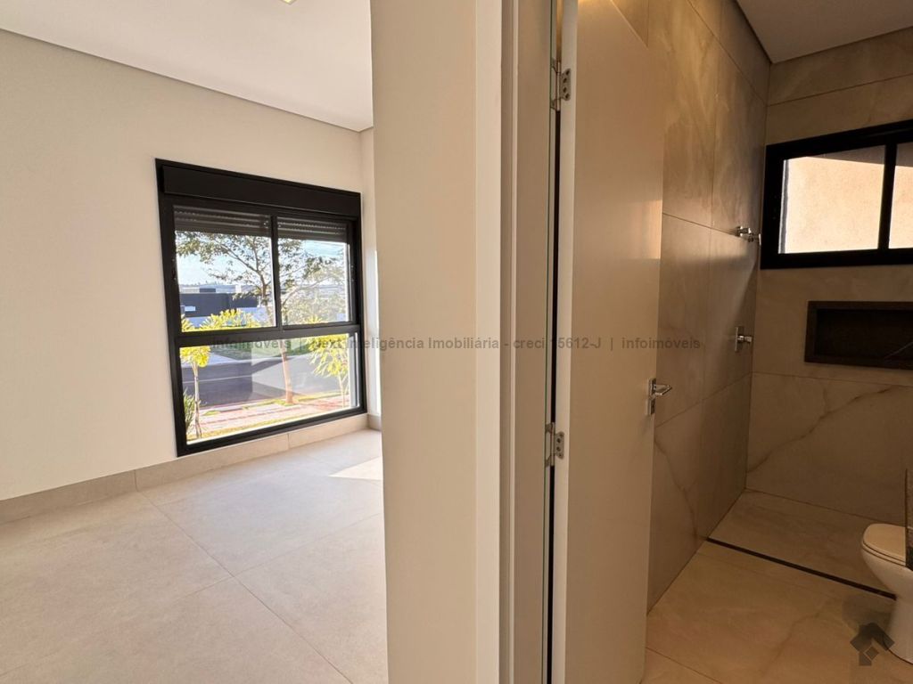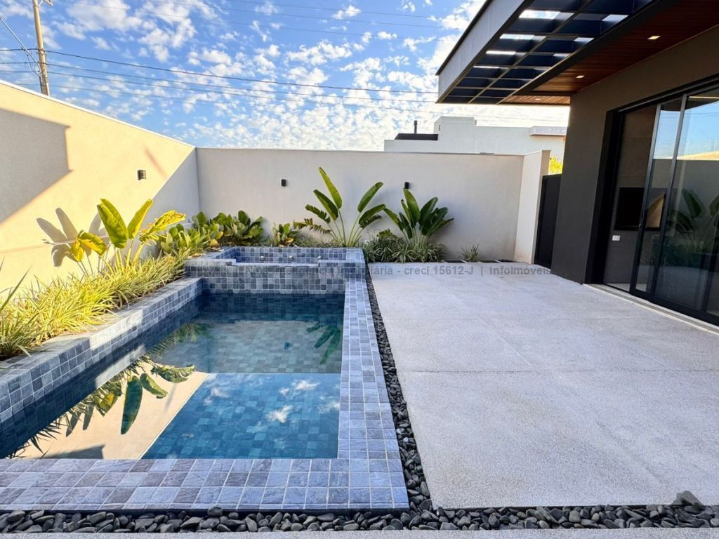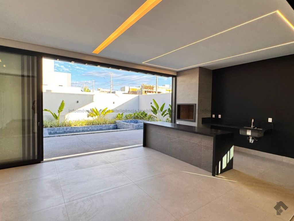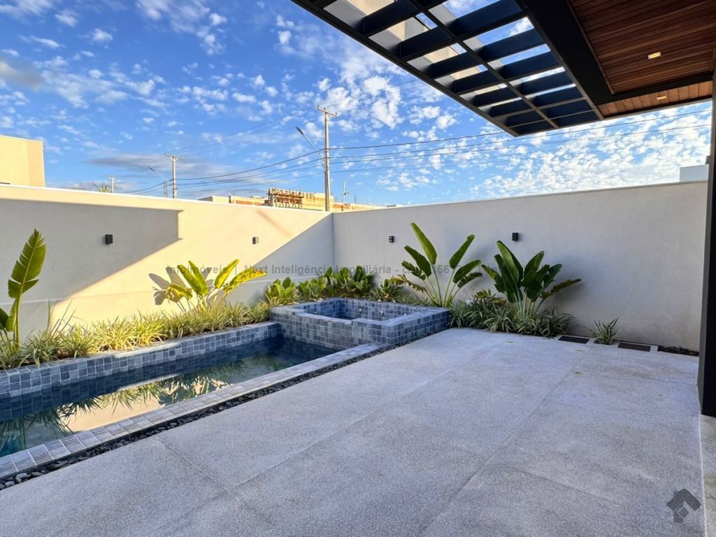 Belíssima casa térrea em condomínio. O imóvel contém: sala de TV ampla com pé direito duplo, sala de jantar com pé direito duplo, cozinha integrada, espaço gourmet amplo, suíte master com closet e WC, 3 suítes, dentre elas 1 podendo ser escritório com WC, lavabo interno, garagem coberta para 2 carros e 1 moto, lavabo externo (piscina), lavanderia, área de serviço, piscina com spa, ducha externa, placas solares. Área do terreno de 511,38 m². Total de área construída de 255,66 m².