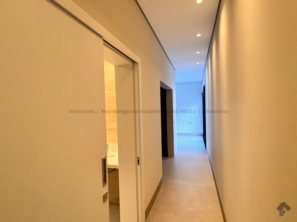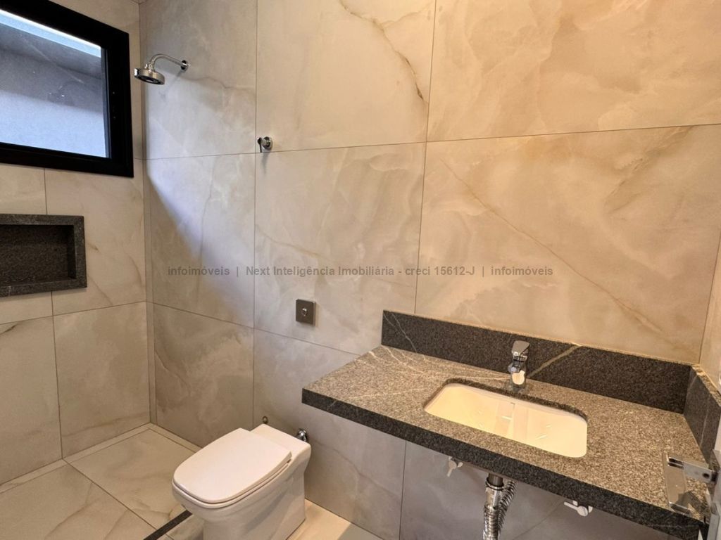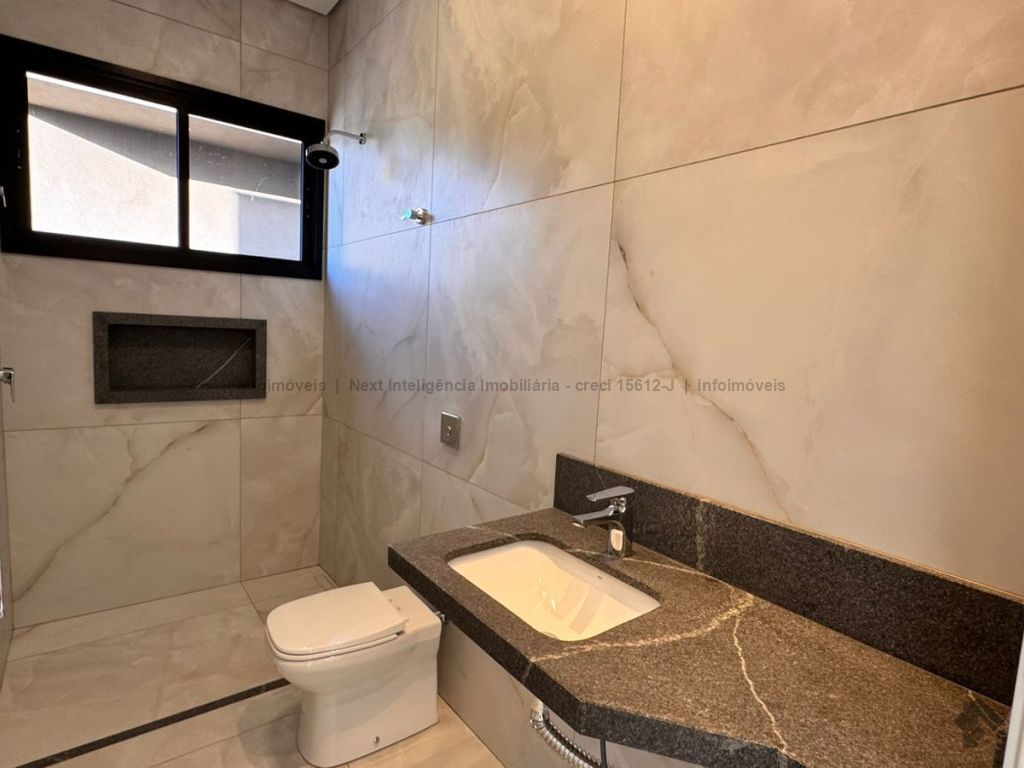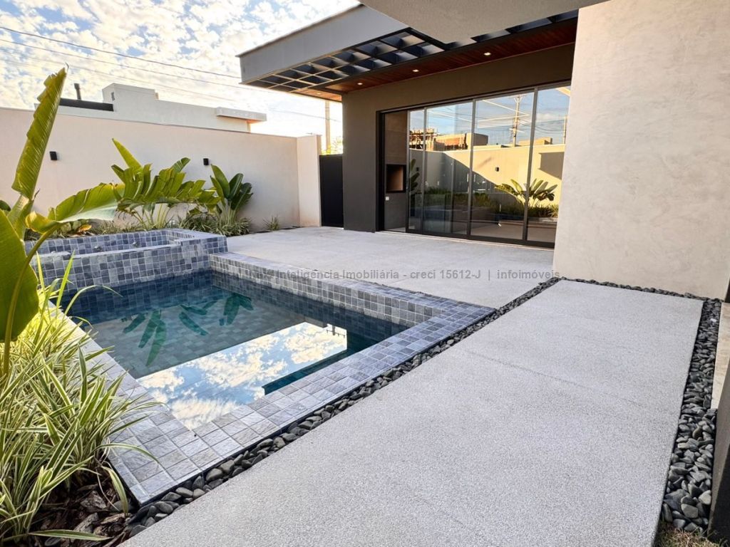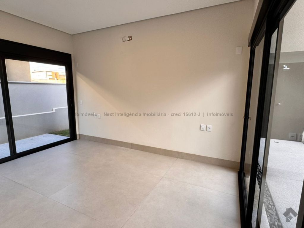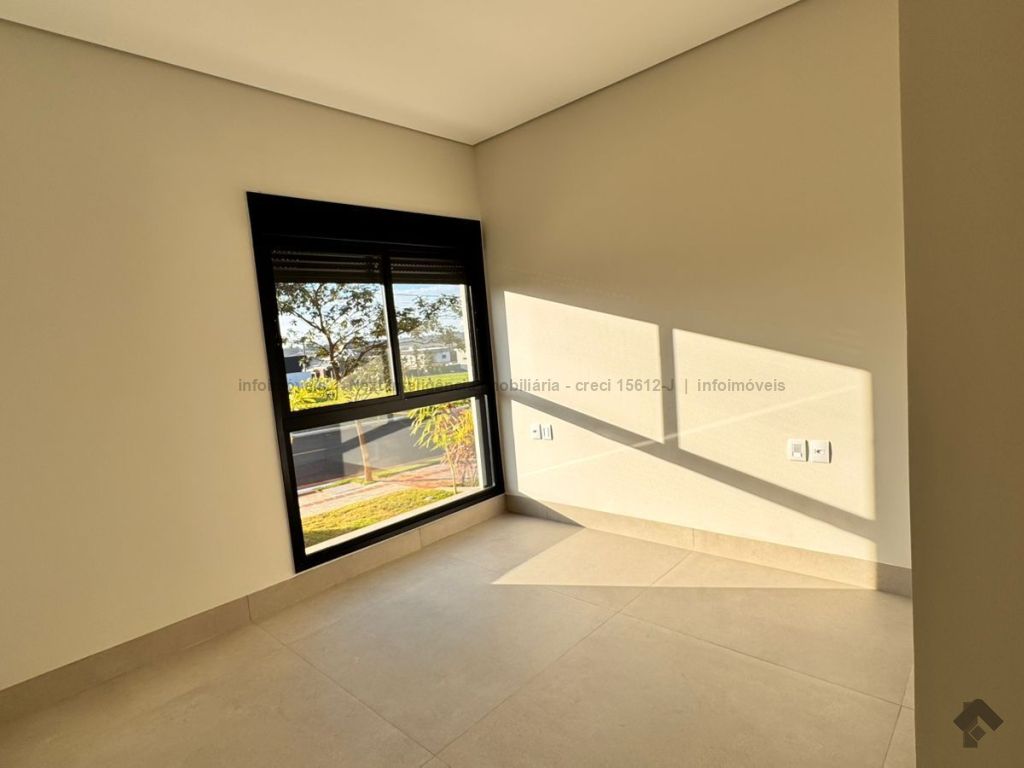 Belíssima casa térrea em condomínio. O imóvel contém: sala de TV ampla com pé direito duplo, sala de jantar com pé direito duplo, cozinha integrada, espaço gourmet amplo, suíte master com closet e WC, 3 suítes, dentre elas 1 podendo ser escritório com WC, lavabo interno, garagem coberta para 2 carros e 1 moto, lavabo externo (piscina), lavanderia, área de serviço, piscina com spa, ducha externa, placas solares. Área do terreno de 511,38 m². Total de área construída de 255,66 m².