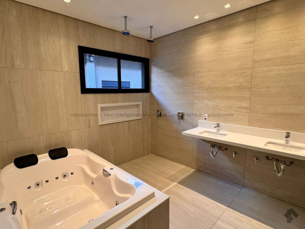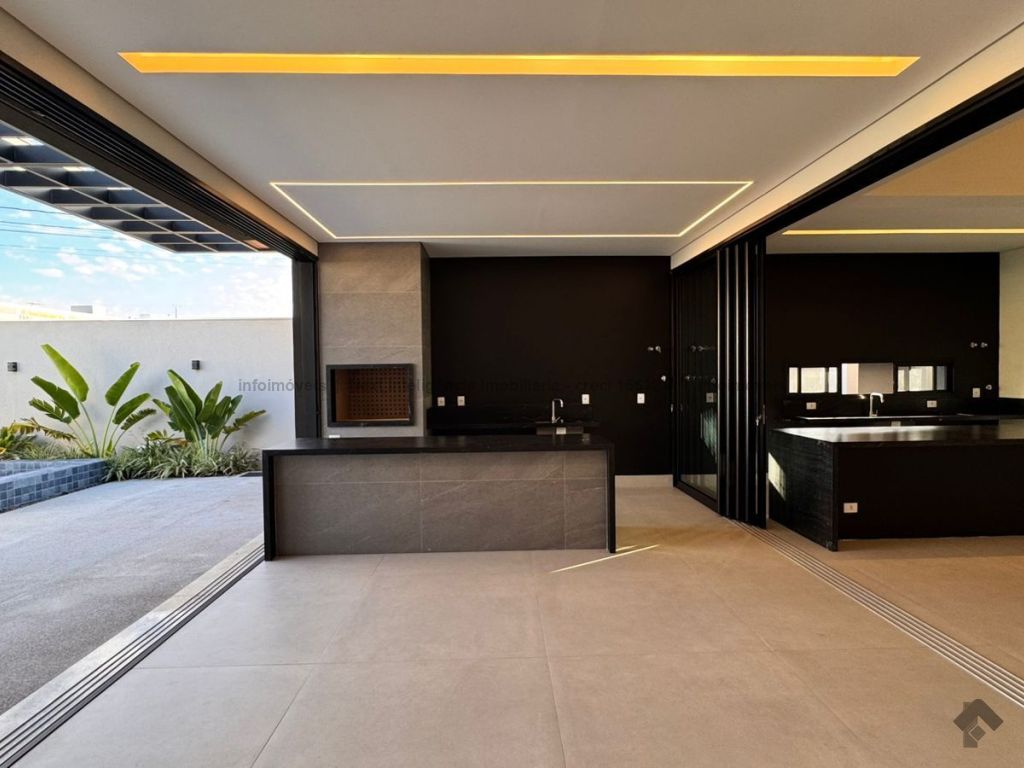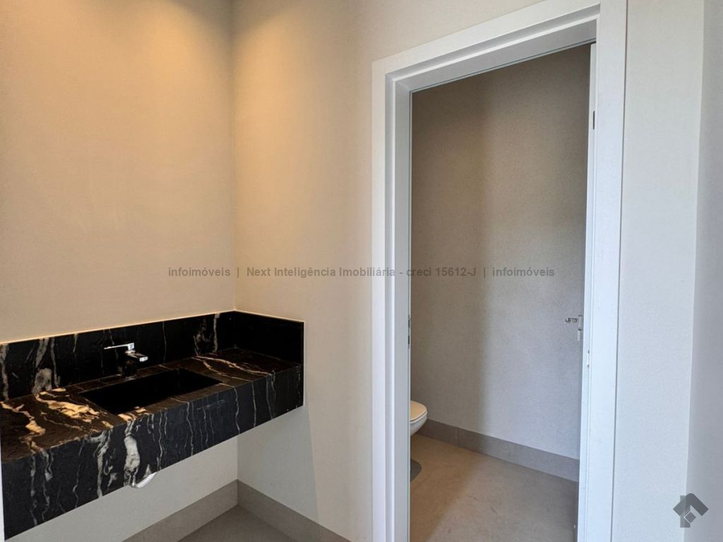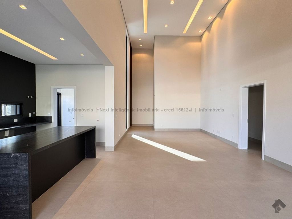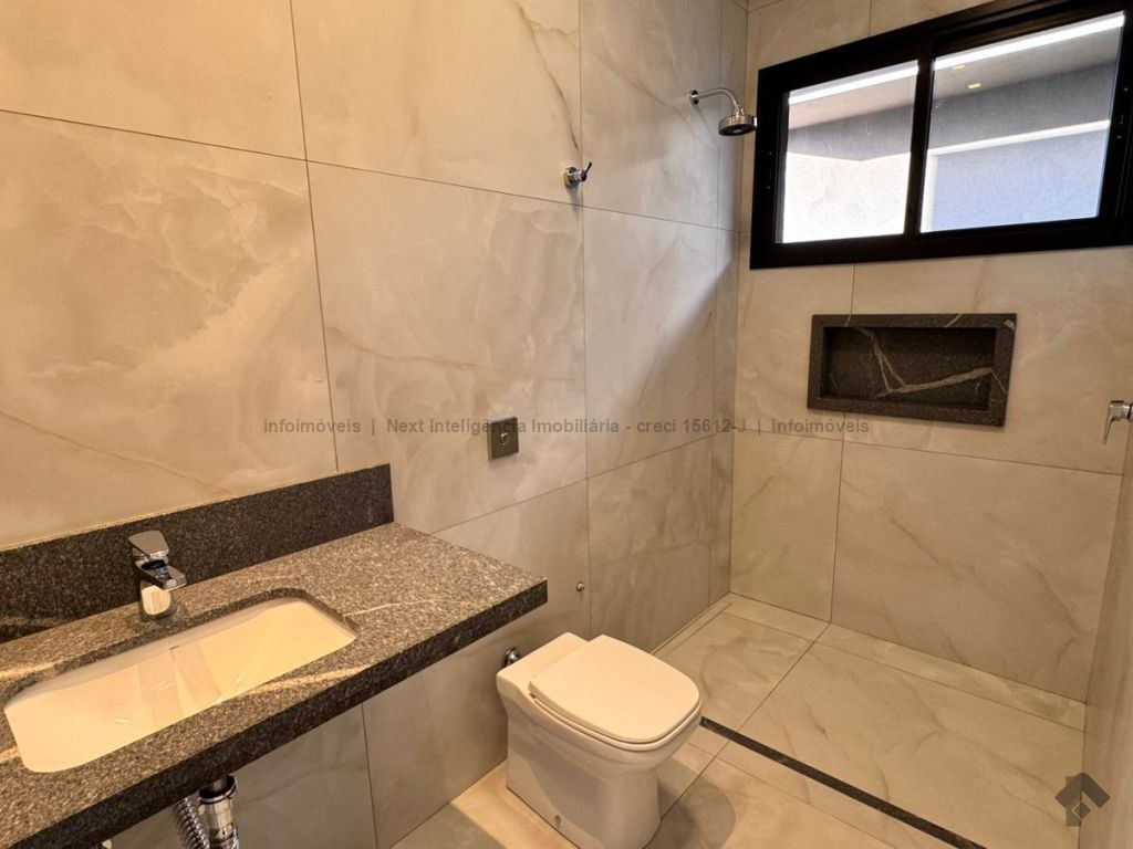 Belíssima casa térrea em condomínio. O imóvel contém: sala de TV ampla com pé direito duplo, sala de jantar com pé direito duplo, cozinha integrada, espaço gourmet amplo, suíte master com closet e WC, 3 suítes, dentre elas 1 podendo ser escritório com WC, lavabo interno, garagem coberta para 2 carros e 1 moto, lavabo externo (piscina), lavanderia, área de serviço, piscina com spa, ducha externa, placas solares. Área do terreno de 511,38 m². Total de área construída de 255,66 m².