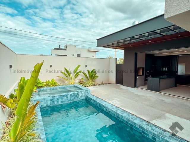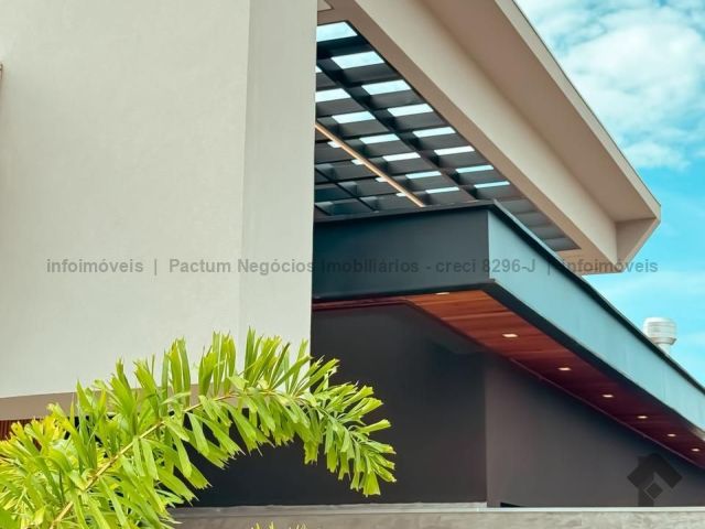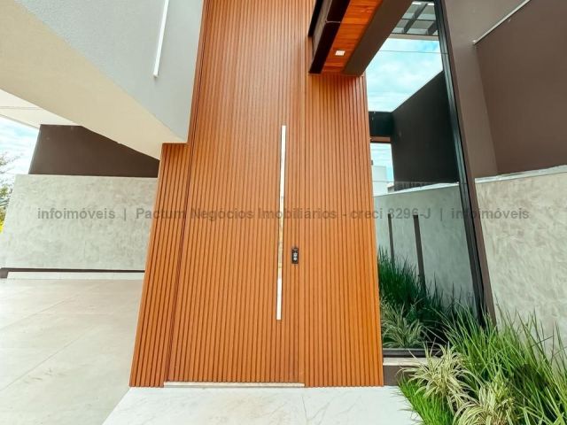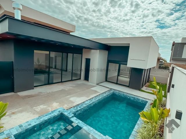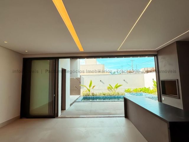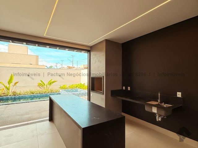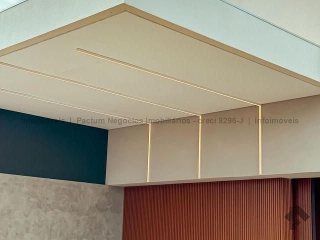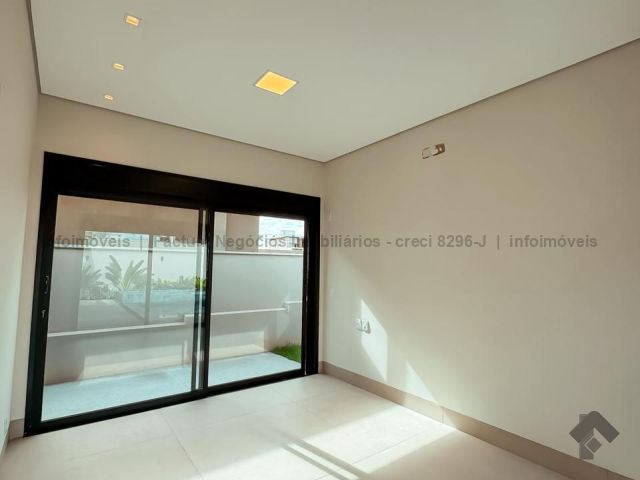 Casa térrea de esquina no condomínio Shalom, sala ampla com pé direito duplo e iluminação natural, lavabo, porta de entrada pivotante com 6 metros de altura, cozinha com ilha e pia em mármore, torneira de mono comando, divisão de ambientes com Blindex tipo reiki, espaço gourmet amplo com ilha e pia em mármore e divisória em Blindex tipo reiki. A casa possui quatro suítes, sendo a principal muito ampla, com closet e sala de banho com banheira de hidromassagem.