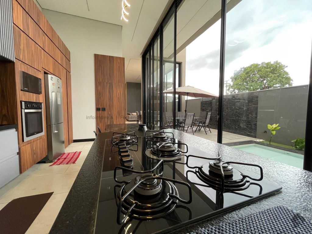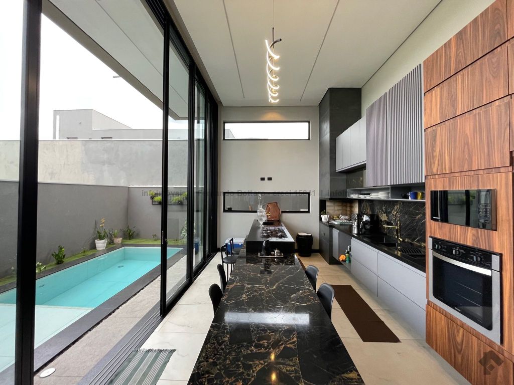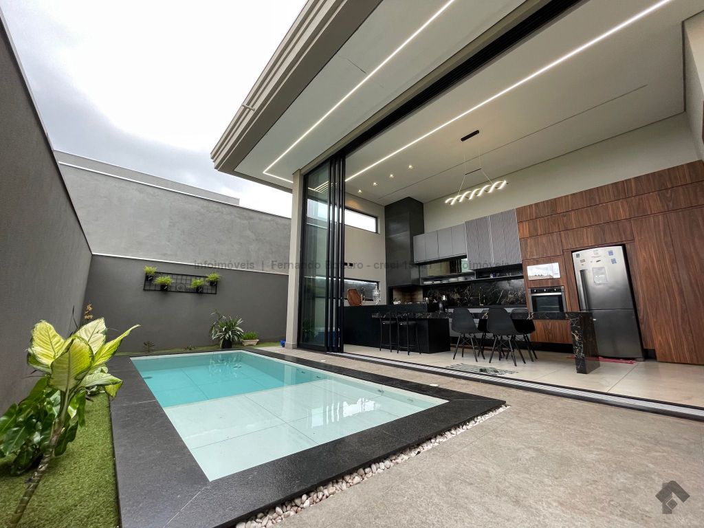 Casa térrea recém-construída com pé-direito duplo, sala ampla para dois ambientes, lavabo, cozinha, espaço gourmet, piscina preparada para aquecimento, despensa e área de serviço. Suíte master com closet e banheiro, mais duas demi-suítes com closet e banheiro. Garagem coberta para dois carros. Projeto completo de gesso e iluminação. Construída pelo proprietário para uso próprio, com materiais de alto padrão e projeto arquitetônico de qualidade.