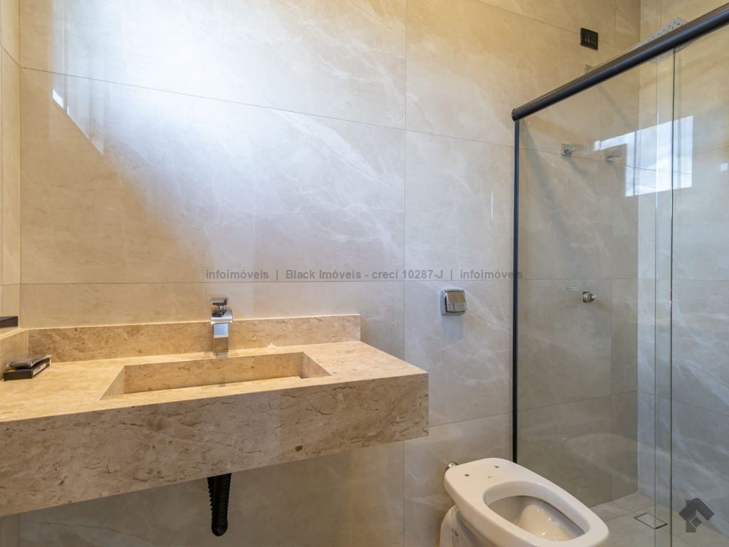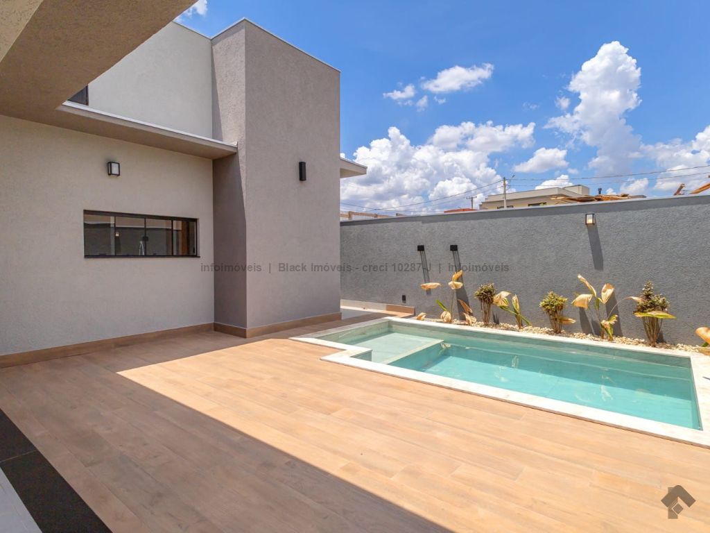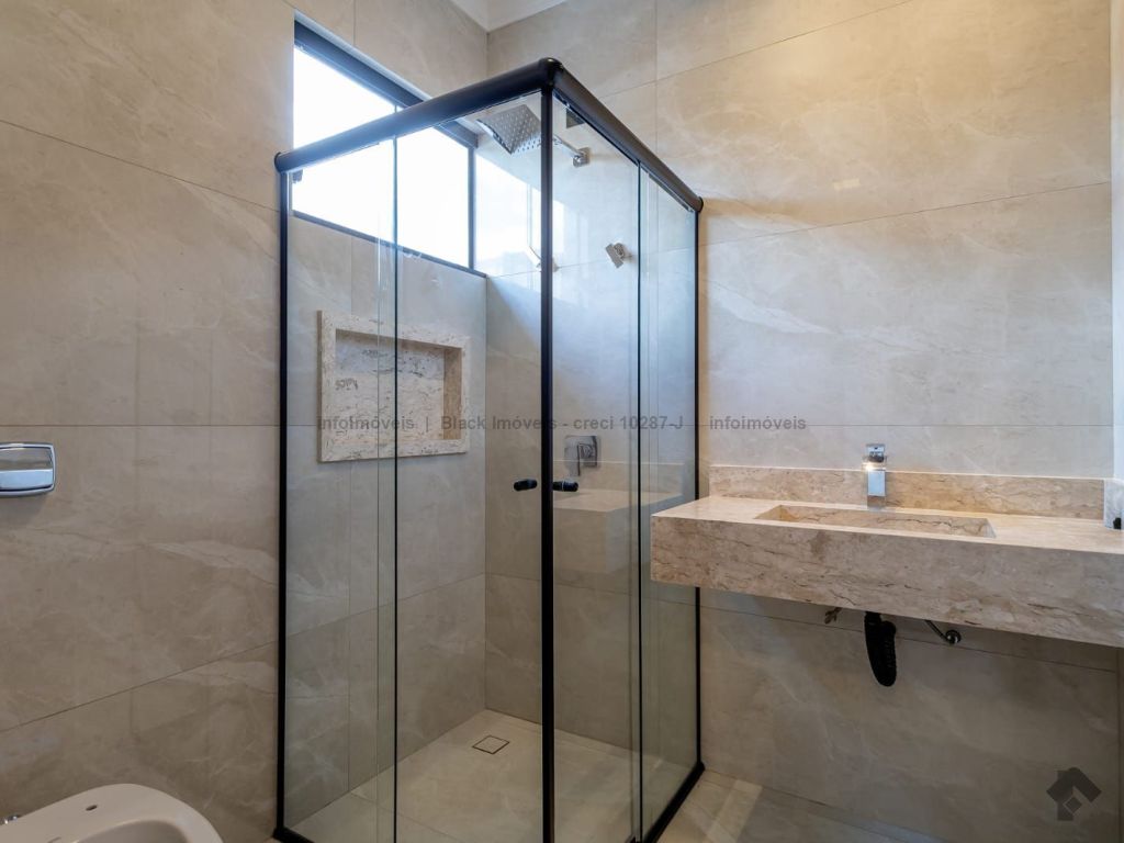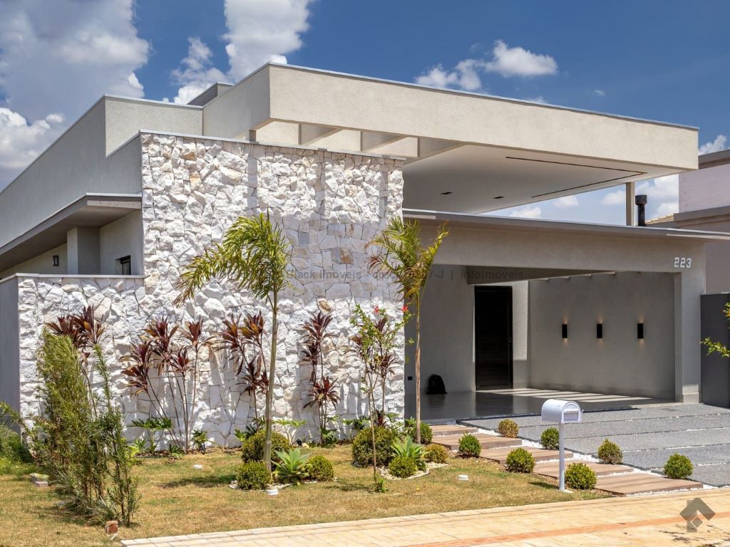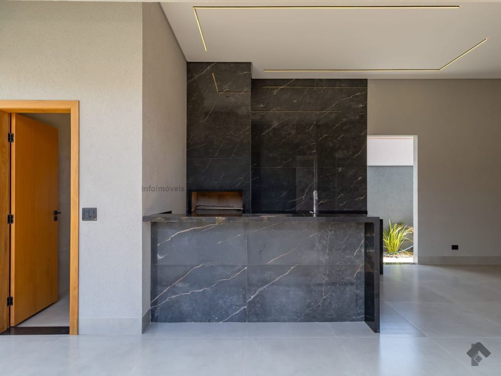 Casa térrea com fachada imponente: pé direito duplo, sala integrada com área gourmet, 2 varandas, são 3 suítes, sendo 1 máster com 2 cubas e espaço para closet, escritório, piscina revestida com porcelanato com aquecimento, banheiro externo, todos os quartos possuem janelas automatizadas com controle remoto, projeto contemporâneo, piscina aquecida, água quente com boiler de 400 pressão.