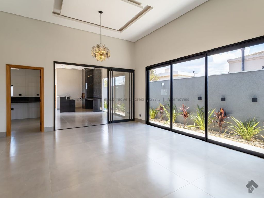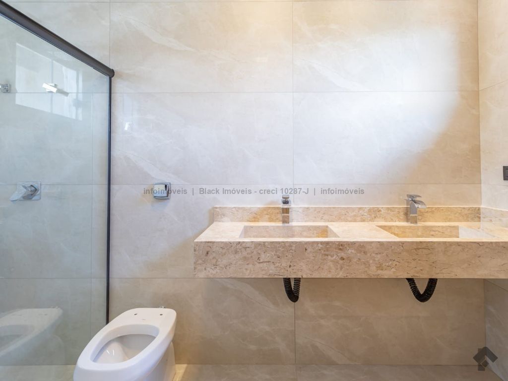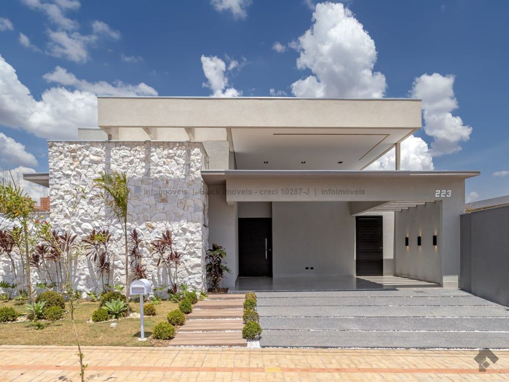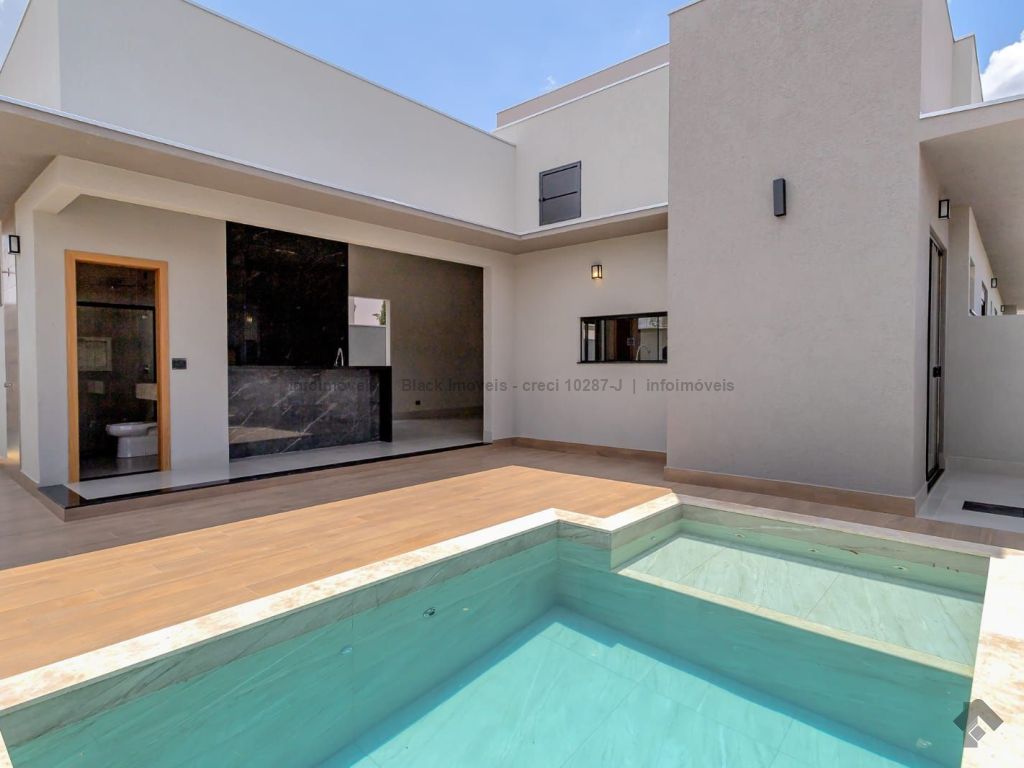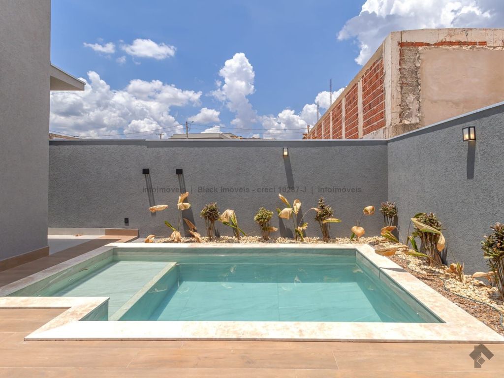 Casa térrea com fachada imponente: pé direito duplo, sala integrada com área gourmet, 2 varandas, são 3 suítes, sendo 1 máster com 2 cubas e espaço para closet, escritório, piscina revestida com porcelanato com aquecimento, banheiro externo, todos os quartos possuem janelas automatizadas com controle remoto, projeto contemporâneo, piscina aquecida, água quente com boiler de 400 pressão.