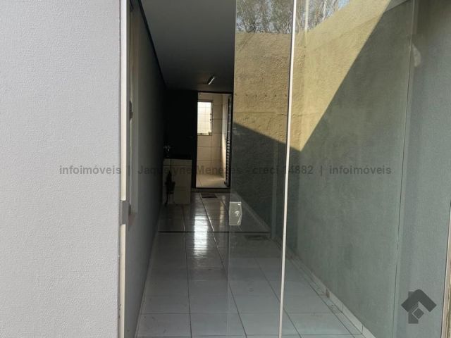 Casa em condomínio contendo sala, cozinha, 02 quartos, sendo 1 com closet, banheiro social, área de serviço, jardim, garagem para aproximadamente 4 carros. Além de câmera, cerca e alarme com acesso por aplicativo.