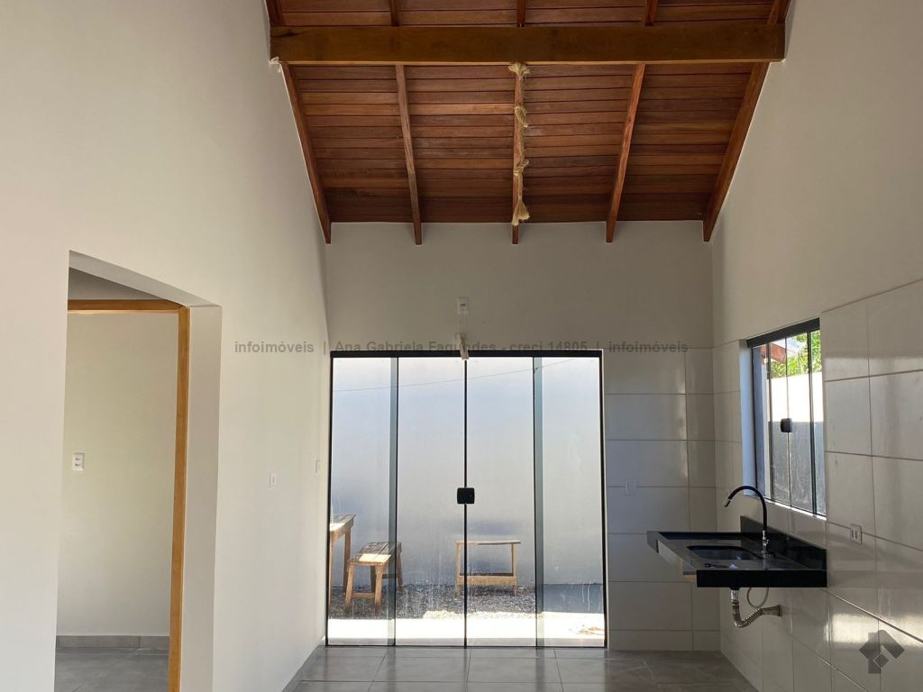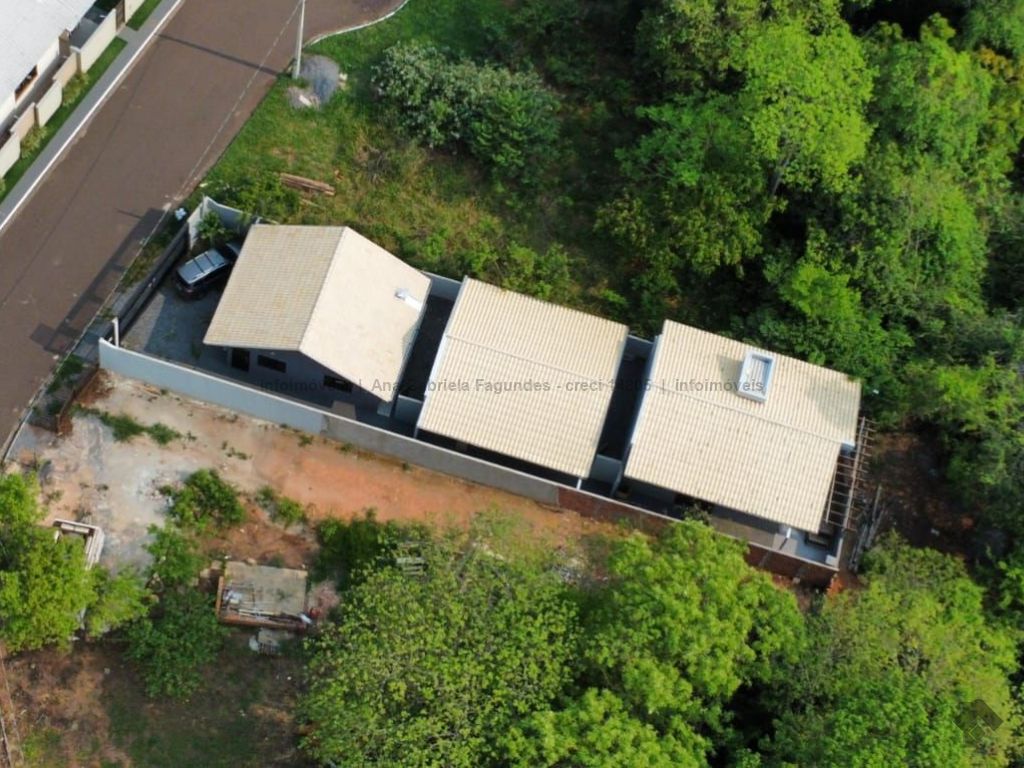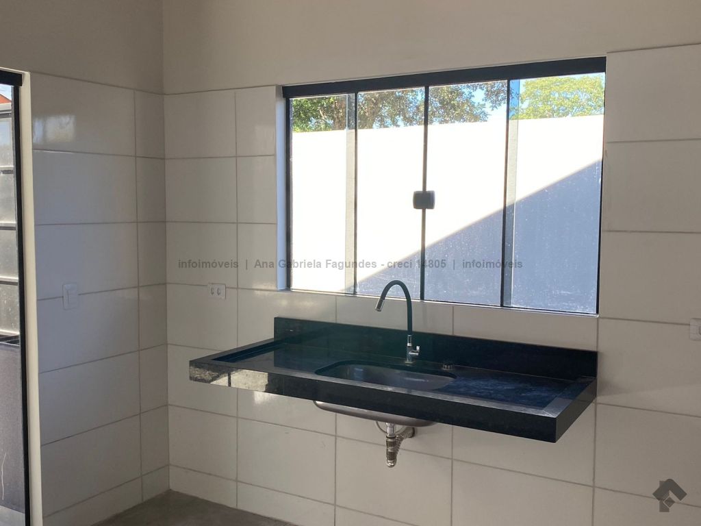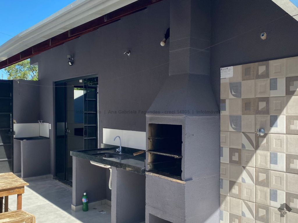 2 quartos, sala e cozinha, banheiro social, espaço gourmet contendo ducha, pia e churrasqueira, área de serviço e espaço de garagem.