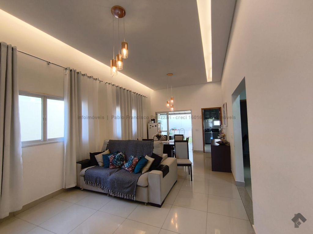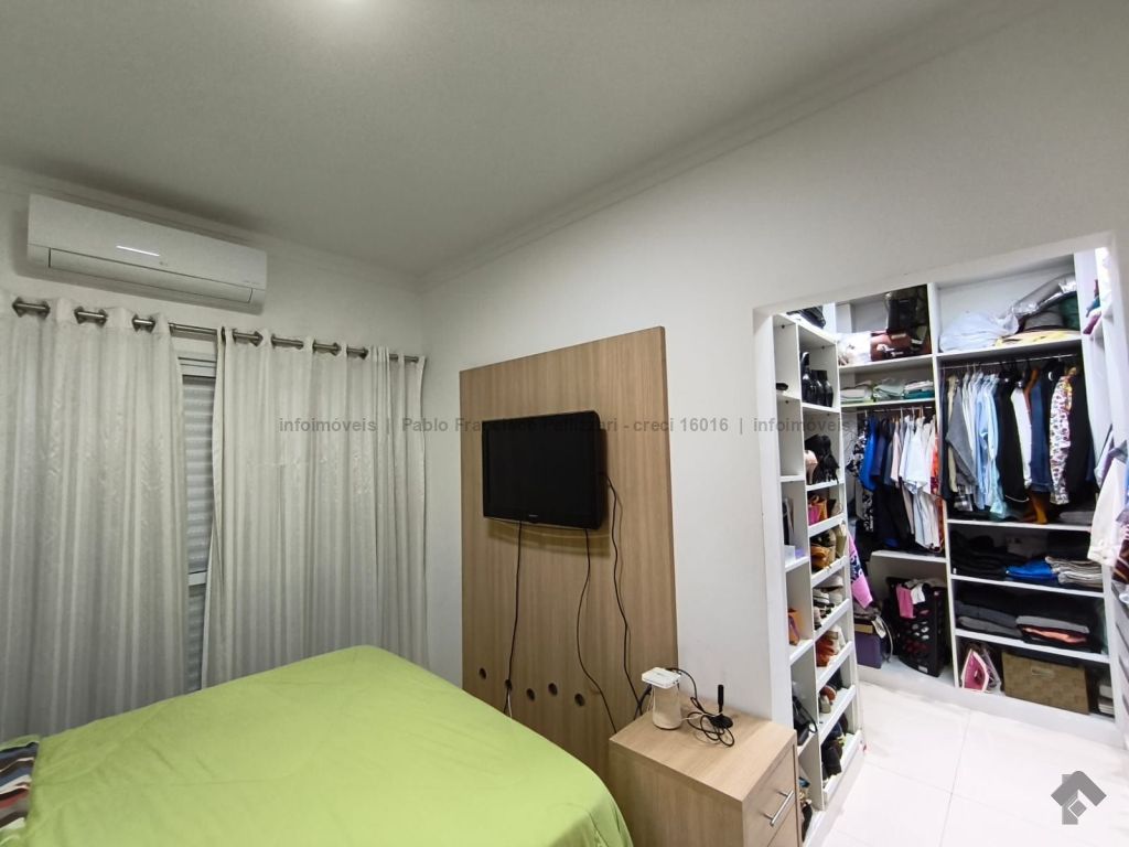 O imóvel contém garagem para 2 vagas cobertas, lavabo, sala 2 ambientes, cozinha planejada integrada ao espaço gourmet com churrasqueira, 1 suíte com closet e planejados e ar condicionado, 1 quarto com armário embutido e ar condicionado, 1 escritório/quarto, banheiro social, área de serviço, além de um bom espaço de terreno ao fundo que pode ser utilizado para construção de jacuzzi, piscina, pergolado. Condomínio com área de lazer completa, salão de festas, piscinas adulto e infantil, campo de futebol, quadra de esportes, quadras de tênis e de areia, parque infantil, amplo espaço para caminhadas, além de uma vasta área de preservação permanente que cerca o condomínio.