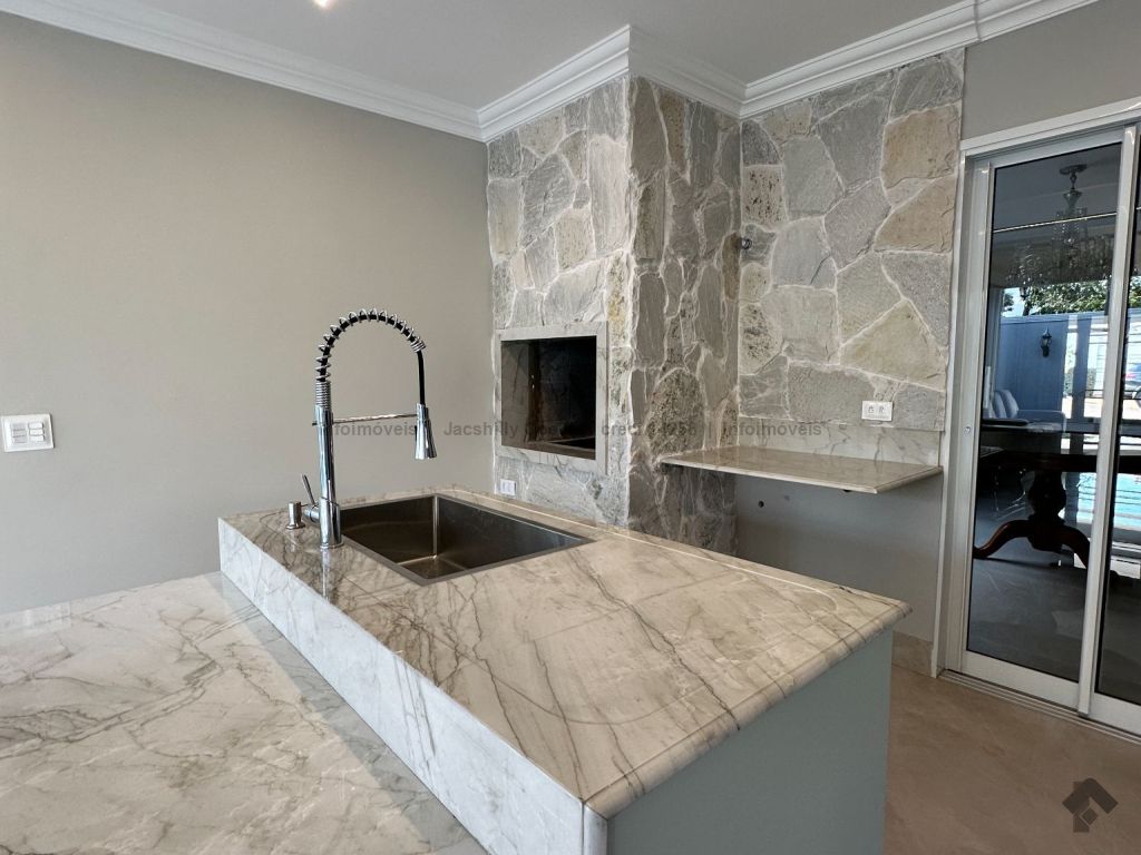 Com 360 m² de terreno e 200 m² de área construída, o imóvel impressiona desde a entrada. Os ambientes integrados, com salas amplas e iluminadas, convidam à convivência e ao acolhimento. A cozinha e o espaço gourmet são um espetáculo à parte, equipados com pedras quartzito nas bancadas, revestimentos Portinari de alto padrão e design impecável.