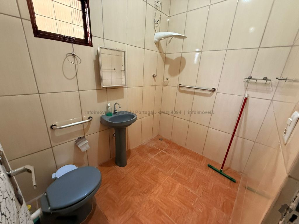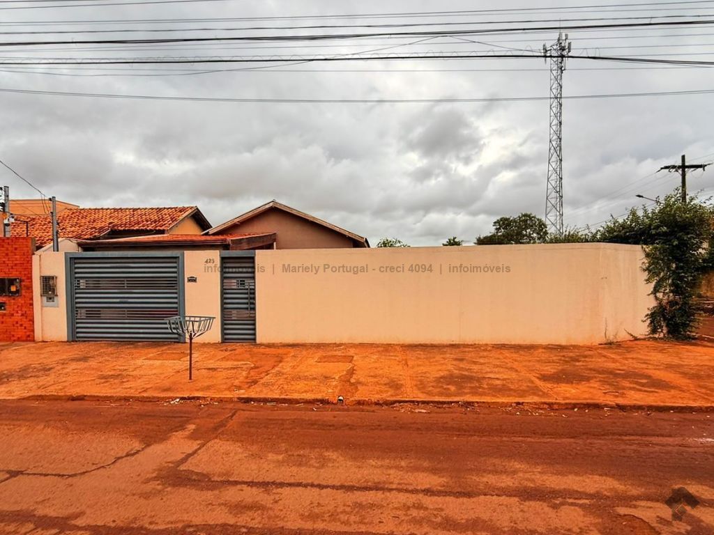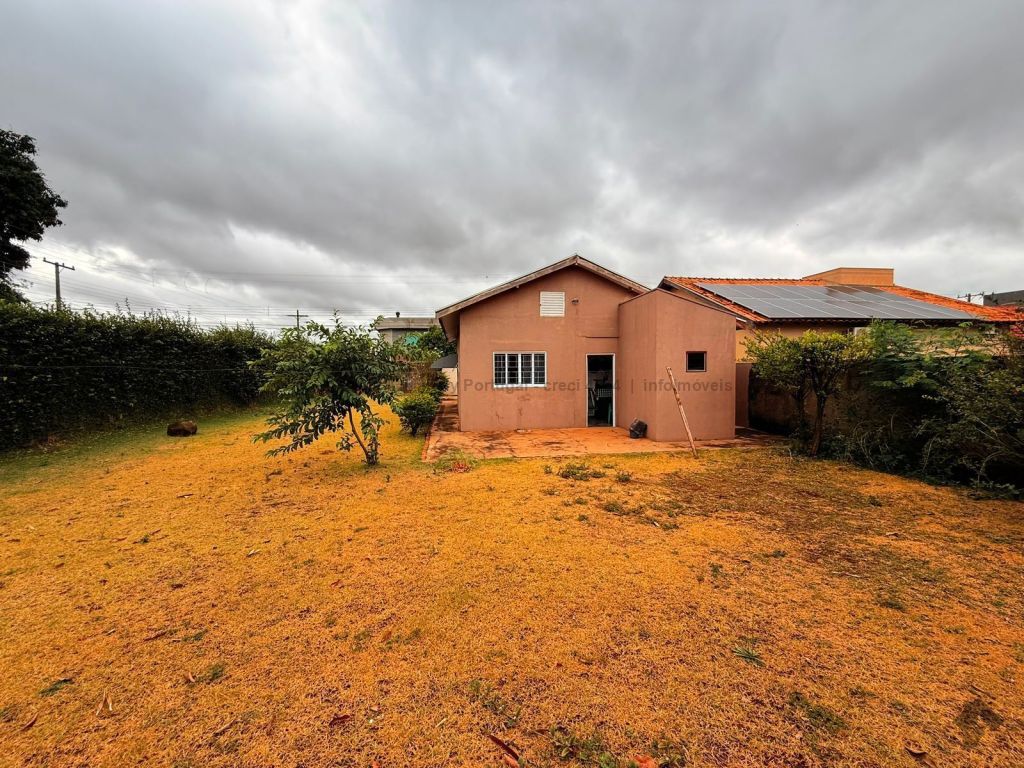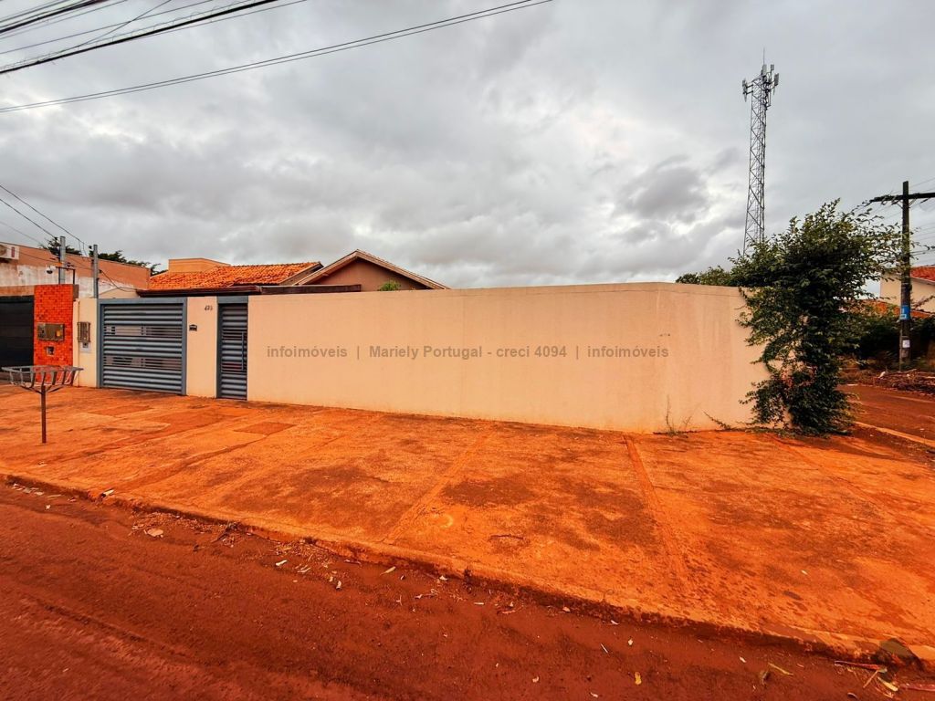 Casa de esquina, terreno amplo de 494 m², 17 x 29 m, possui sala, cozinha, dois quartos, banheiro social, área de serviço separada e coberta, banheiro nos fundos.
