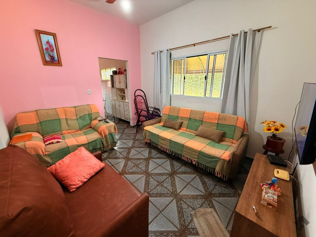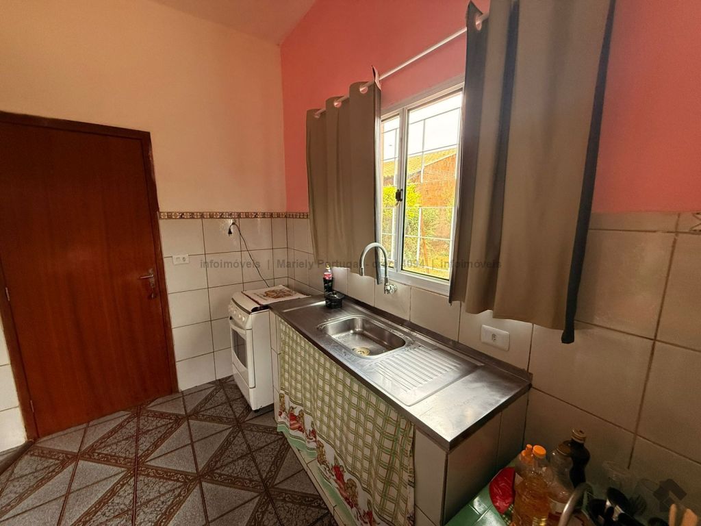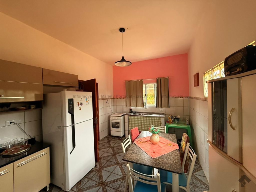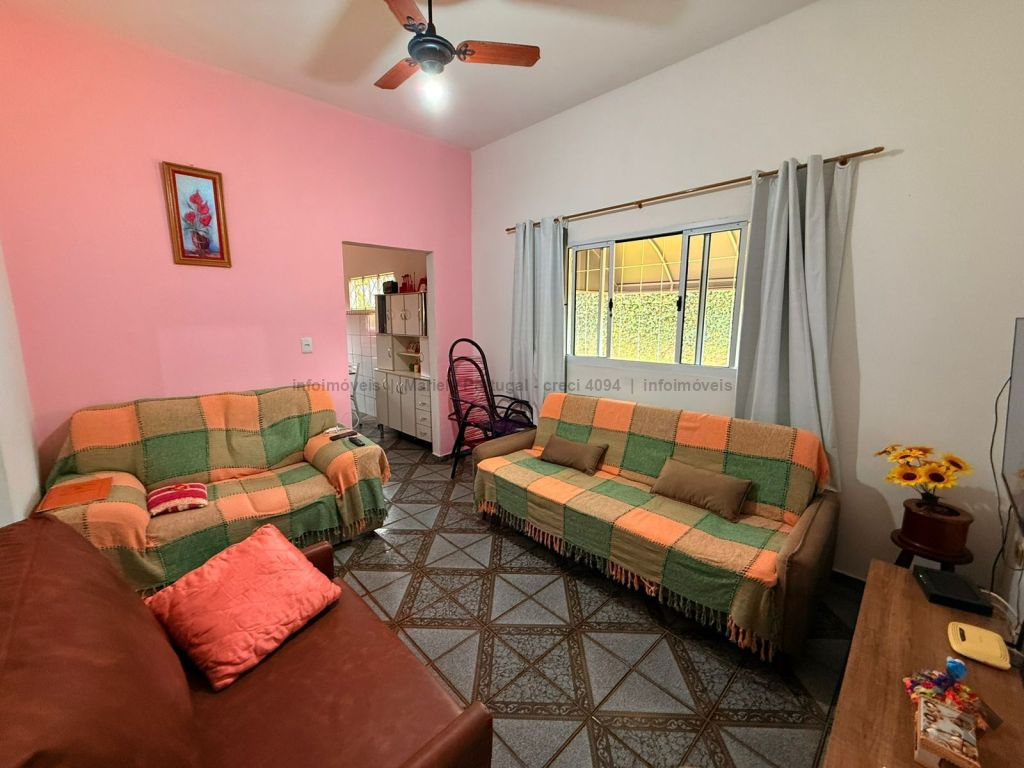Casa de esquina, terreno amplo de 494 m², 17 x 29 m, possui sala, cozinha, dois quartos, banheiro social, área de serviço separada e coberta, banheiro nos fundos.