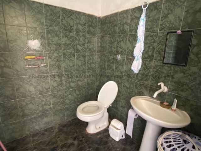 300m² área total. 147,20m² de área edificada. 3 quartos, 1 banheiro social, sala, cozinha, despensa, 1 banheiro fora de casa, varanda, casa de forro e 1 quarto fora de casa.