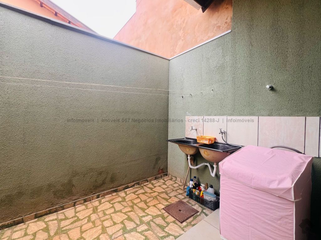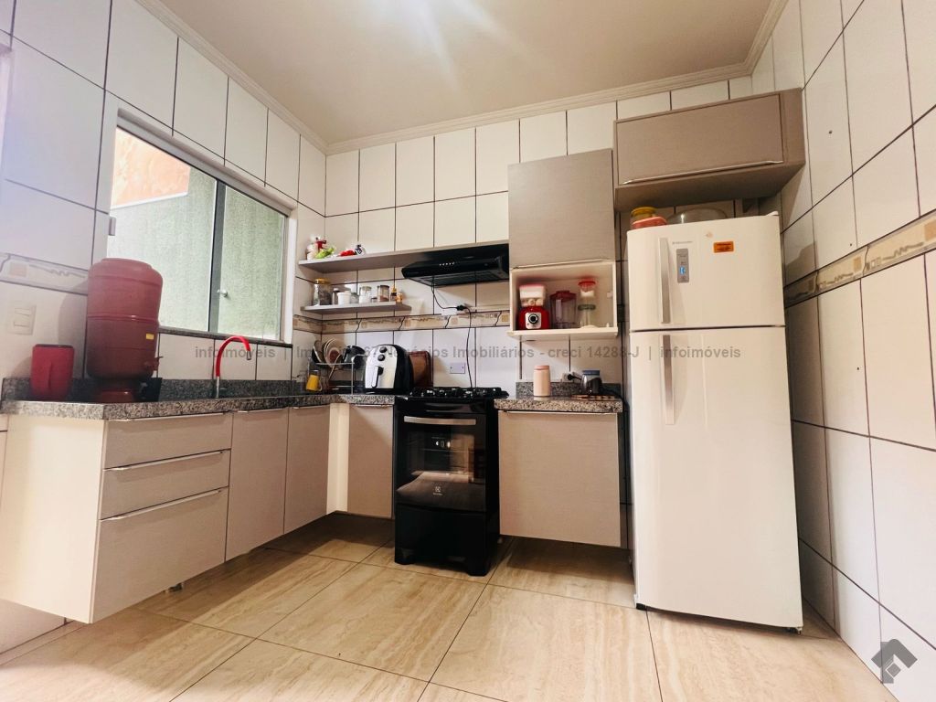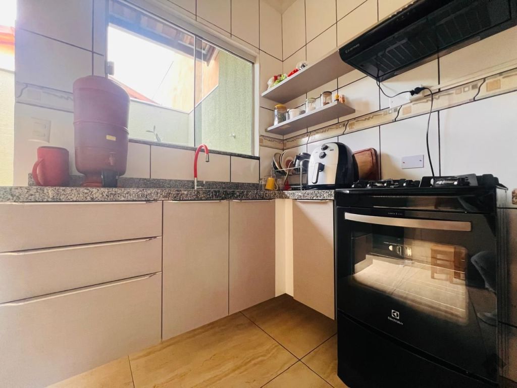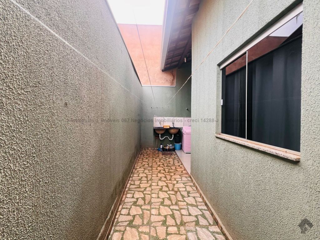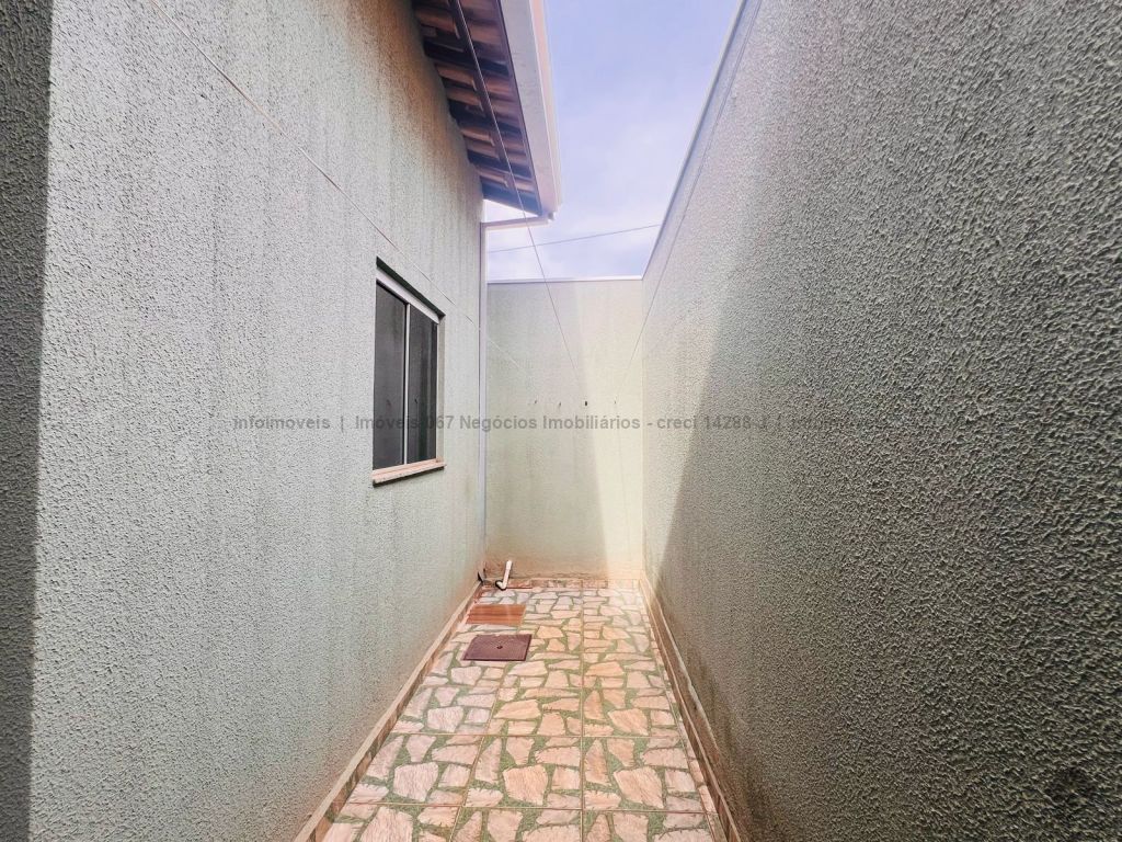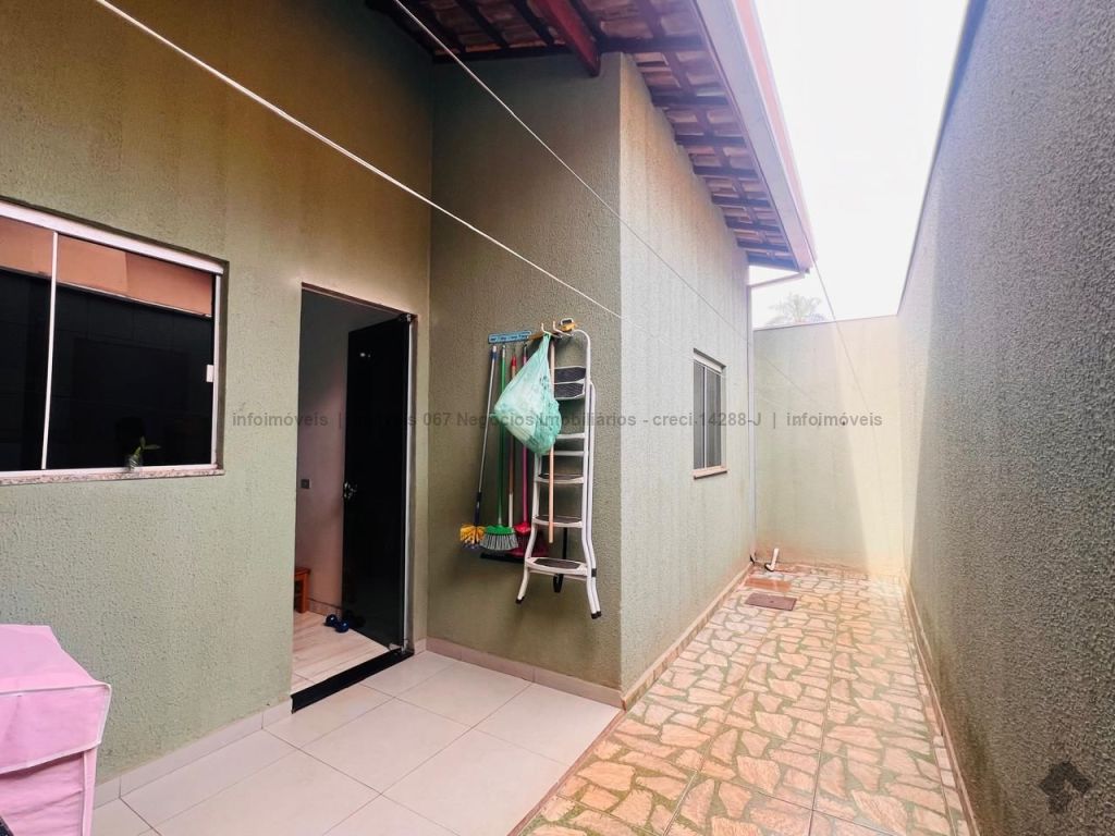 Casa térrea com varanda coberta, 1 portão eletrônico, 1 portão social, 1 sala, 1 cozinha com armários, 1 banheiro com box blindex, 2 quartos, 1 lavanderia e 1 varanda no fundo. Casa bem compacta, ótima construção, rua com asfalto e calma.