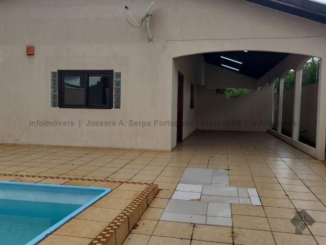 Casa ampla com piscina, rica em armários. Suíte mais dois quartos, WC social, sala de jantar e cozinha, sala de dois ambientes, varanda com churrasqueira. Garagem para dois carros, além de aproximadamente três vagas descobertas, lavanderia e banheiro.