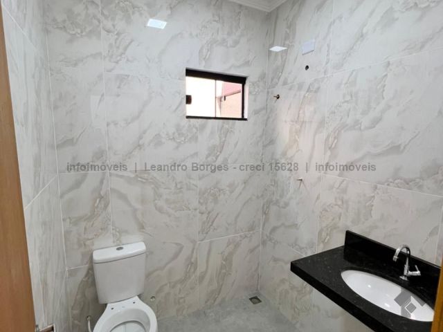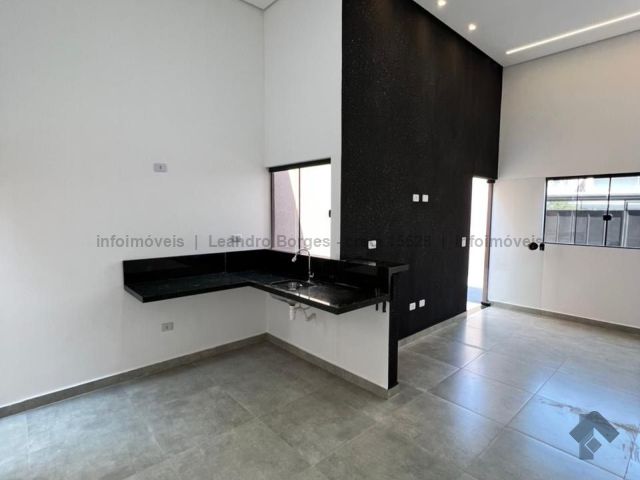 Todo de laje, pé direito alto com gesso e uma bela iluminação em perfil de LED, 1 parede da sala em granele, aberturas em alumínio perfil preto, piso porcelanato, pias da cozinha e linda bancada em granito, pias dos banheiros e nichos em granito, portas da sala, cozinha e janelas em vidro temperado.