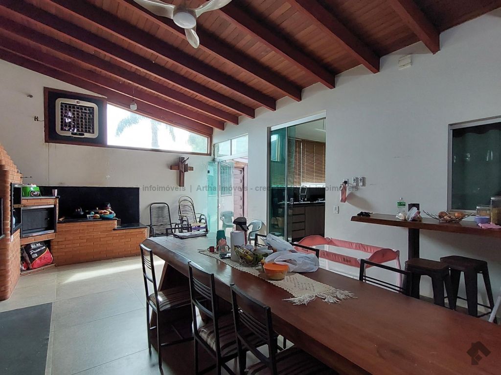 Casa térrea ampla e aconchegante, contendo 04 suítes, sendo 02 com armários planejados, 01 sala de estar, 01 lavabo, cozinha planejada, lavanderia com banheiro. Cozinha gourmet com churrasqueira, cooktop, pia, armários, fogão a lenha. Garagem para 03 carros.