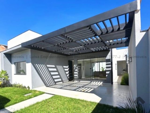 Excelente casa térrea com piso porcelanato, paisagismo, uma suíte com closet e saída para o fundo, dois quartos, cozinha integrada e área gourmet, cerca elétrica, portão de elevação, projeto moderno com janelas amplas, área total de 200 m², área útil de 135 m².