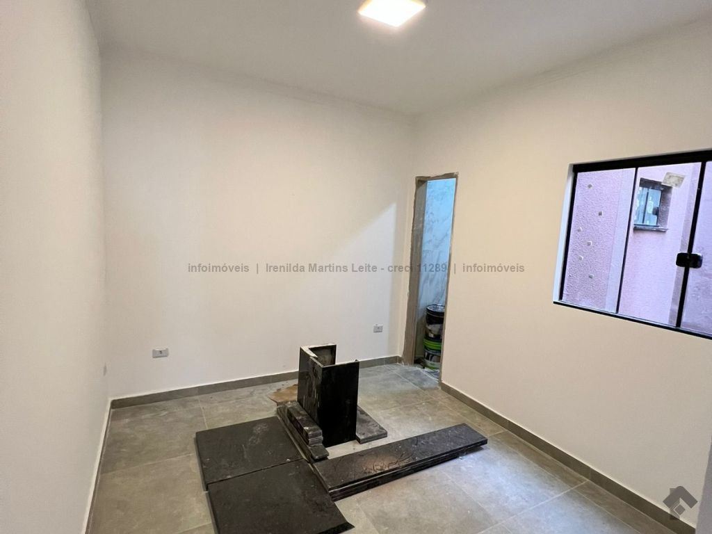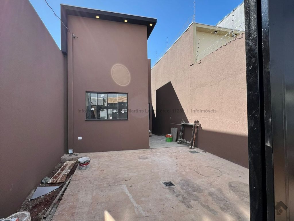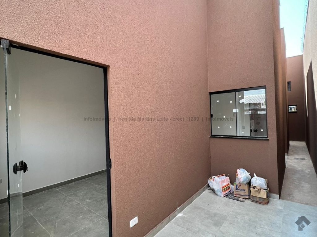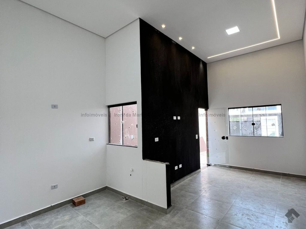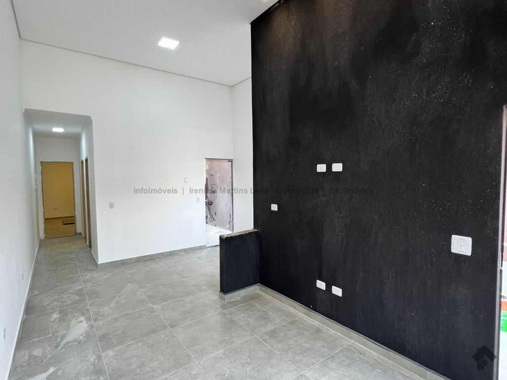 Imóvel residencial térreo recém-construído, com pé direito elevado, composto por dois dormitórios, incluindo uma suíte, um banheiro social, cozinha integrada à sala de TV/estar, lavanderia coberta e duas vagas de garagem descobertas.
