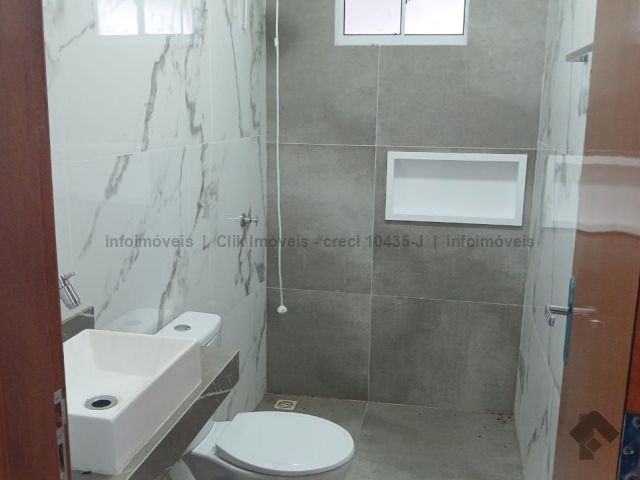 2 quartos, sendo 1 suíte, sala, cozinha, banheiro social, área de serviço, garagem para 1 carro, quintal grande. Diferenciais: casa com laje, piso de alta qualidade, janelas em blindex, portão de elevação, calçada pronta. Localização privilegiada, próxima a postos de saúde, escolas, igrejas, supermercados, corpo de bombeiros, restaurantes e pizzarias.
