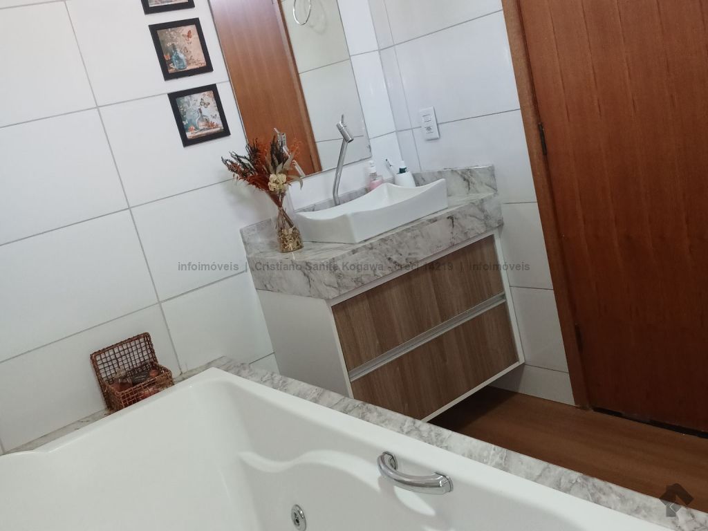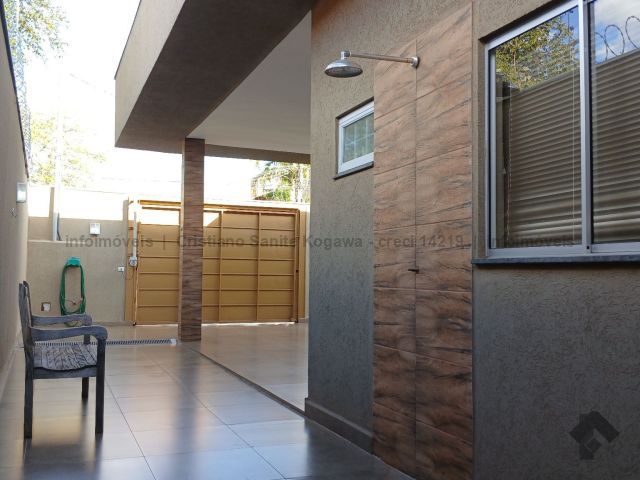 Casa moderna com ambientes integrados, suíte master com closet e banheiro espaçoso com hidromassagem, acesso privativo para piscina e jardim. Duas demi suítes espaçosas. Sala e cozinha com armários, balcão e marcenaria, torneiras da cozinha e banheiro com aquecimento solar, chuveiros dos banheiros com aquecimento solar, piscina com aquecimento, seis câmeras de monitoramento interno, cerca elétrica, interfone com câmera e garagem com capacidade para três carros.
